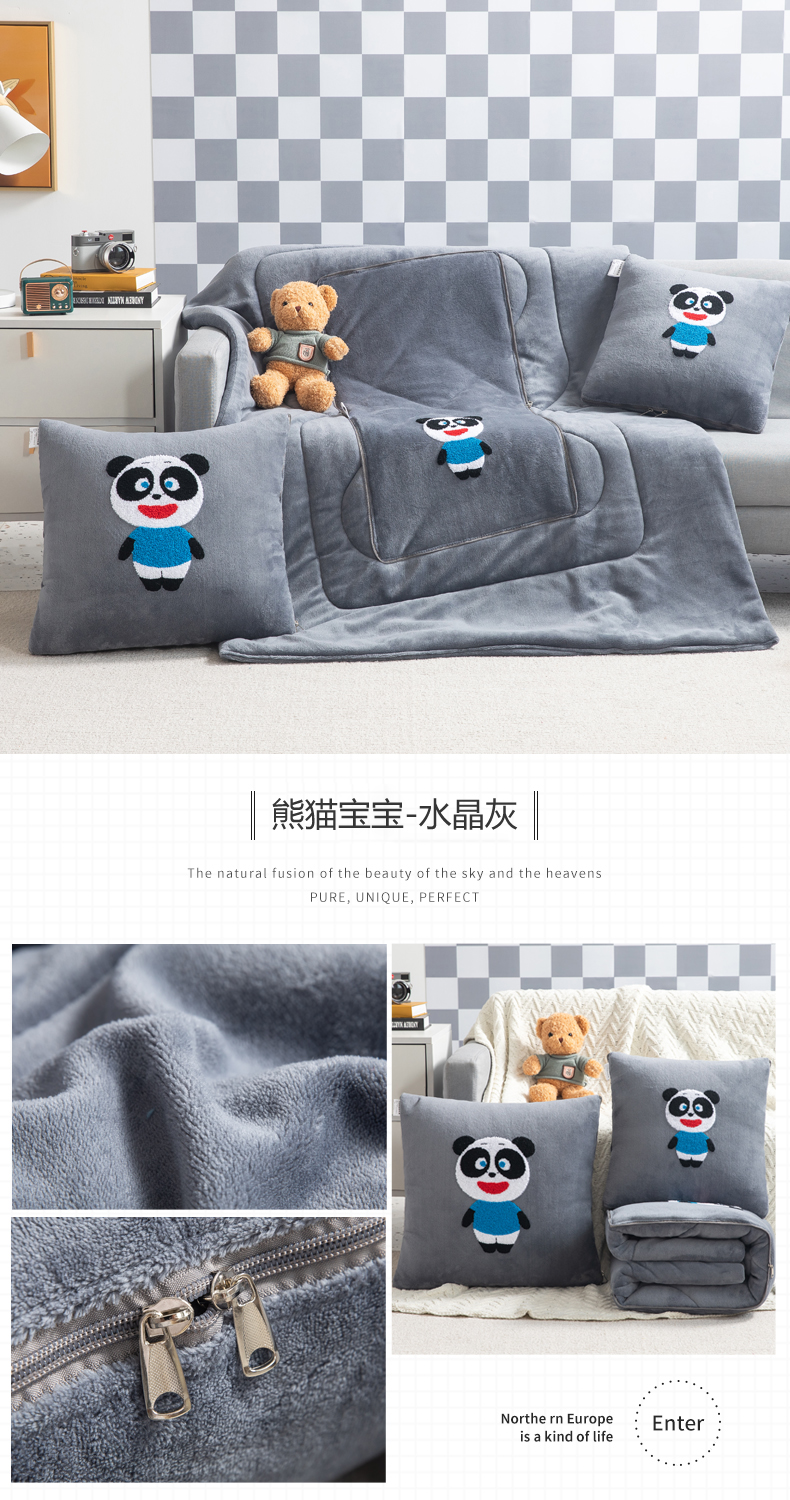 (总)雷人家纺 2023新款倾城花恋水晶绒刺绣多功能抱枕被,倾城花恋-深灰,倾城花恋-浅灰,倾城花恋-天蓝,倾城花恋-柚黄