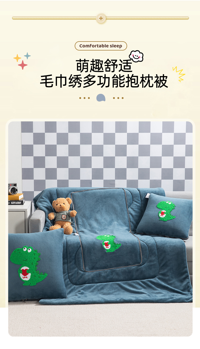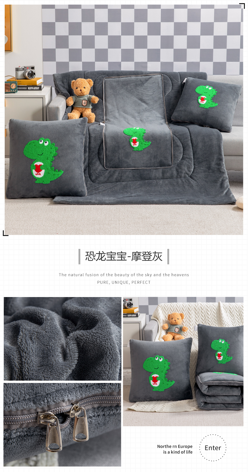 (总)雷人家纺 2022新款牛奶绒卡通毛巾绣加厚抱枕被,恐龙宝宝柏林蓝,恐龙宝宝琥珀桔,恐龙宝宝摩登灰,恐龙宝宝拿铁咖,恐龙宝宝葡萄紫,恐龙宝宝水晶灰,熊宝宝柏林蓝,熊宝宝琥珀桔,熊宝宝摩登灰,熊宝宝拿铁咖,熊宝宝葡萄紫,熊宝宝水晶灰