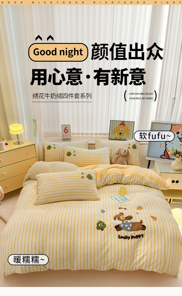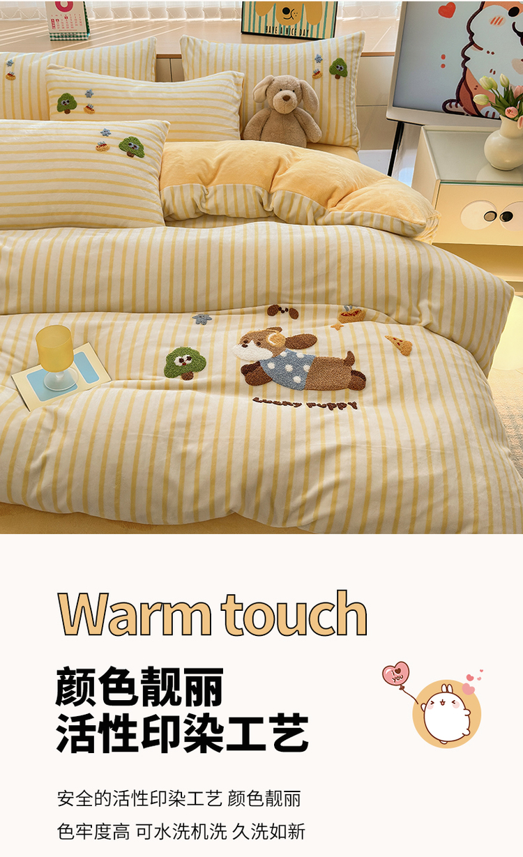 当前位置: 91家纺网 > 商品网购 > 床品套件 > 四件套 > 牛奶绒四件套 > (买家秀 爆款不断货)A类母婴级牛奶绒刺绣四件套珊瑚绒雪花绒四件套刺绣贴布绣牛奶绒绣花毛巾绣四件套 小可乐