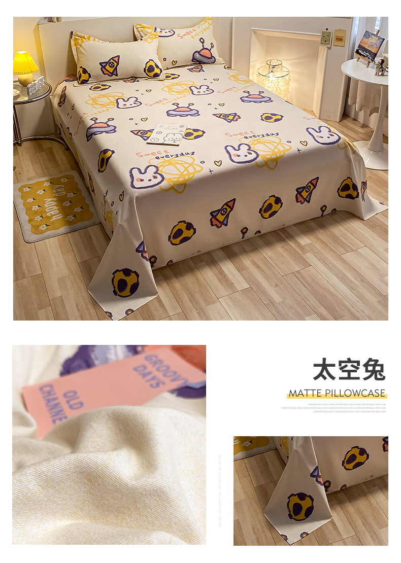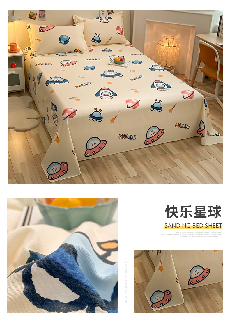 (总)小叮当家纺仓储工厂店 【长期供货】2025新款雪花绒学生床单床笠单品床笠单件床笠【支持小批量定制】,R情调,R兔兔,R草莓,R太空,R小熊