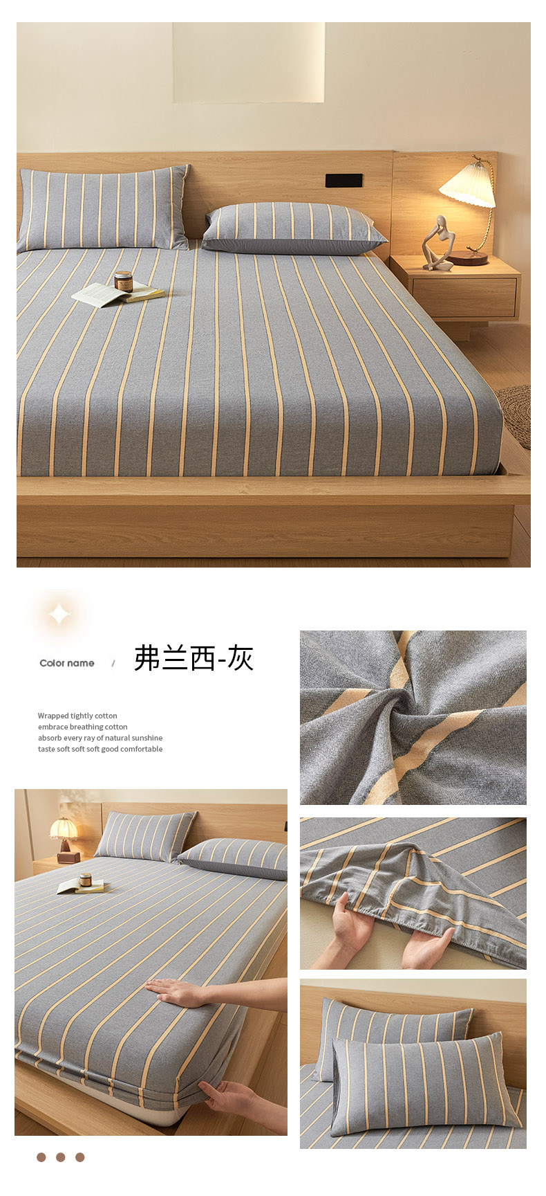 商品名称:ab家纺 2025新款简约色织水洗棉床笠 弗兰西-灰