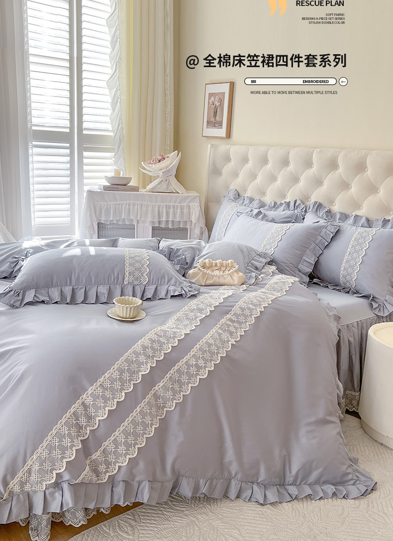 当前位置: 91家纺网 > 商品网购 > 床品套件 > 四件套 > 长绒棉四件套 > 恋尚 2025新款60贡缎长绒棉床笠裙款四件套-赫朵 赫朵 浅灰