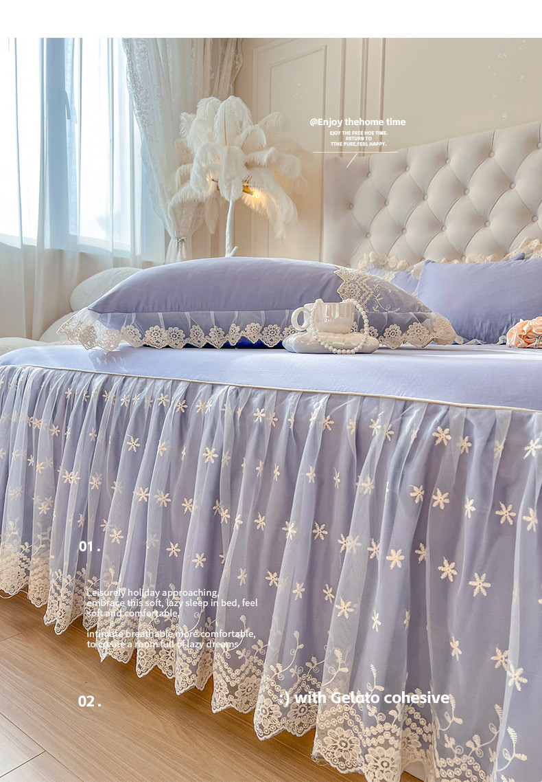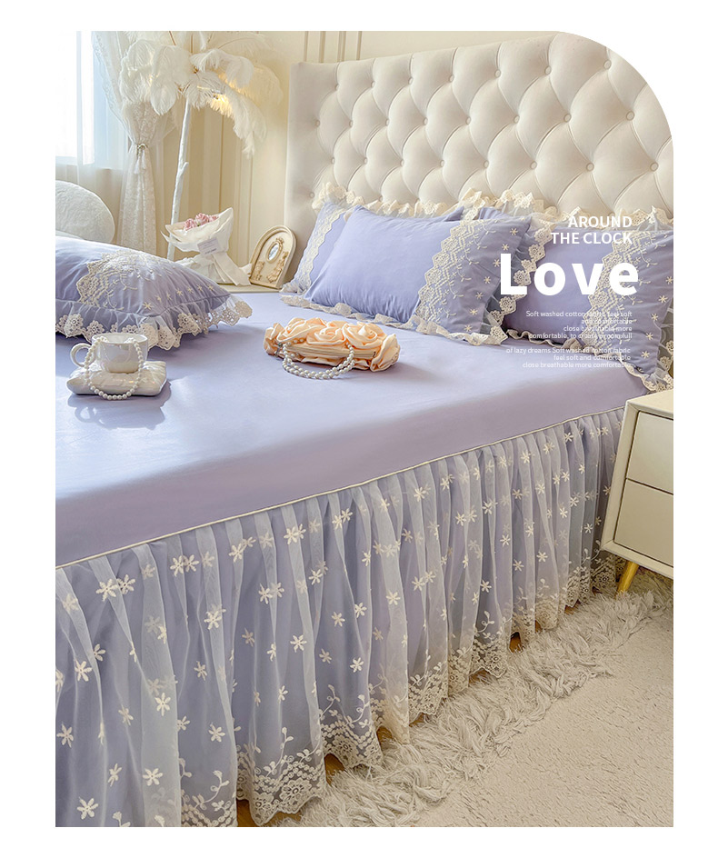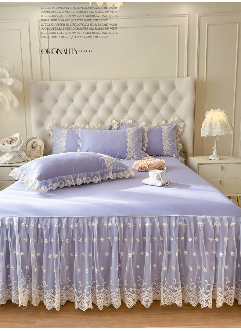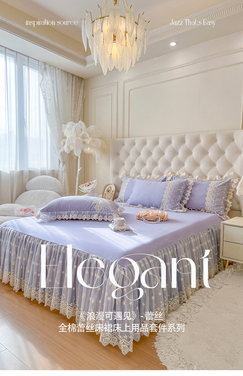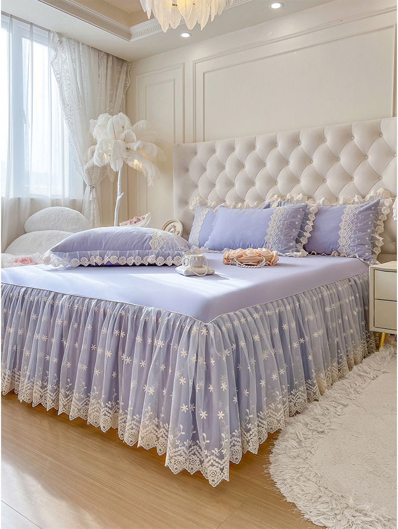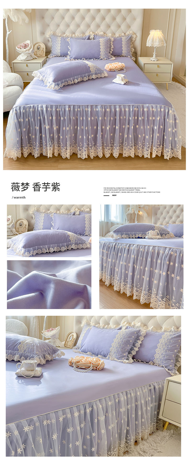 • 91家纺网 家纺一手货源 找家纺 恋尚 2025新款60贡缎长绒棉床笠裙款三件套-薇梦 薇梦-香芋紫