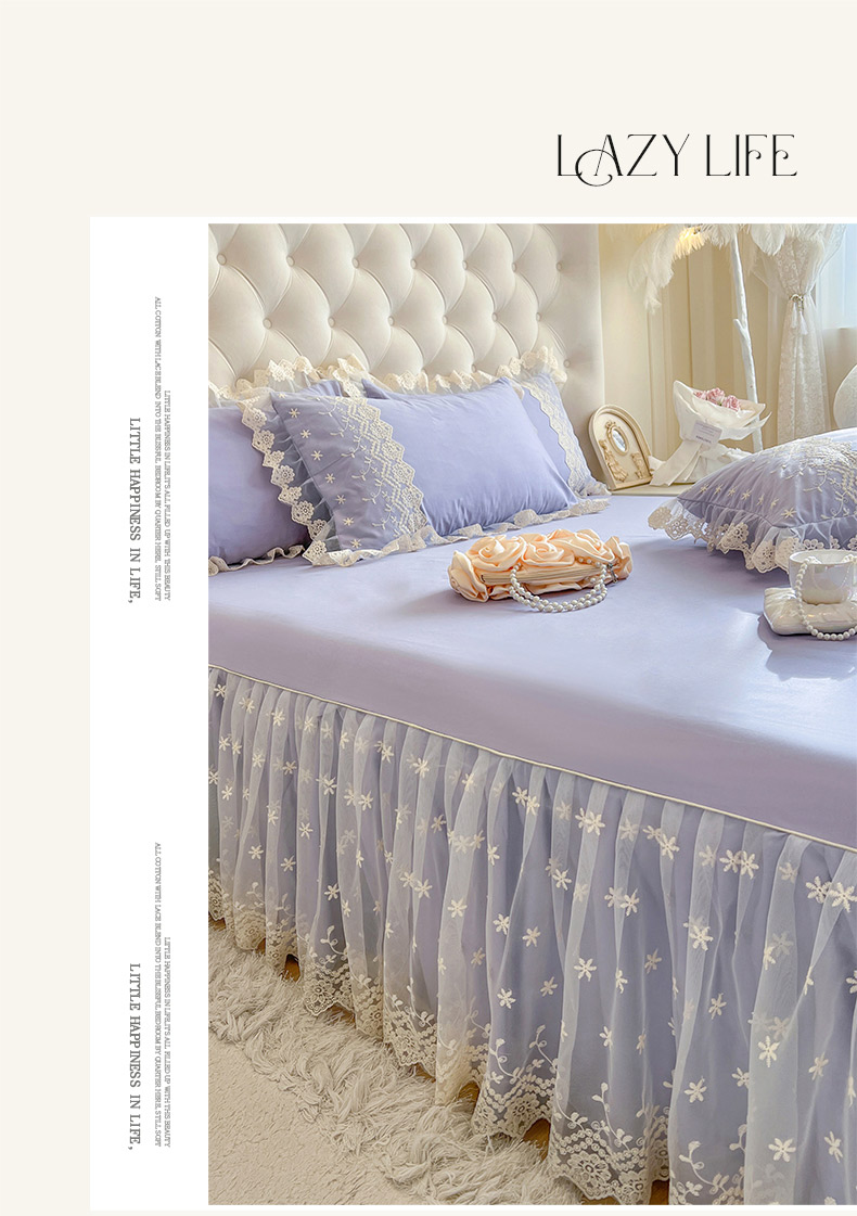 恋尚 2025新款60贡缎长绒棉床笠裙款三件套-薇梦 薇梦-香芋紫