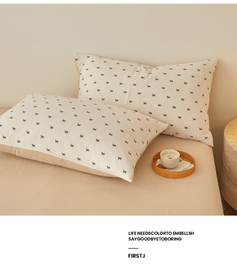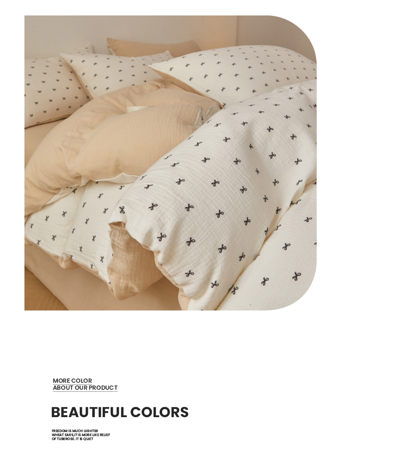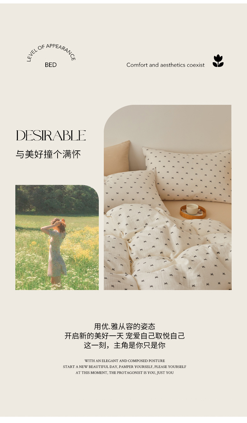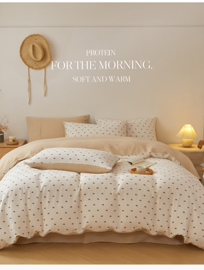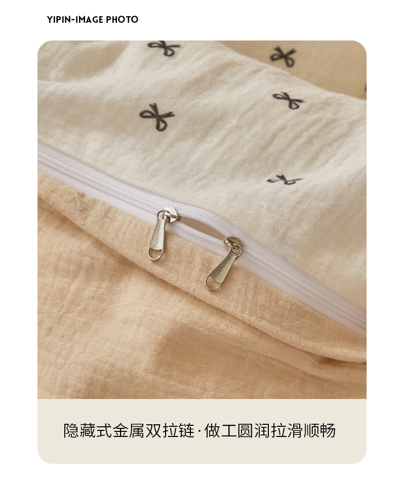 商品名称:618家纺 2025新款A类母婴级全棉三层纱皱皱纱纯棉四件套 蝴蝶结米
