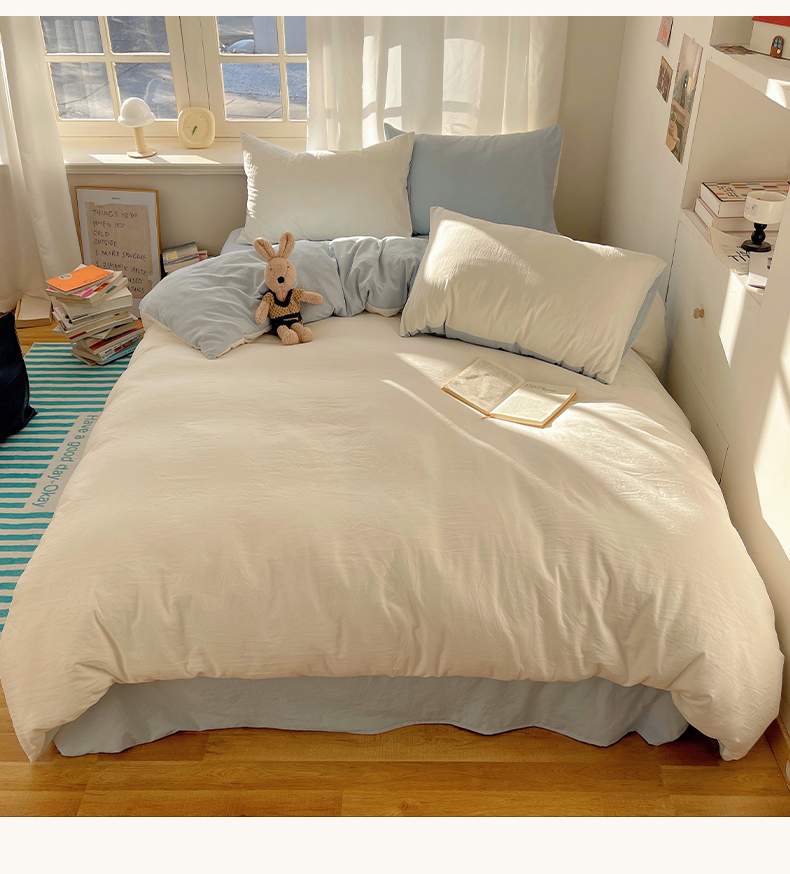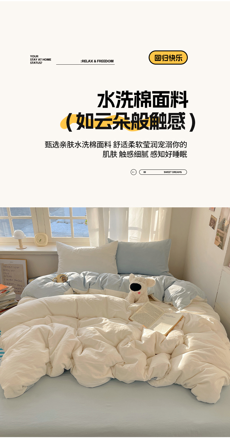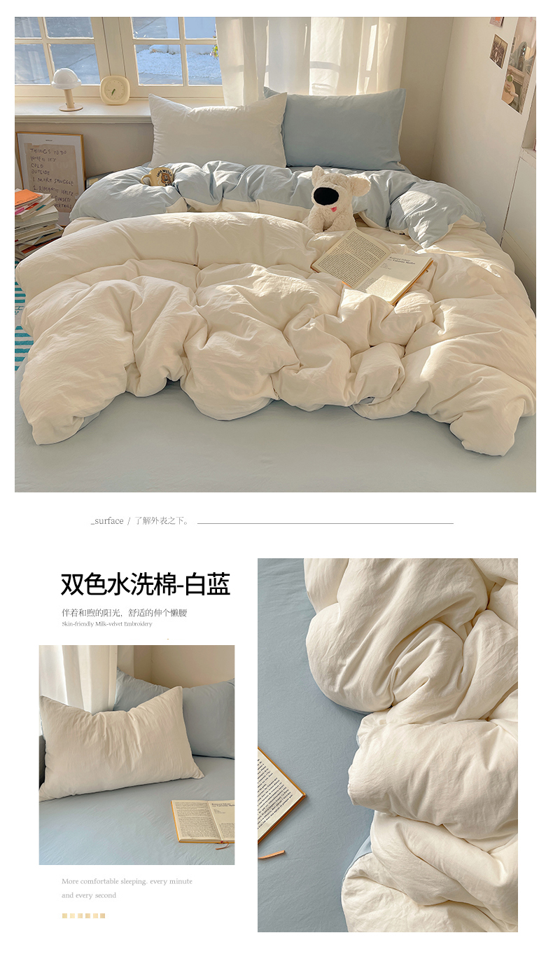当前位置: 91家纺网 > 商品网购 > 床品套件 > 四件套 > 水洗棉四件套 > 阿曼达 2025新款ins博主风纯色混搭双色水洗m四件套 双色水洗m-白蓝