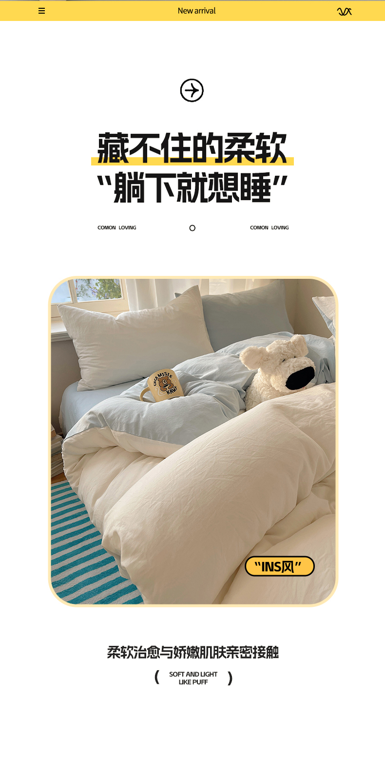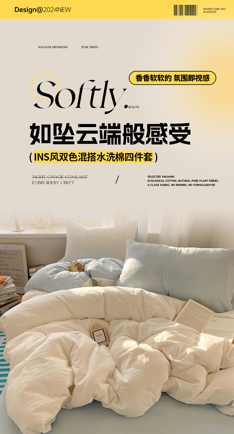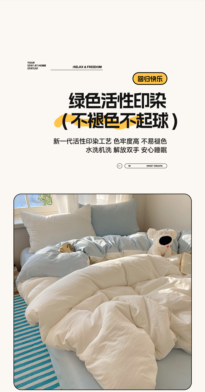 当前位置: 91家纺网 > 商品网购 > 床品套件 > 四件套 > 水洗棉四件套 > 阿曼达 2025新款ins博主风纯色混搭双色水洗m四件套 双色水洗m-白蓝