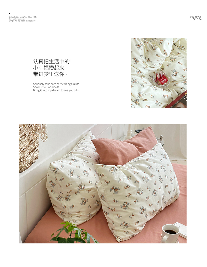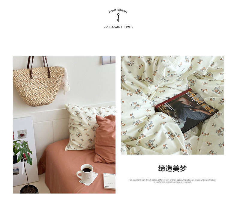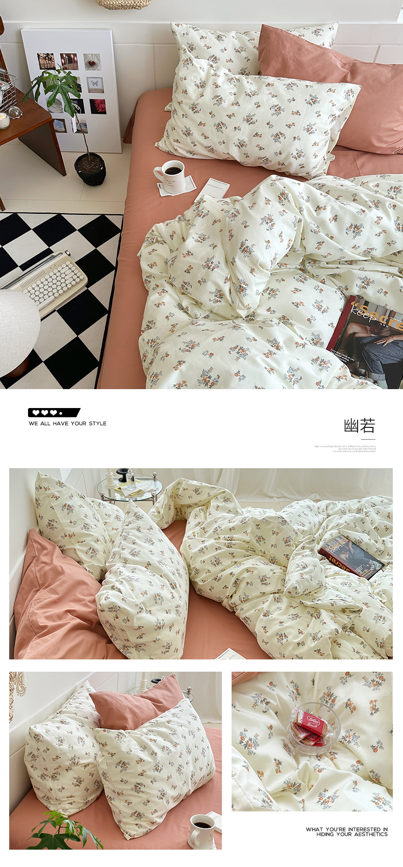 当前位置: 91家纺网 > 商品网购 > 床品套件 > 四件套 > 全棉普通四件套 > 2025新款纯棉小清新四件套小碎花学生三件套纯色床单印花枕套双人床笠 幽若