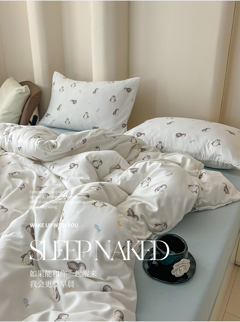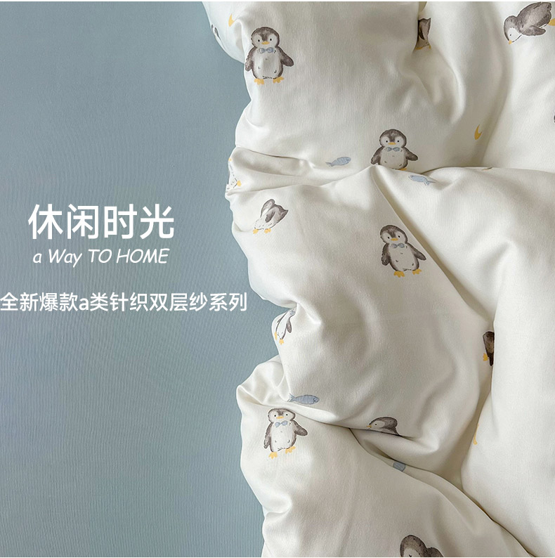 当前位置: 91家纺网 > 商品网购 > 床品套件 > 四件套 > 其它四件套 > 暖芯优选 2025新款针织棉双层纱四件套小碎花被套床单床笠款学生三件套新款直播热款-叠拍图-系列一 企鹅