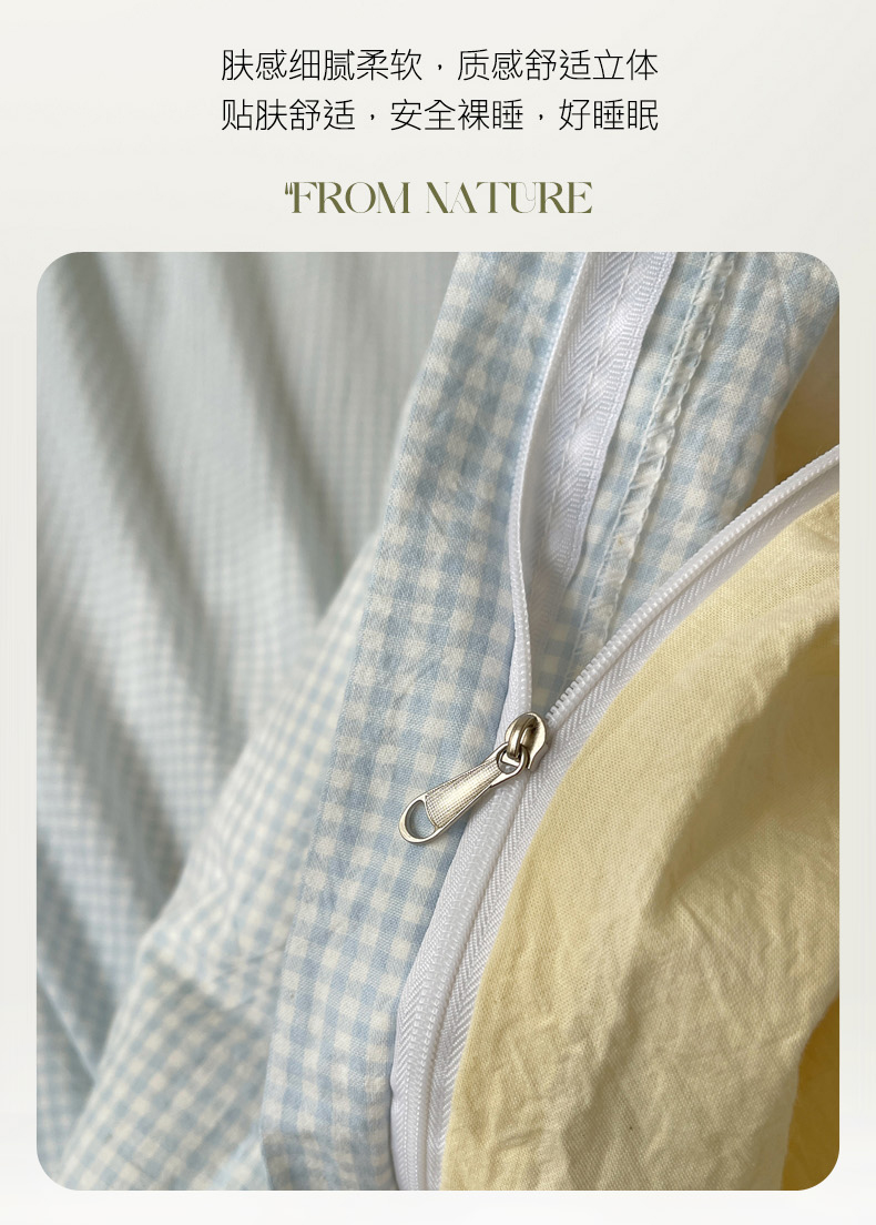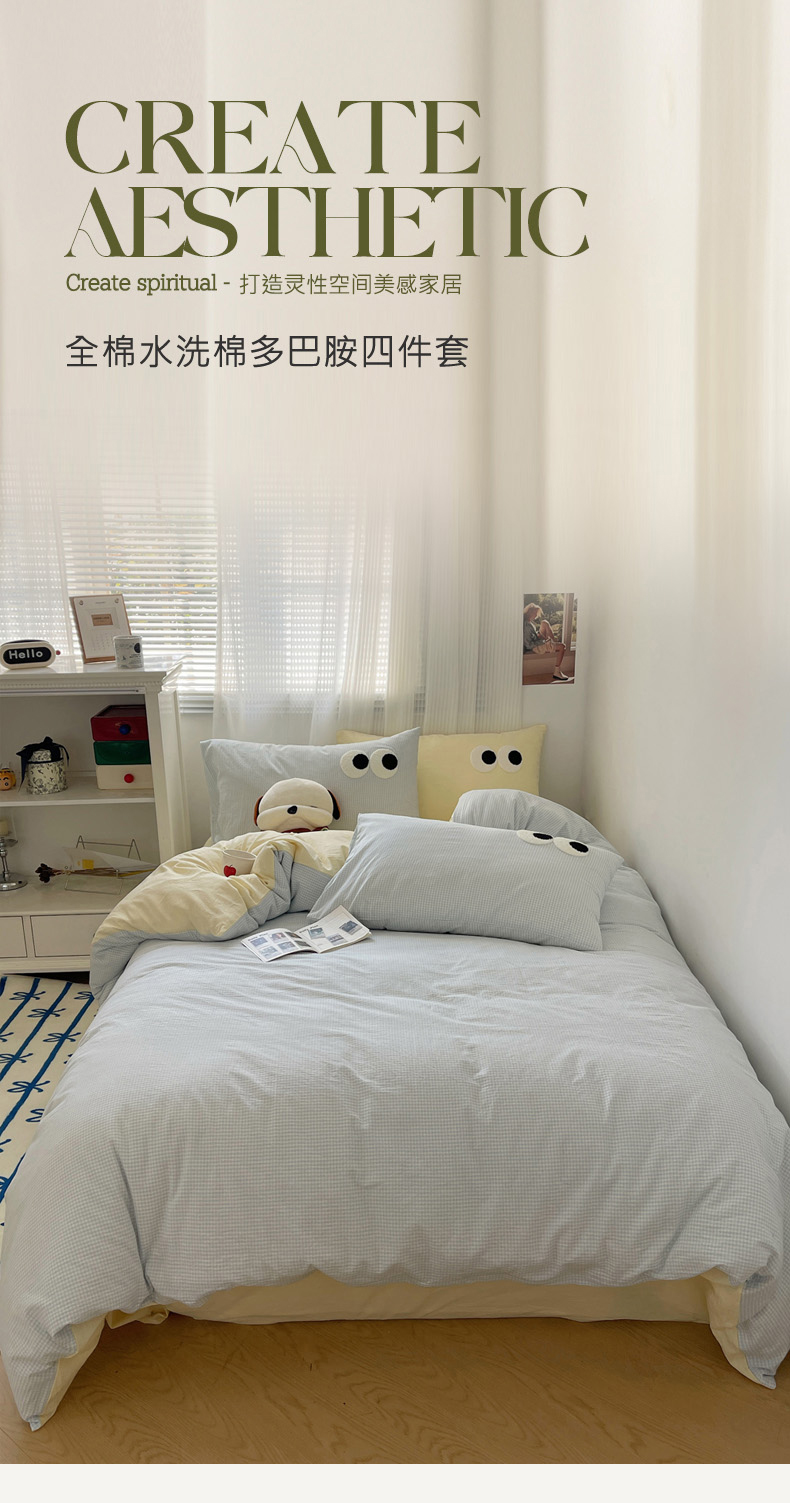商品名称:丽涵家纺 2025新品全棉水洗棉大眼毛巾绣四件套-密条系 大眼蓝黄格1