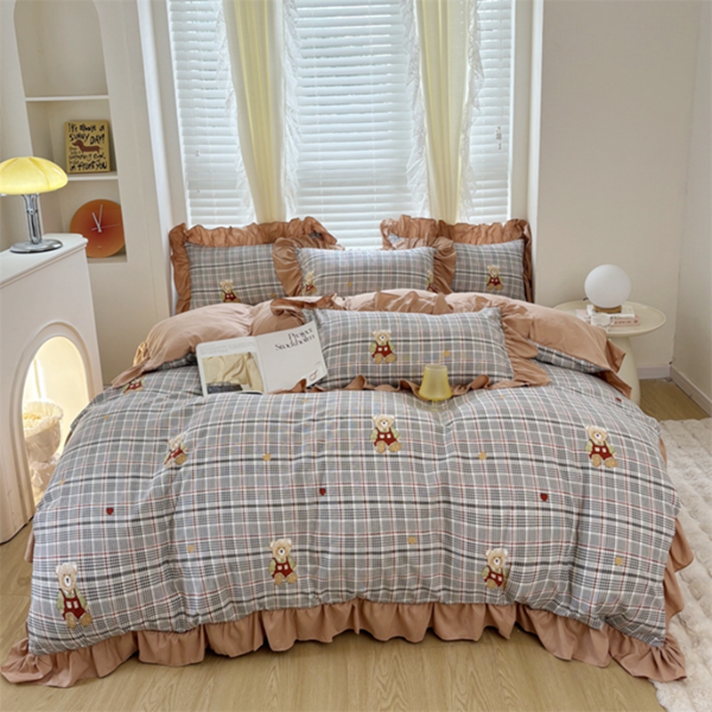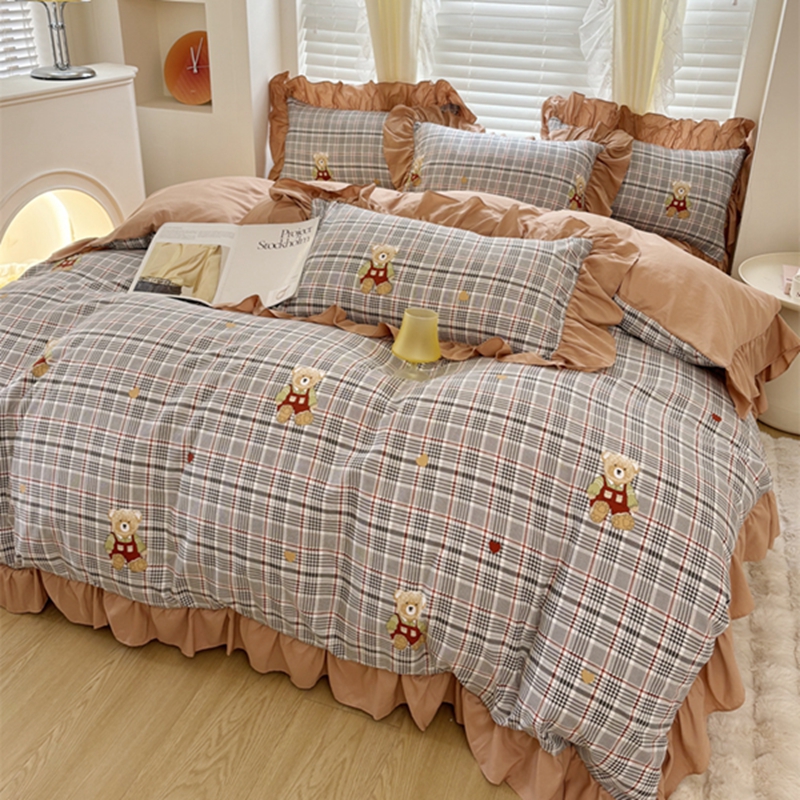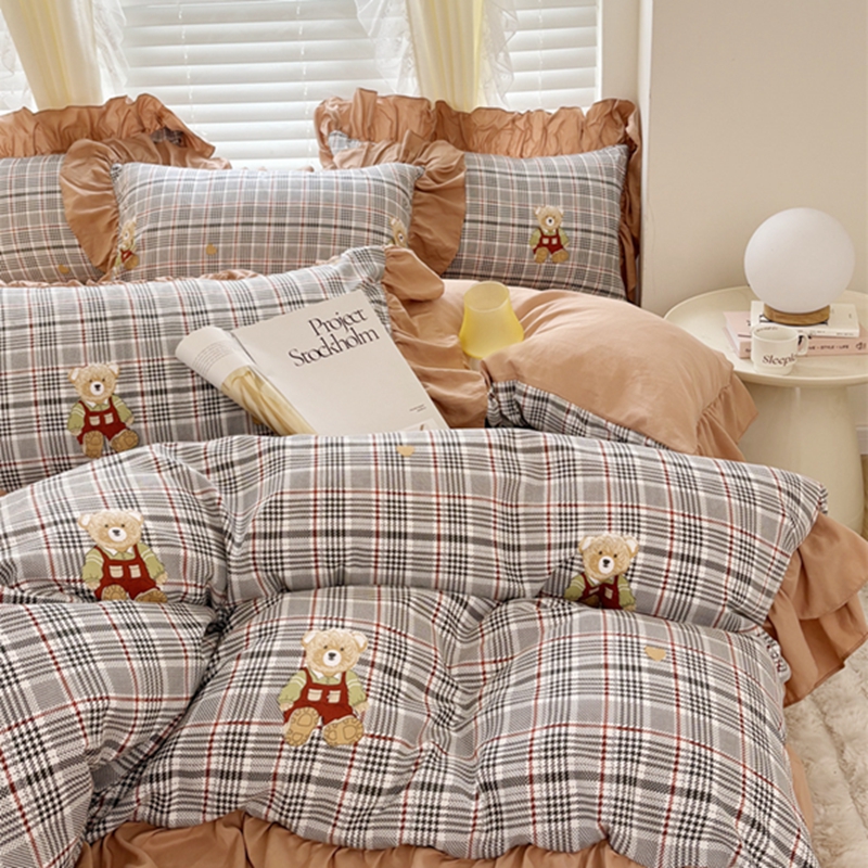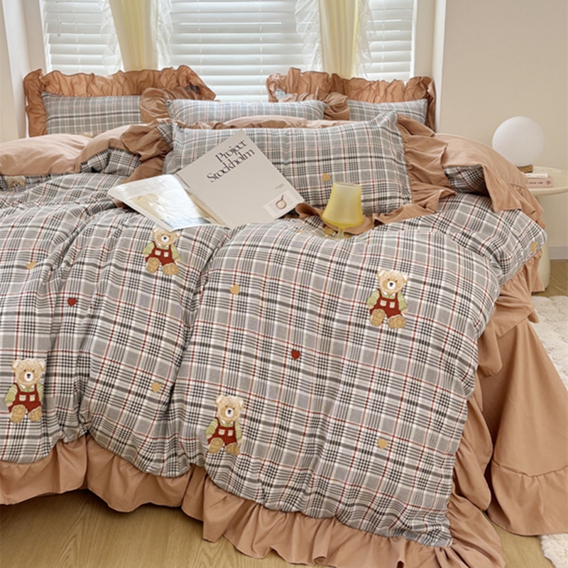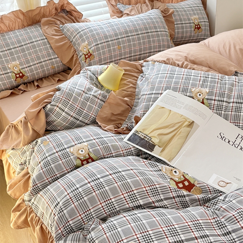 仟网汇 2025新款韩版糯糯棉花边四件套田园法式 绅士熊