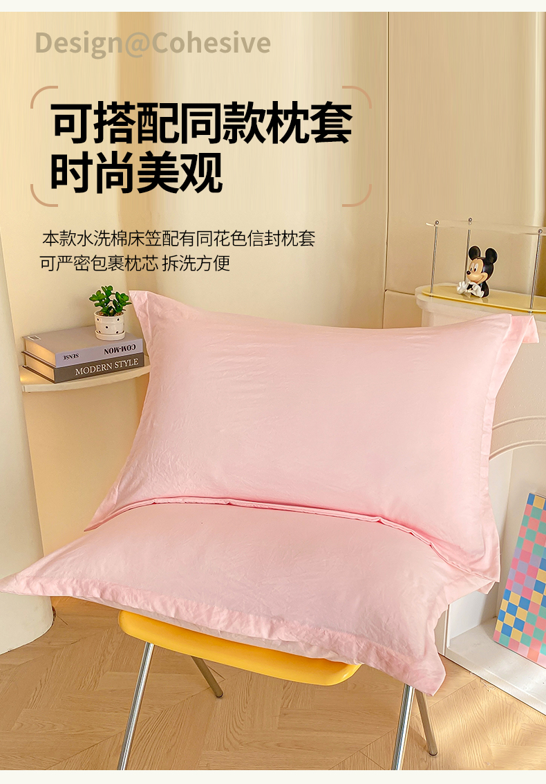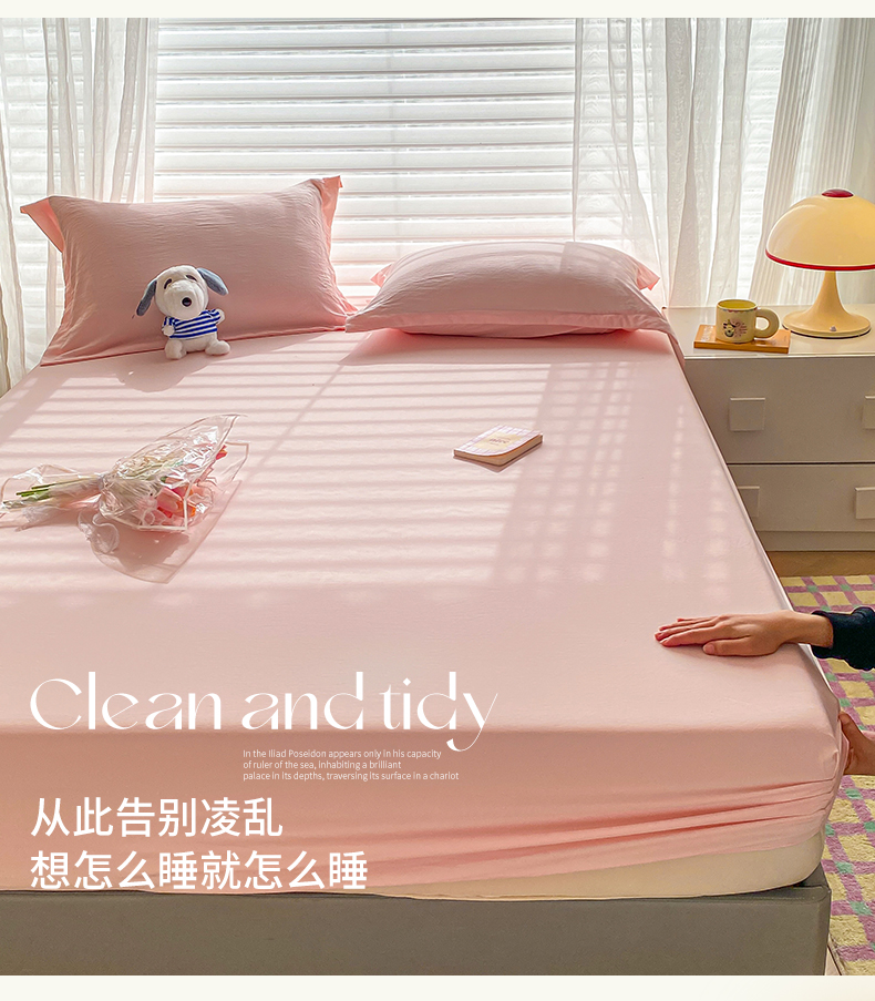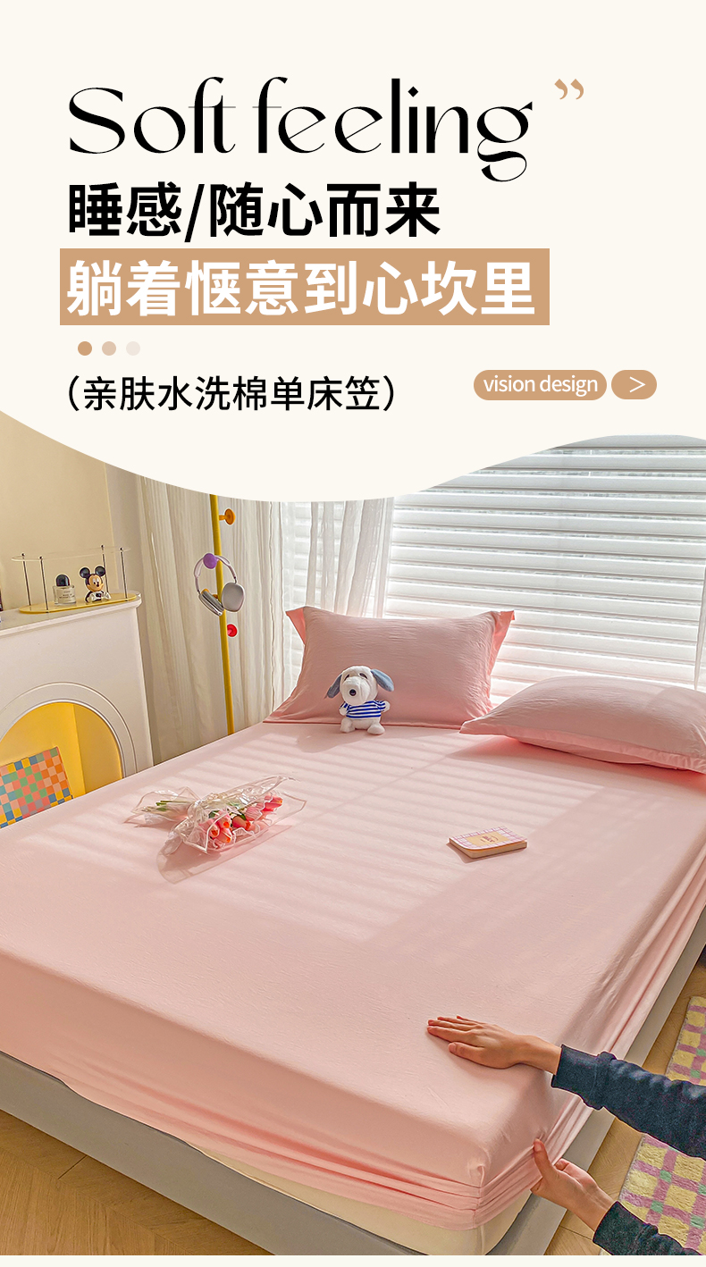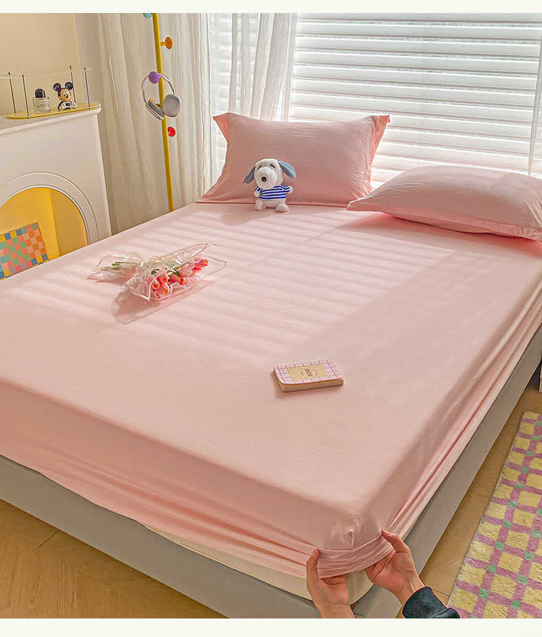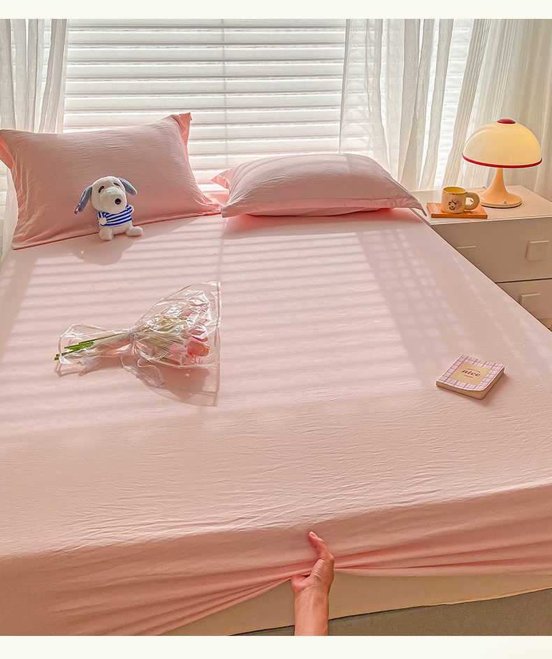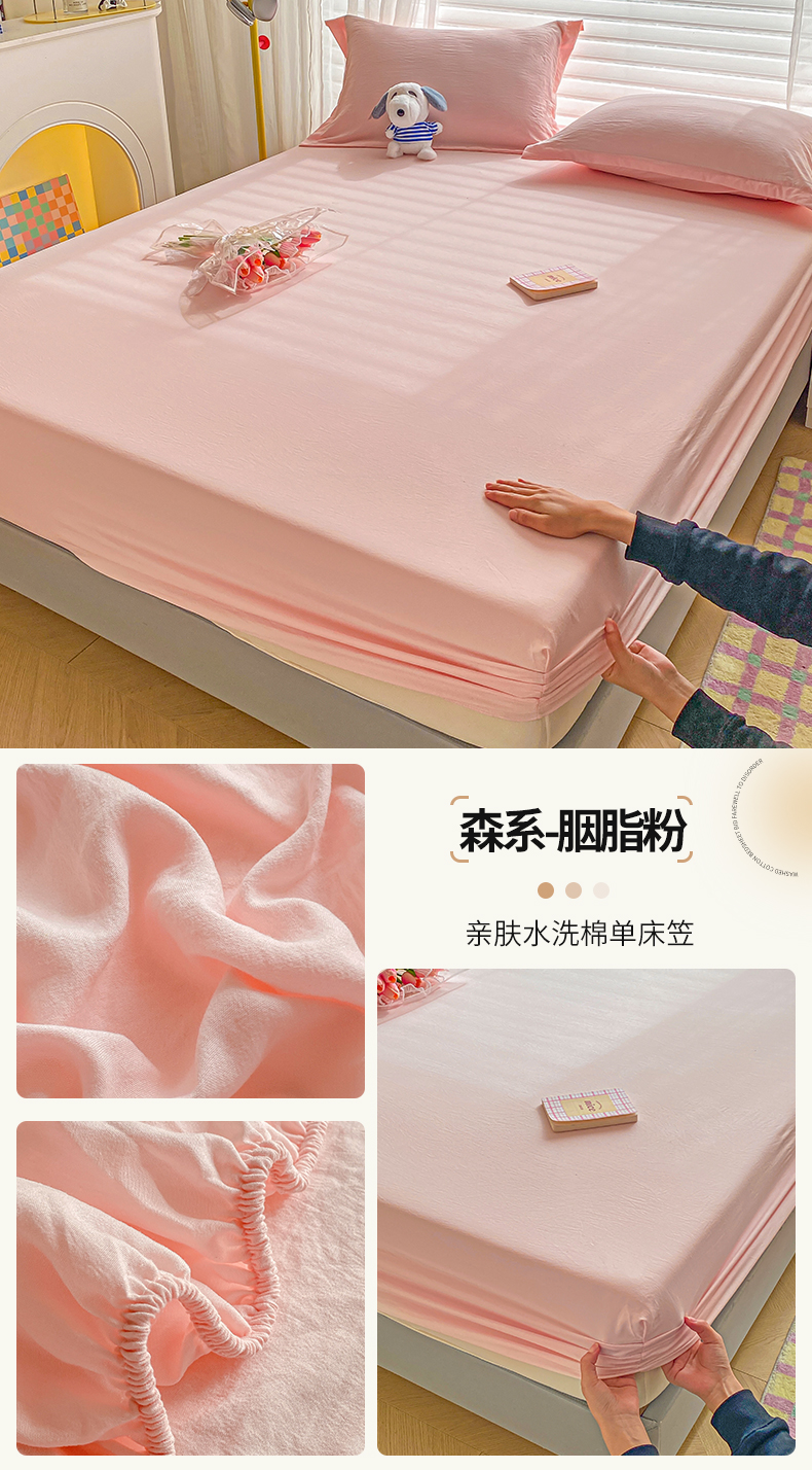 恬澳家纺 2025新款森系水洗棉无印风单床笠 森系-胭脂粉