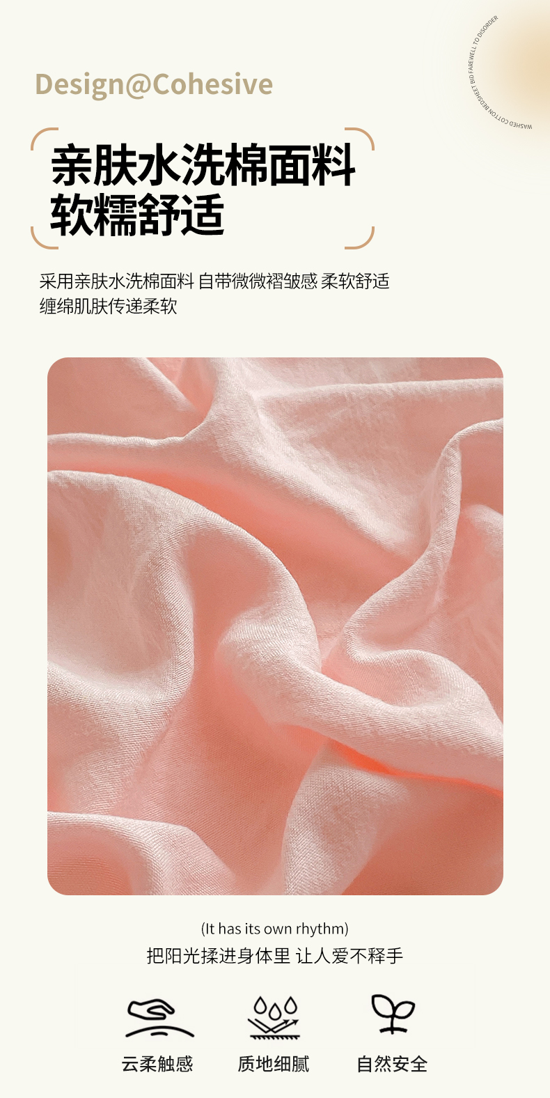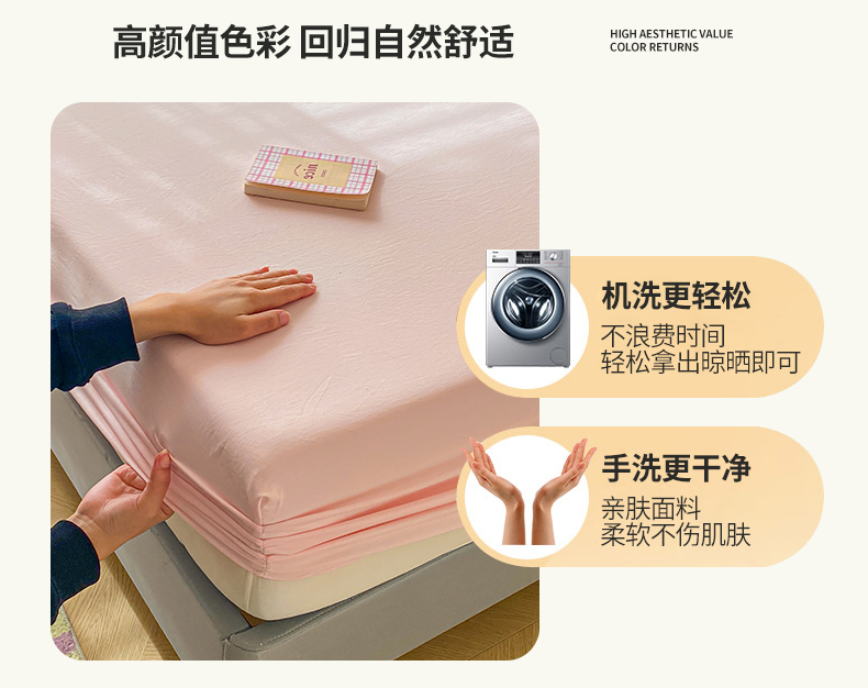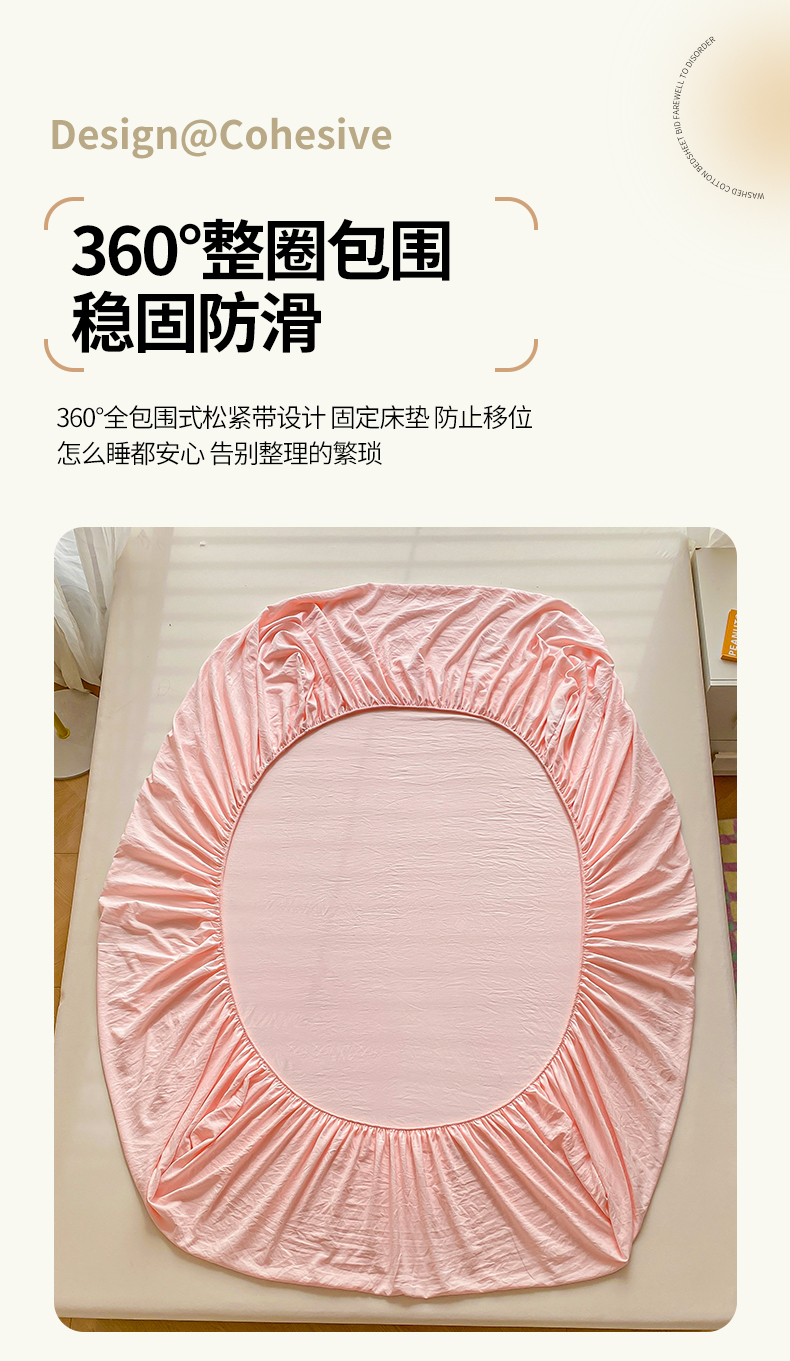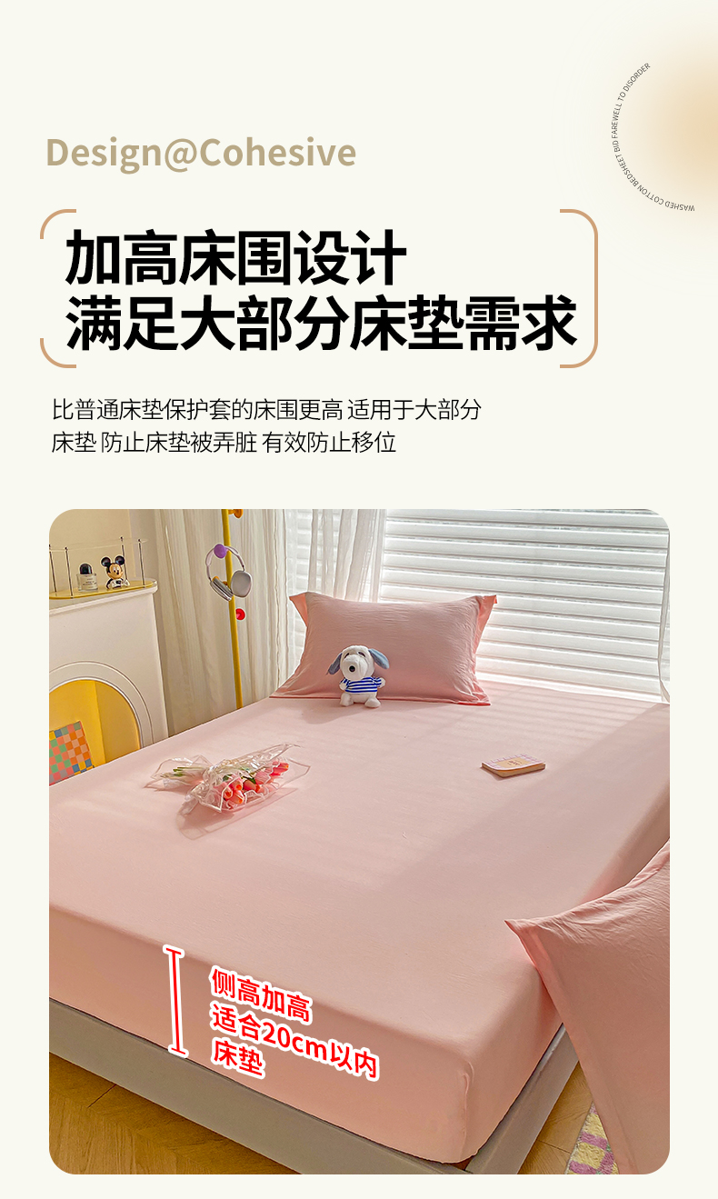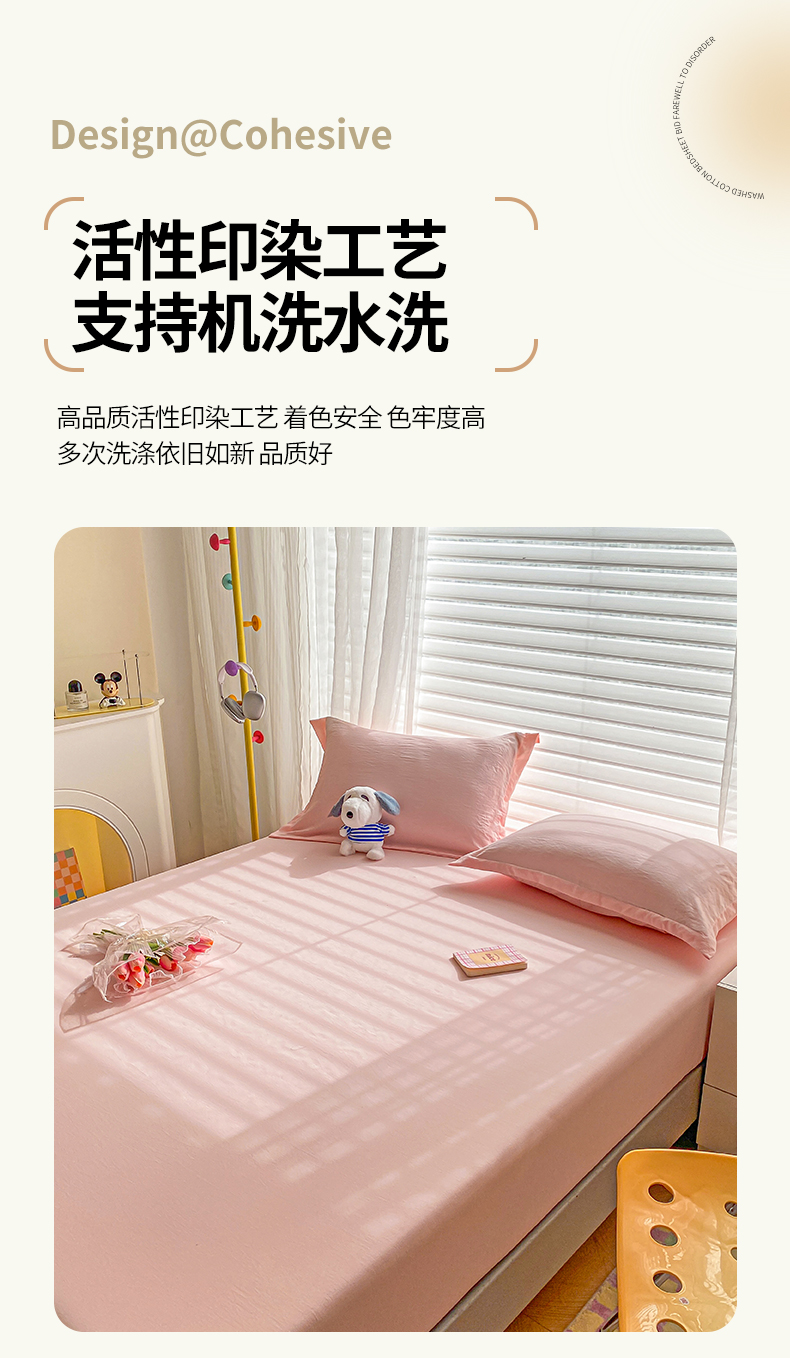 商品名称:恬澳家纺 2025新款森系水洗棉无印风单床笠 森系-胭脂粉