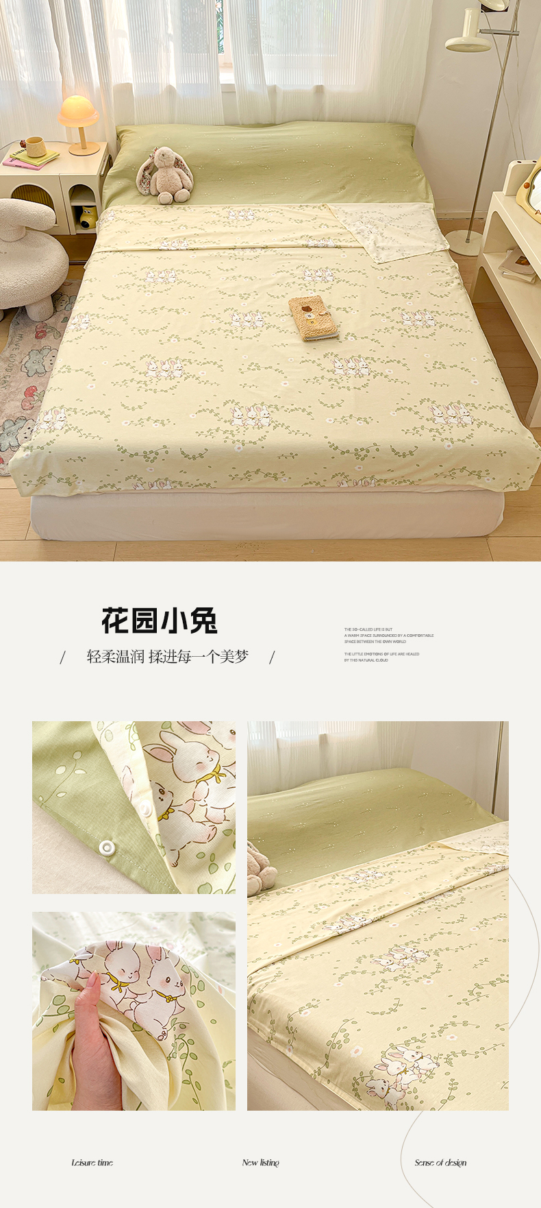 • 91家纺网 家纺一手货源 找家纺 寻米 2025新款全棉印花旅行睡袋系列 花园小兔