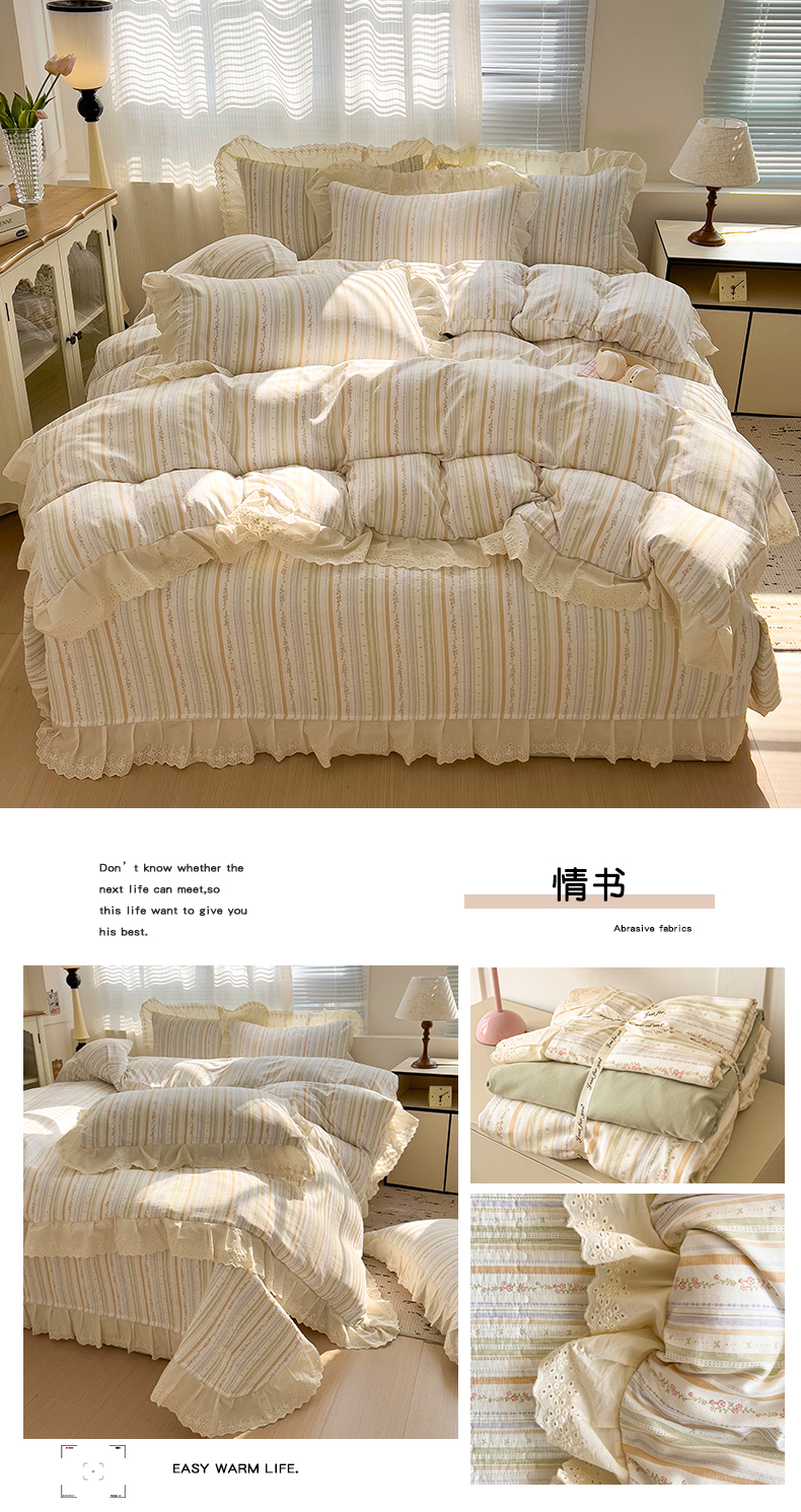 (总)富米莱(原臻工厂) 2024新款韩版提花条纹四件套,花边提花-豆沙条条,花边提花-粉条条,花边提花-蓝条条,花边提花-绿条条,花边提花-抹茶条条,花边提花-奶茶条条