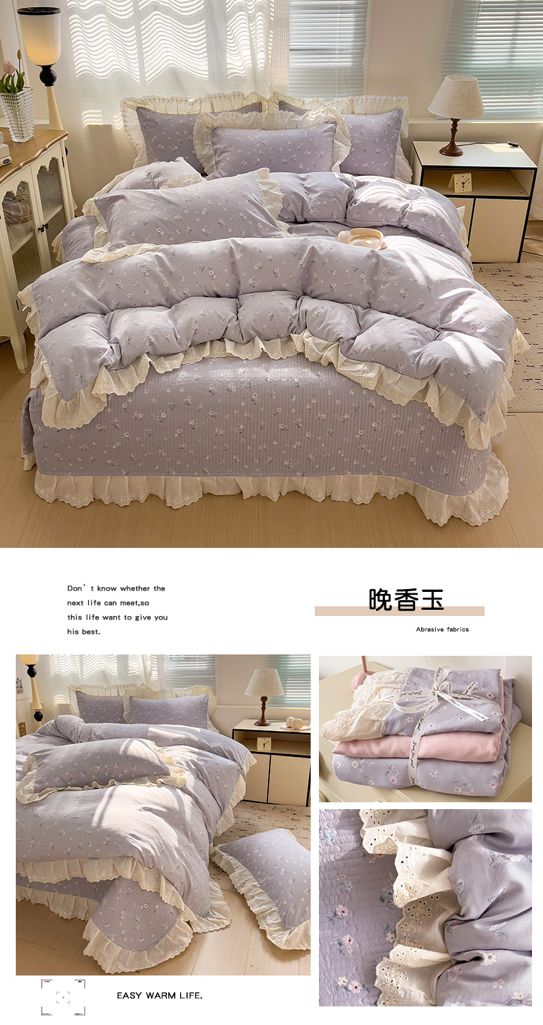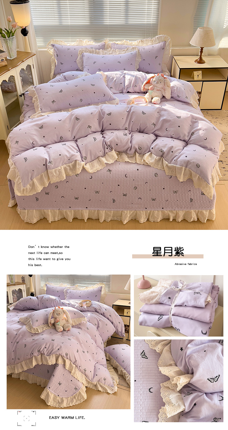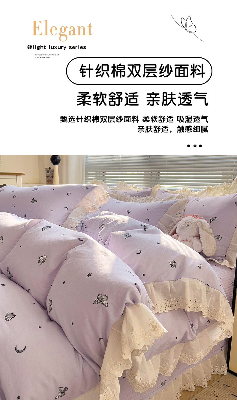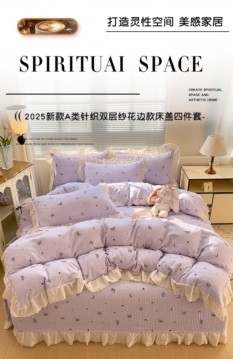 (总)富米莱(原臻工厂) 2025新款A类针织双层纱花边款四件套床盖四件套