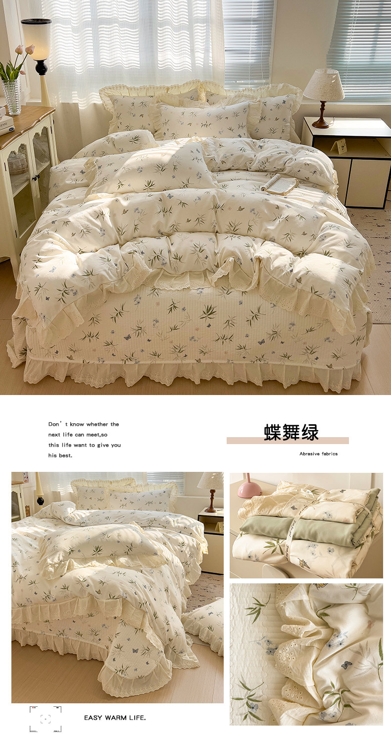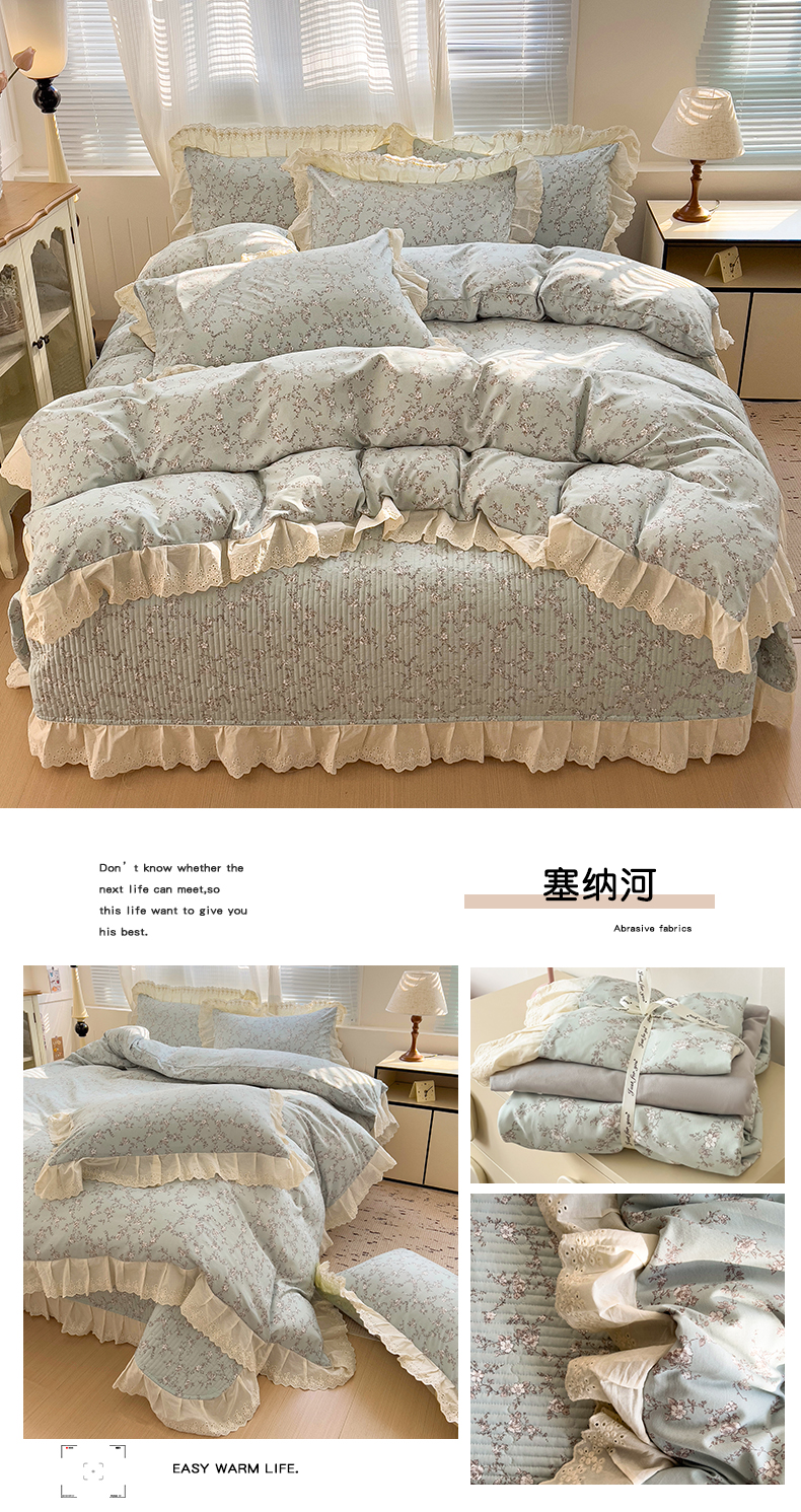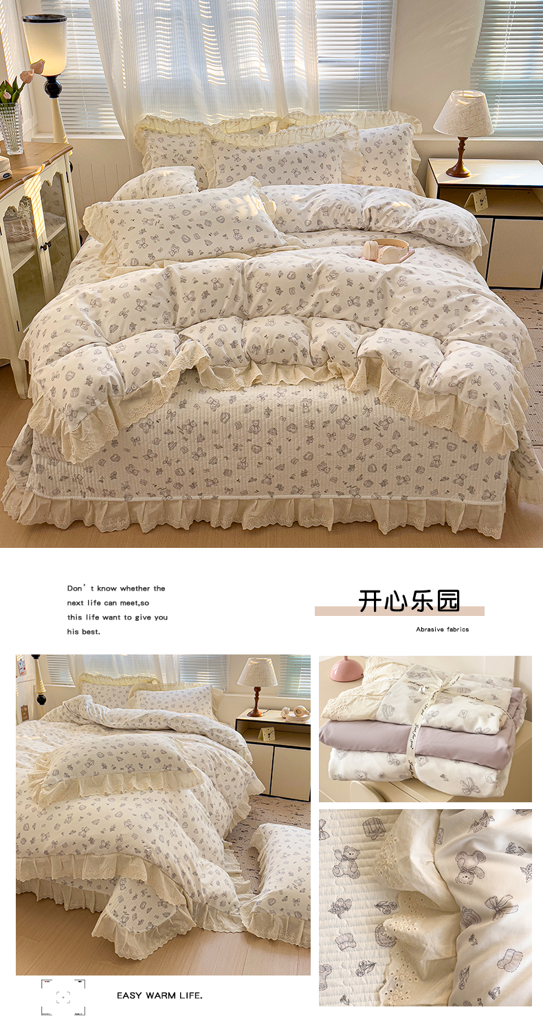 (总)富米莱(原臻工厂) 2025新款A类针织双层纱花边款四件套床盖四件套