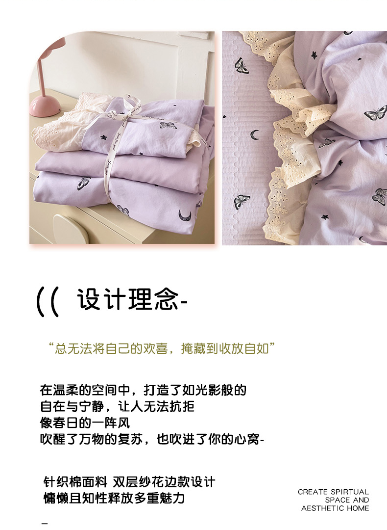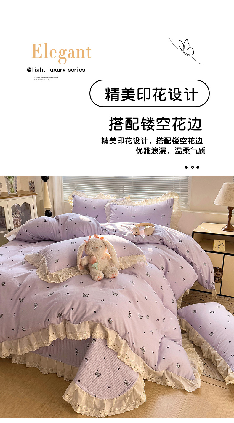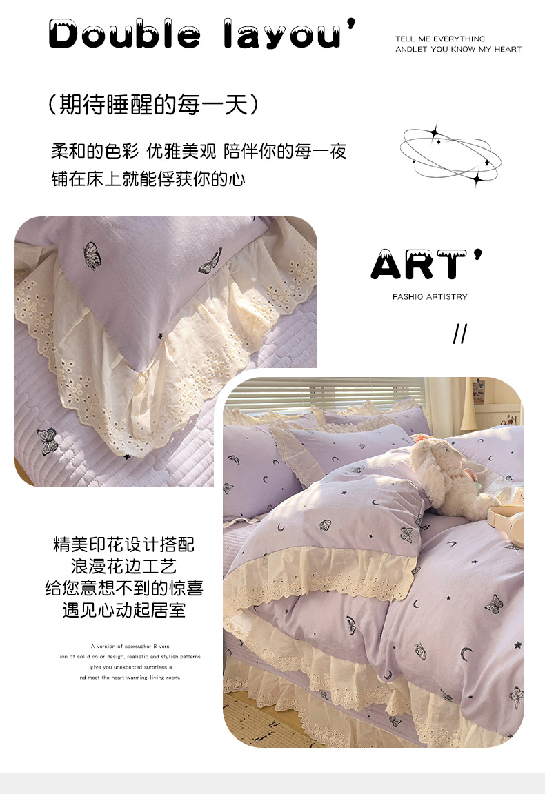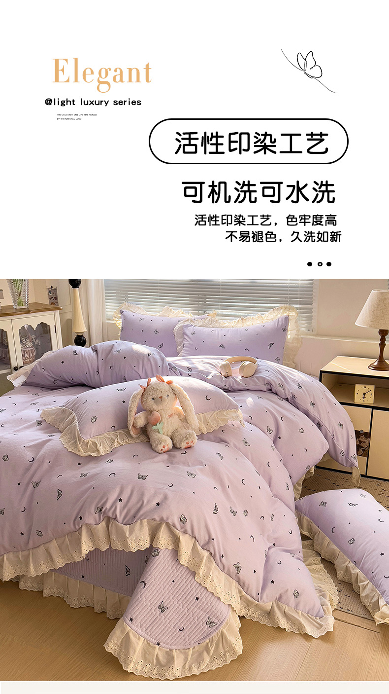 商品名称:(总)富米莱(原臻工厂) 2025新款A类针织双层纱花边款四件套床盖四件套