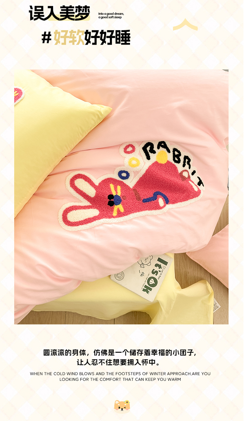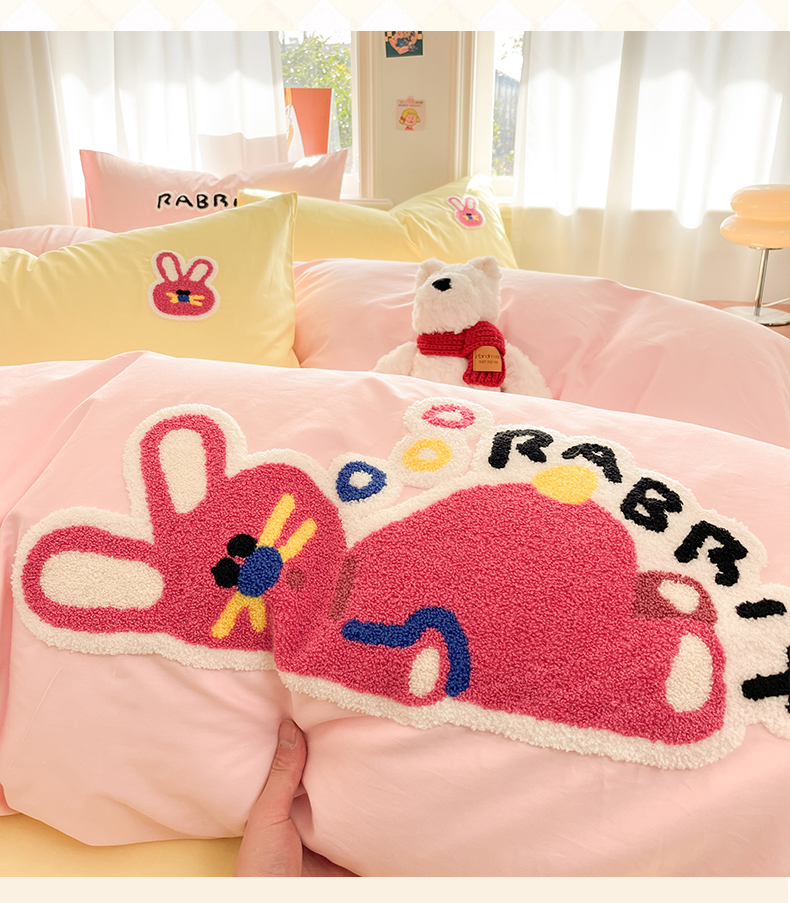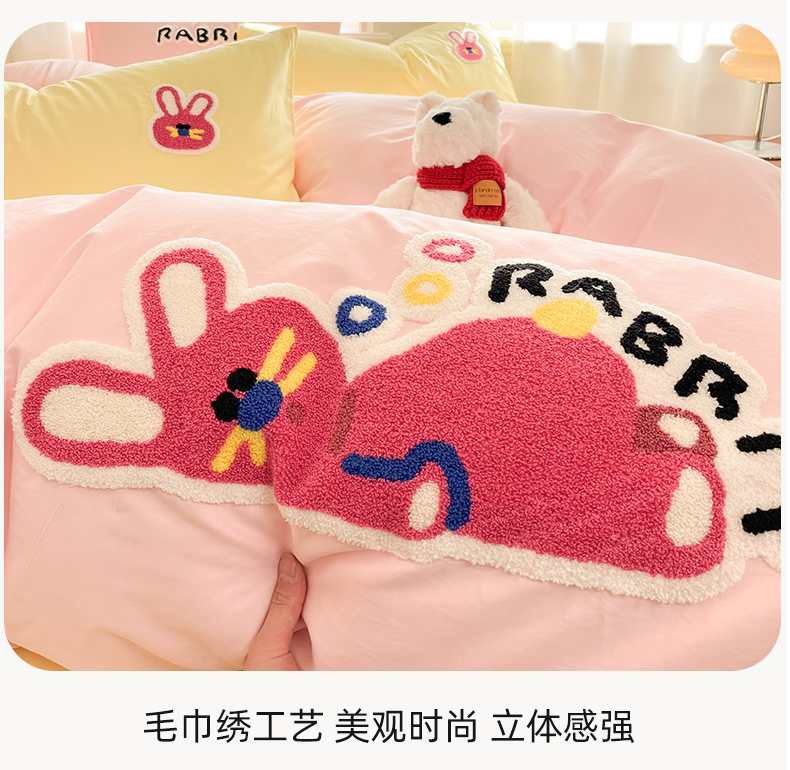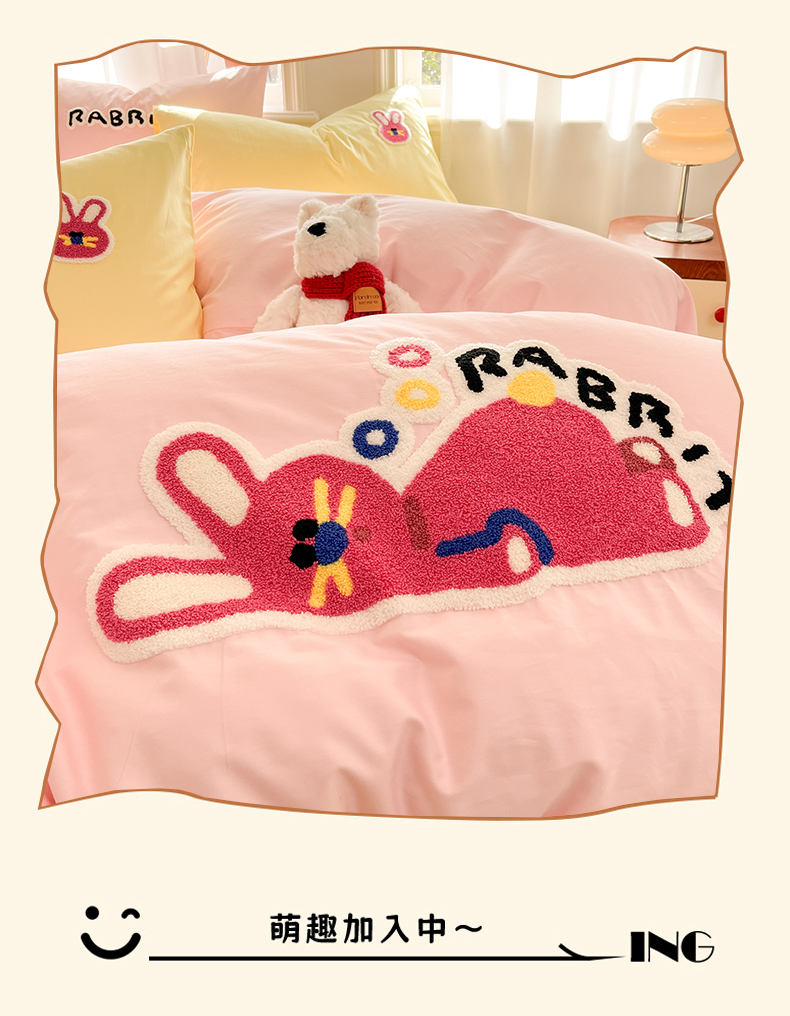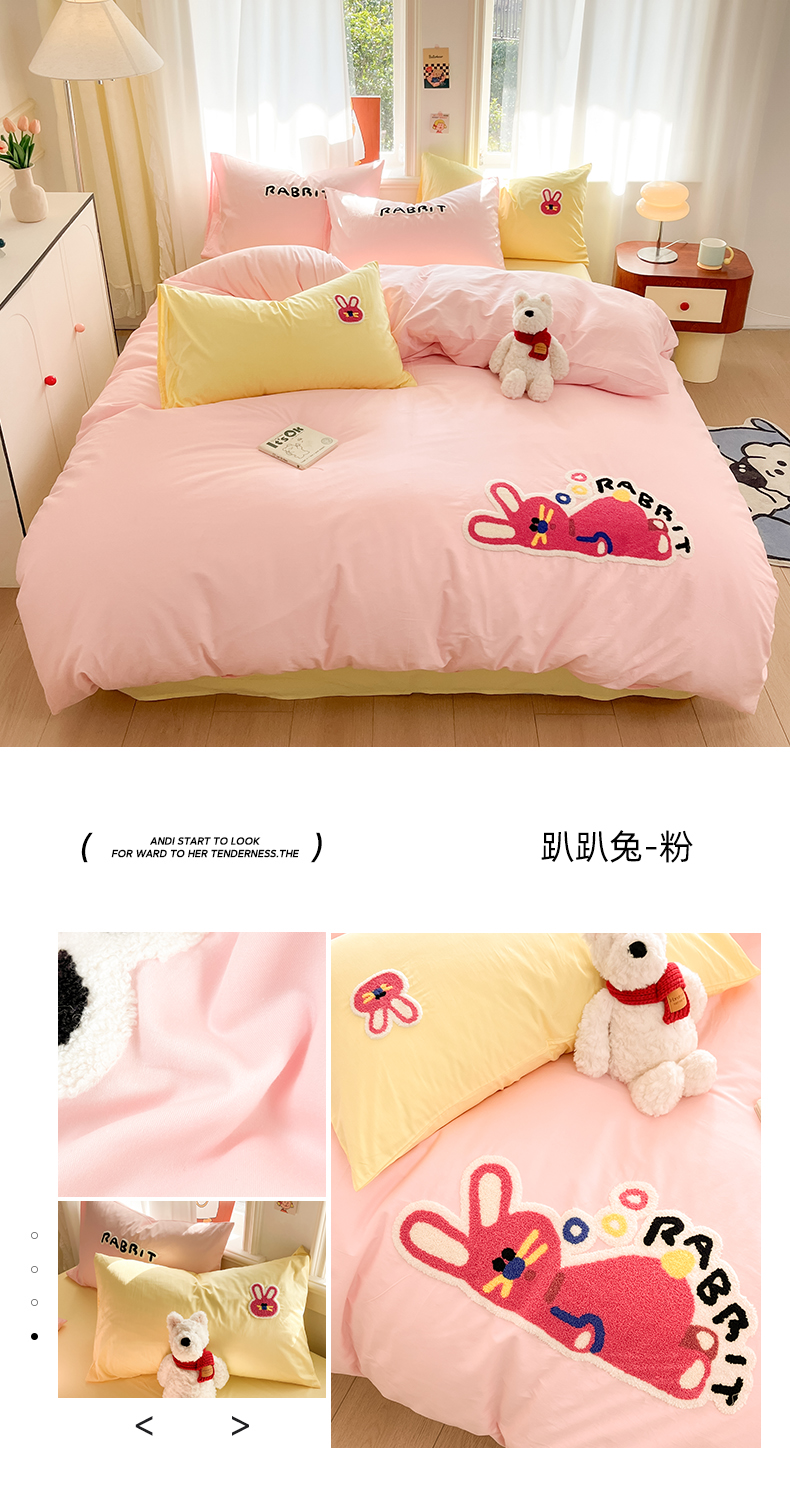 当前位置: 91家纺网 > 商品网购 > 床品套件 > 四件套 > 全棉普通四件套 > 我心家纺 2025新款全棉毛巾绣四件套-趴趴系列 趴趴兔-粉
