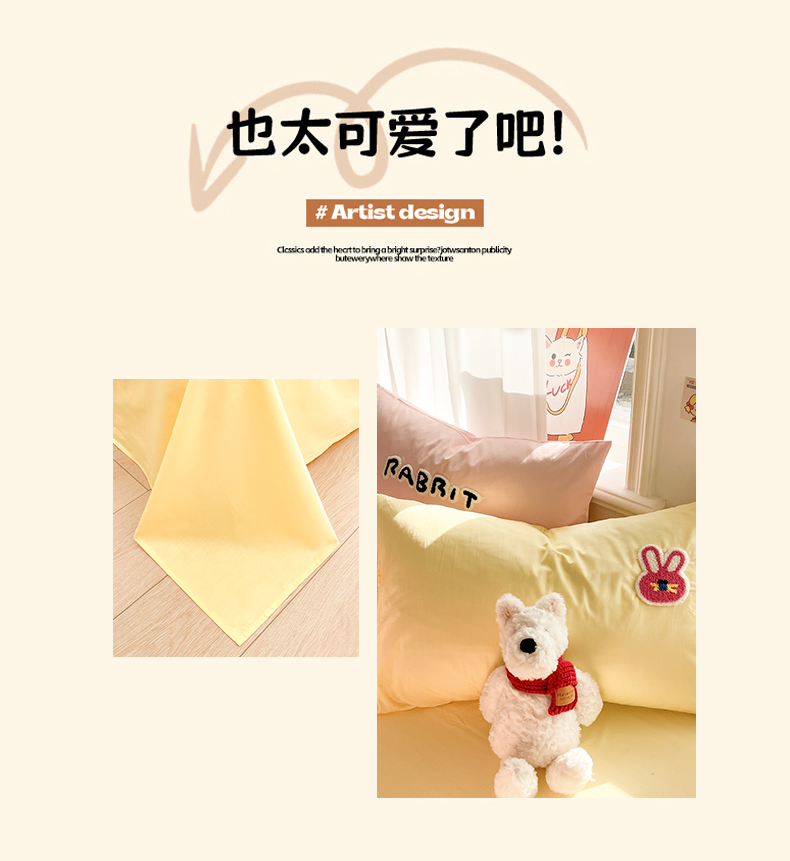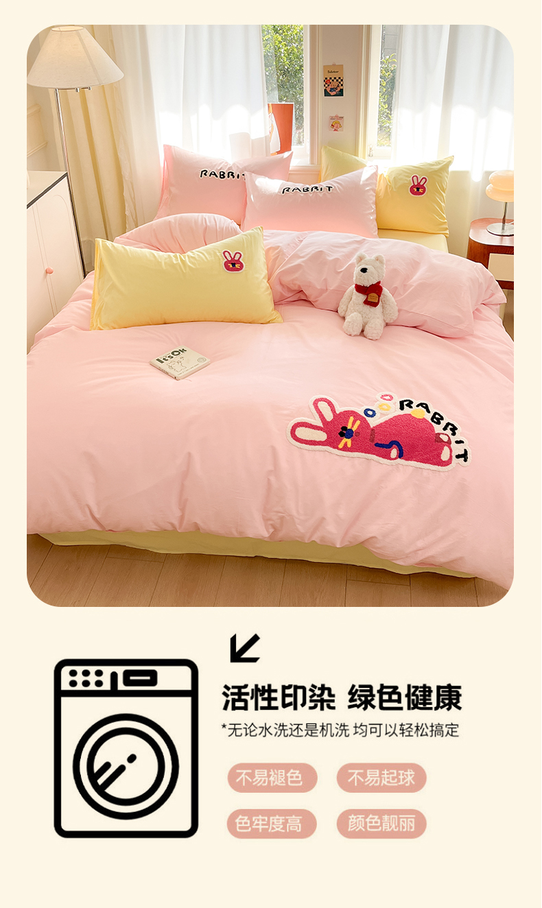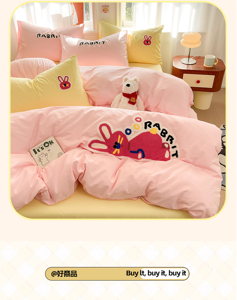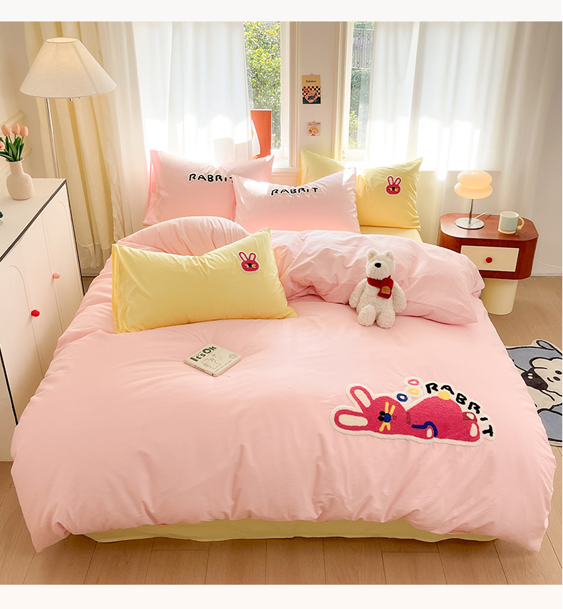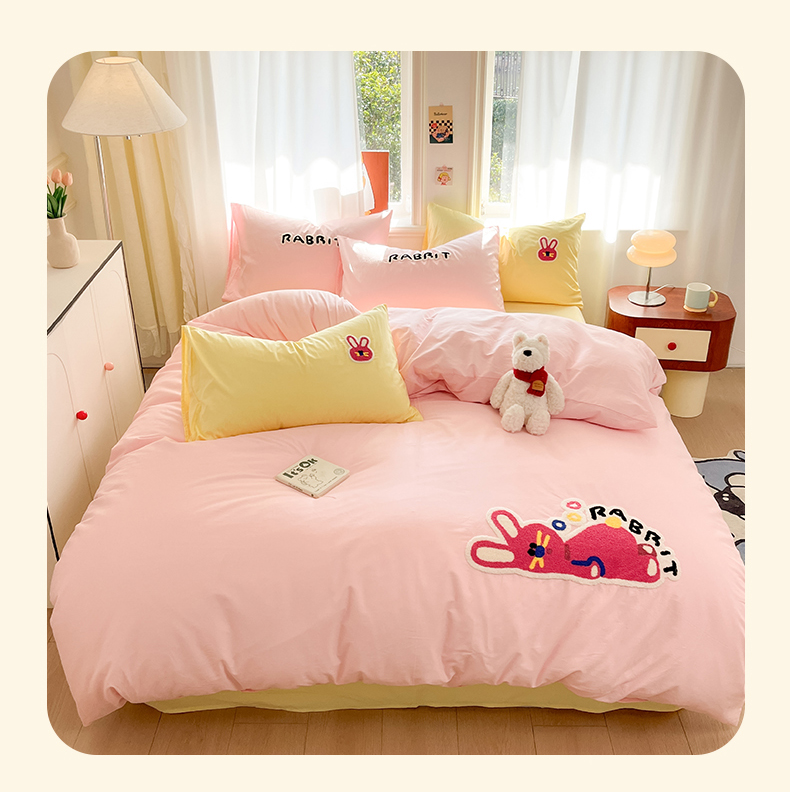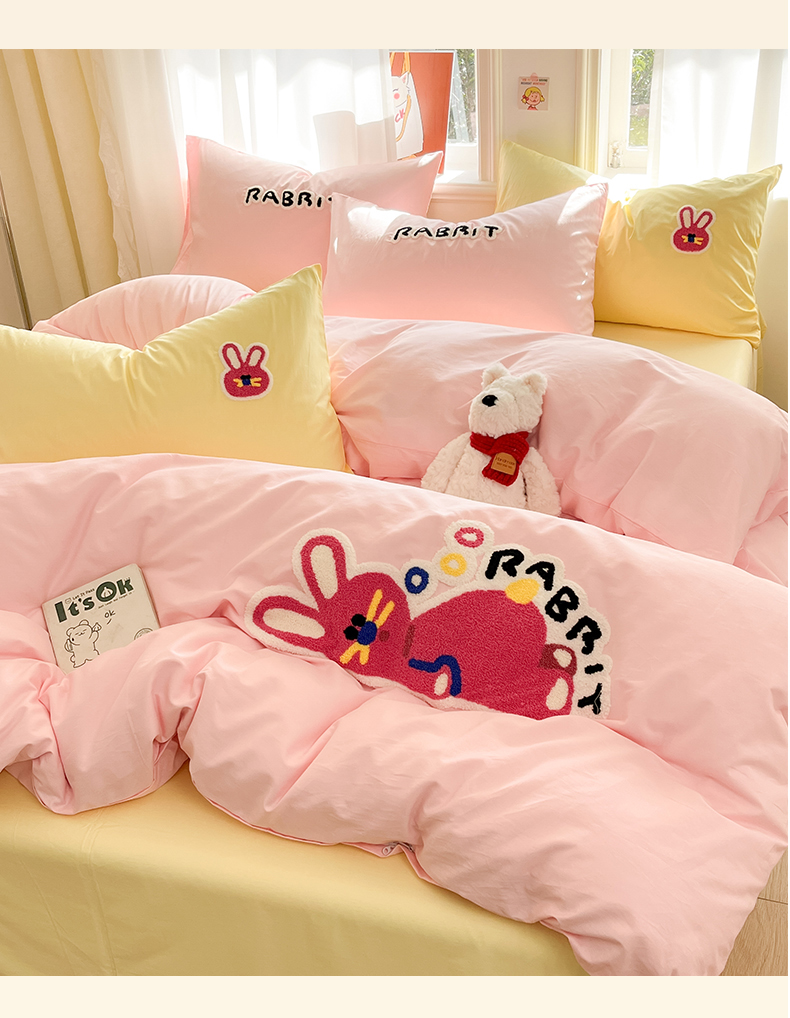 当前位置: 91家纺网 > 商品网购 > 床品套件 > 四件套 > 全棉普通四件套 > 我心家纺 2025新款全棉毛巾绣四件套-趴趴系列 趴趴兔-粉