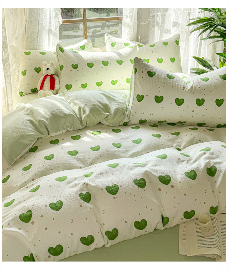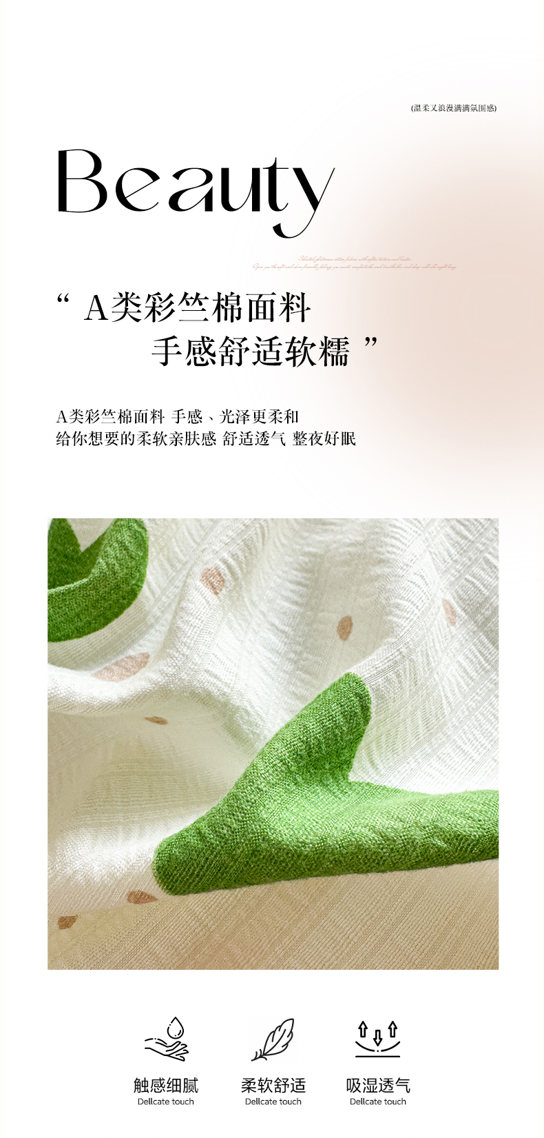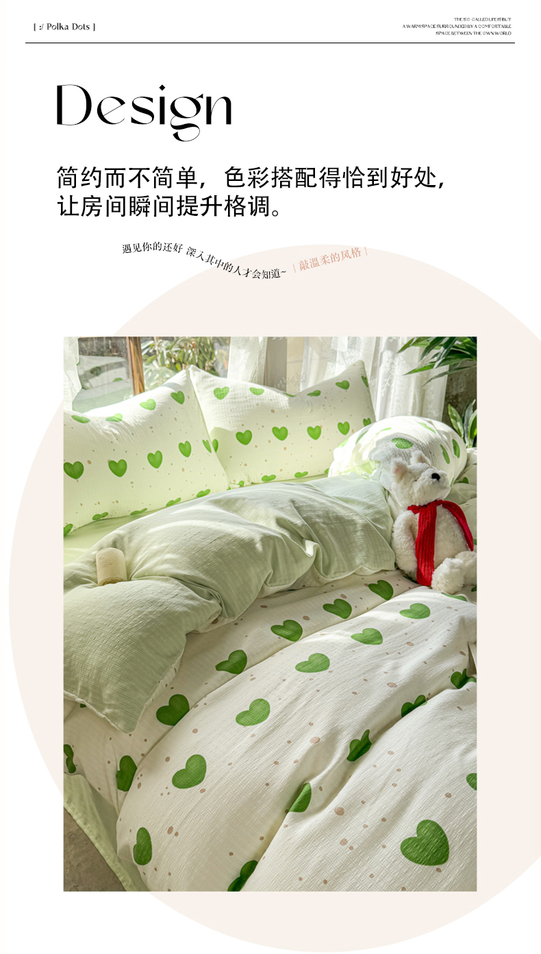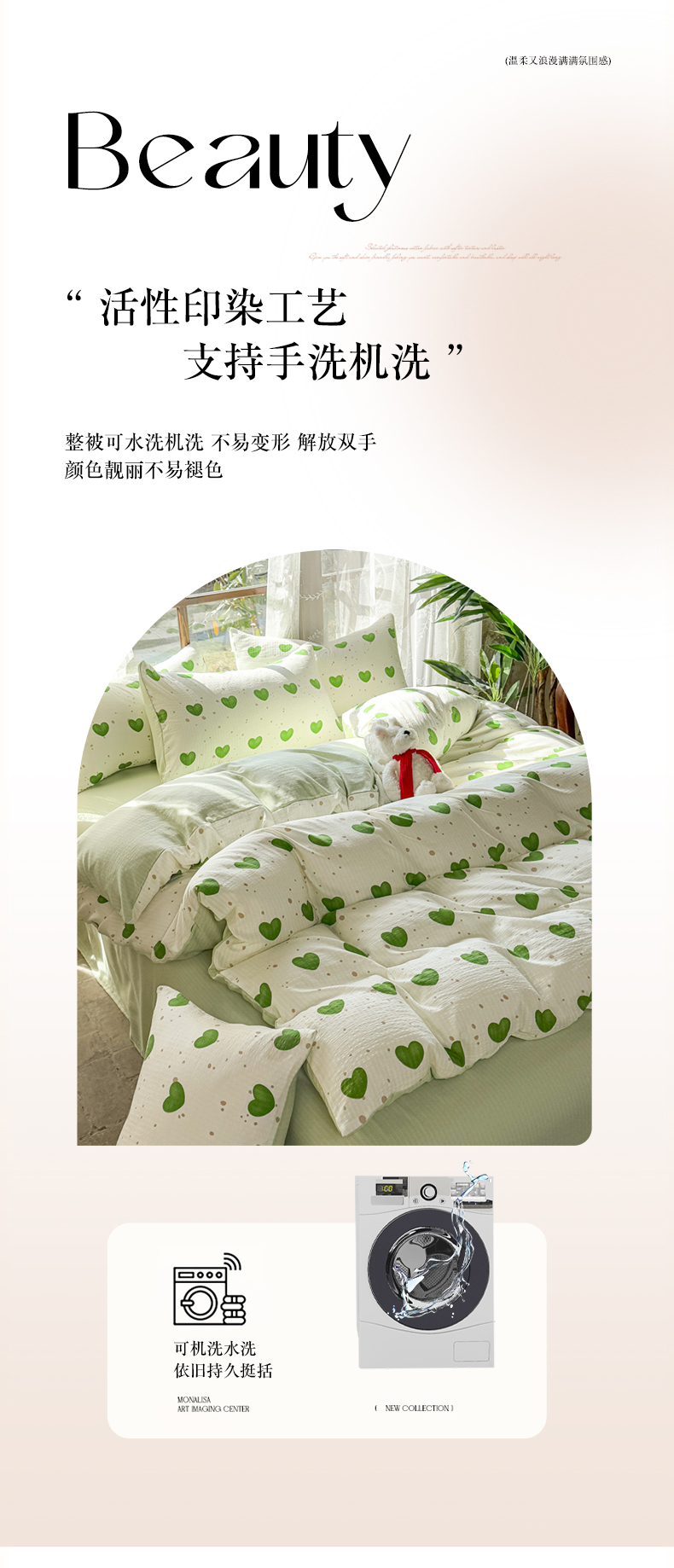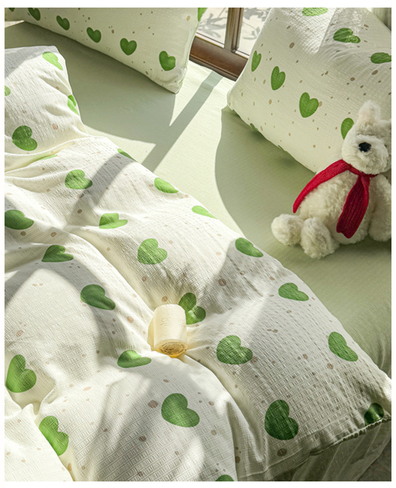 当前位置: 91家纺网 > 商品网购 > 床品套件 > 四件套 > 其它四件套 > 晚爱家纺(原晚安家居) 2025新款A类双层纱有氧提花彩竺棉小竺棉四件套 绿爱心