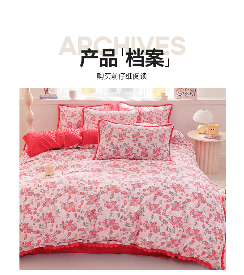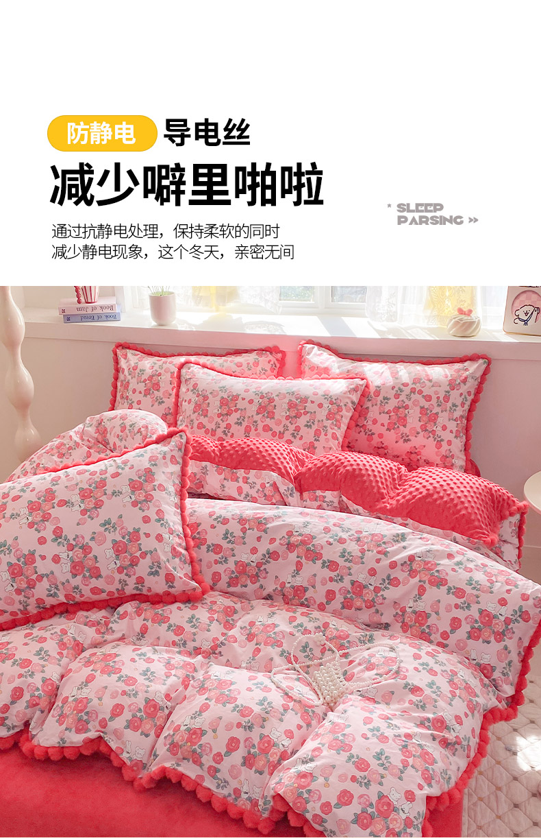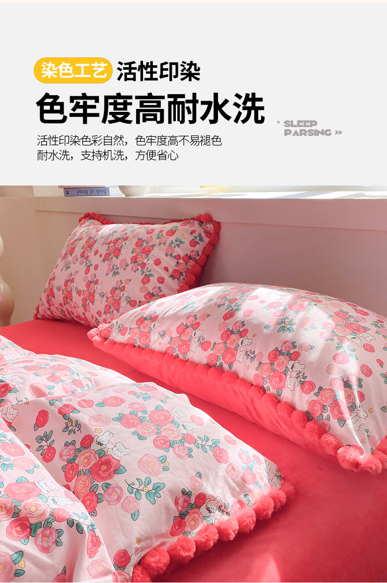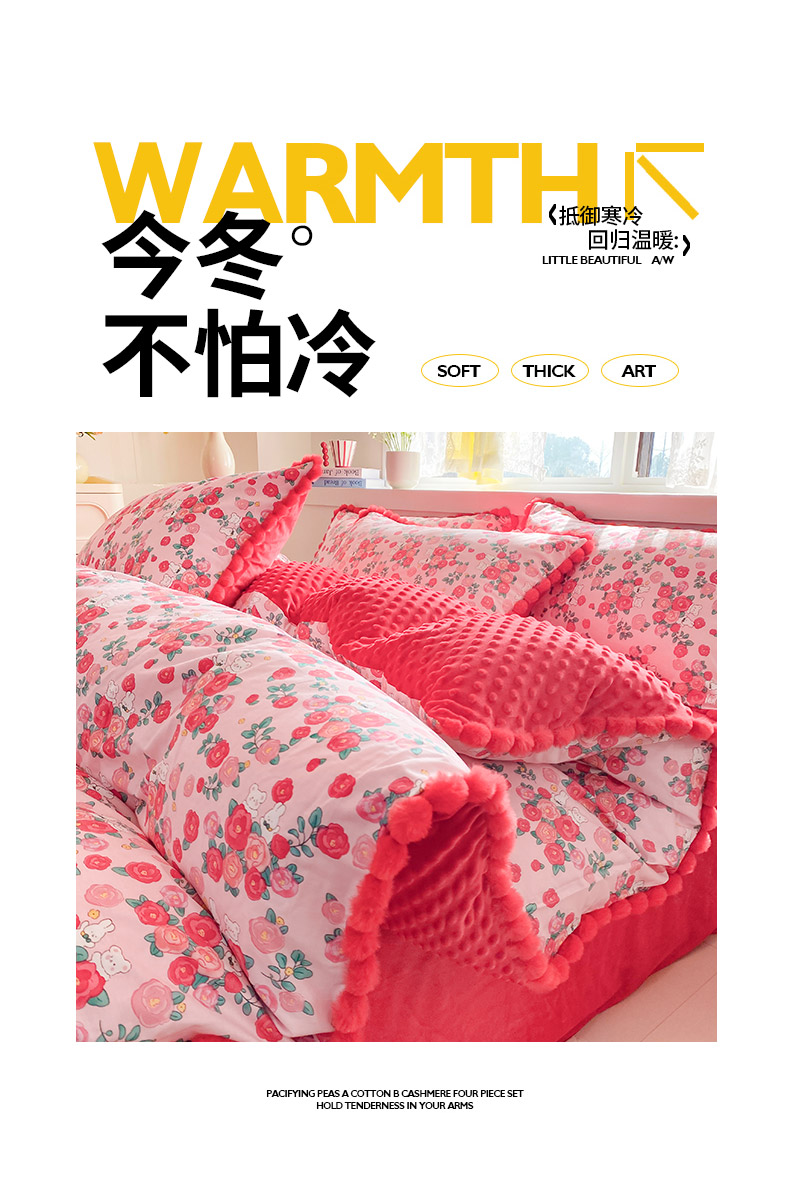 商品名称:千朵 2025新款棉加豆豆绒毛毛球边四件套 花漾甜心