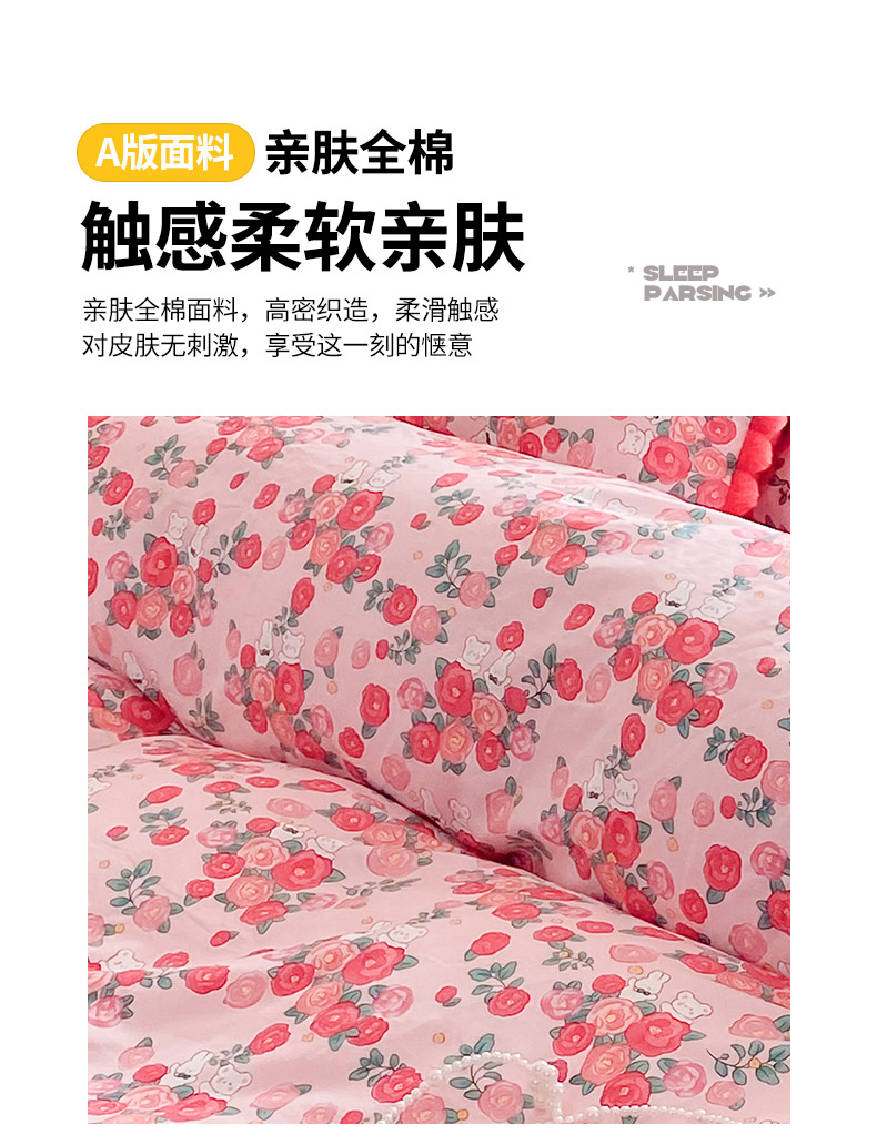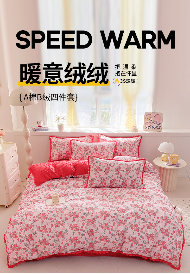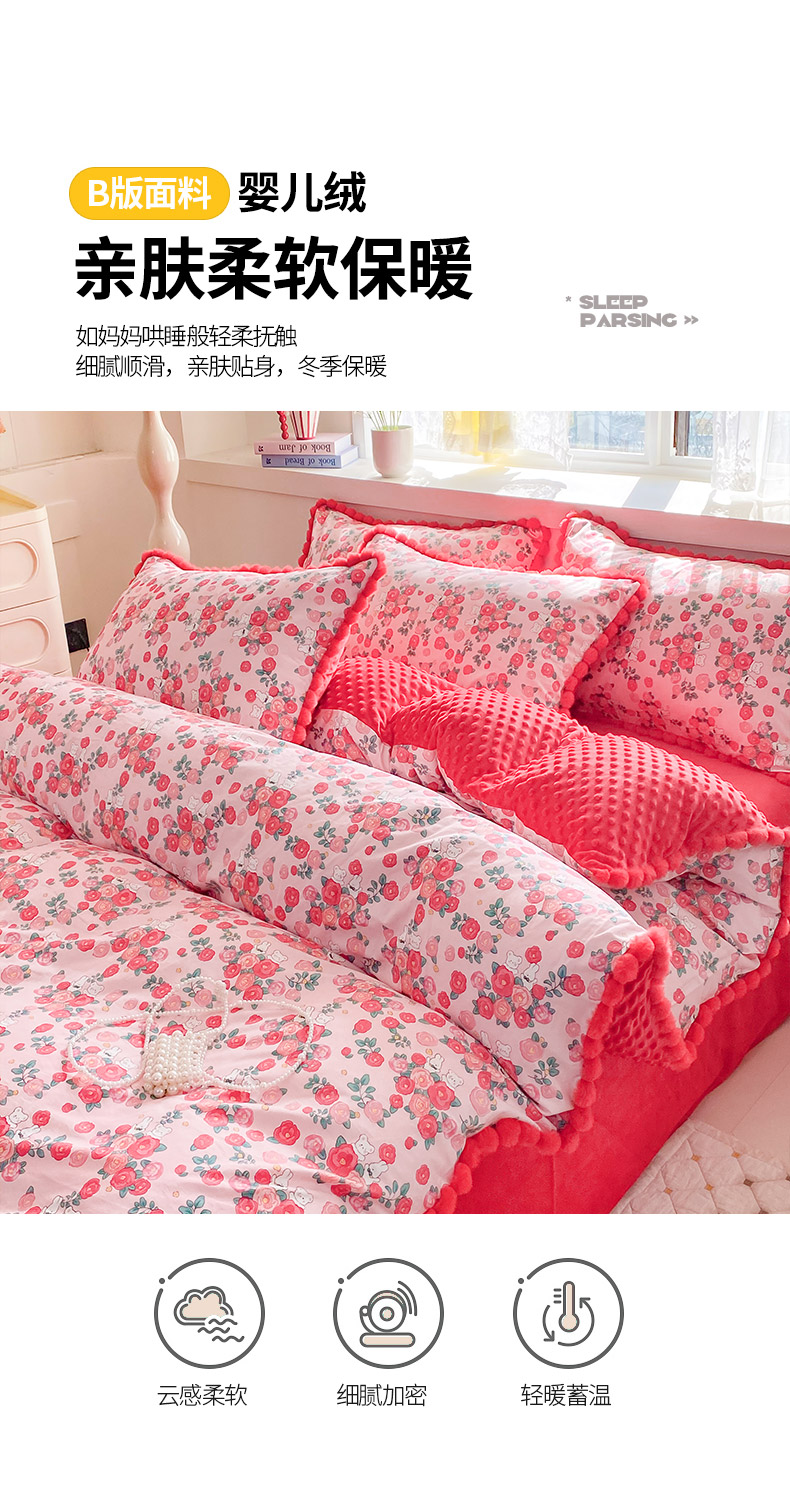 商品名称:千朵 2025新款棉加豆豆绒毛毛球边四件套 花漾甜心