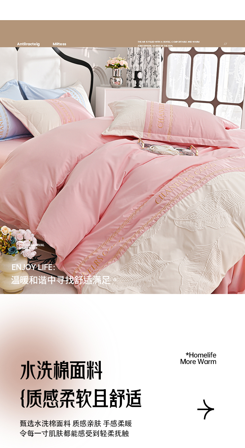 当前位置: 91家纺网 > 商品网购 > 床品套件 > 四件套 > 全棉普通四件套 > (买家秀爆款花色不断货)A类母婴级刺绣磨毛四件套简约磨毛四件套水洗磨毛四件套水洗棉磨毛刺绣四件套纯棉 卡诗-粉叶子