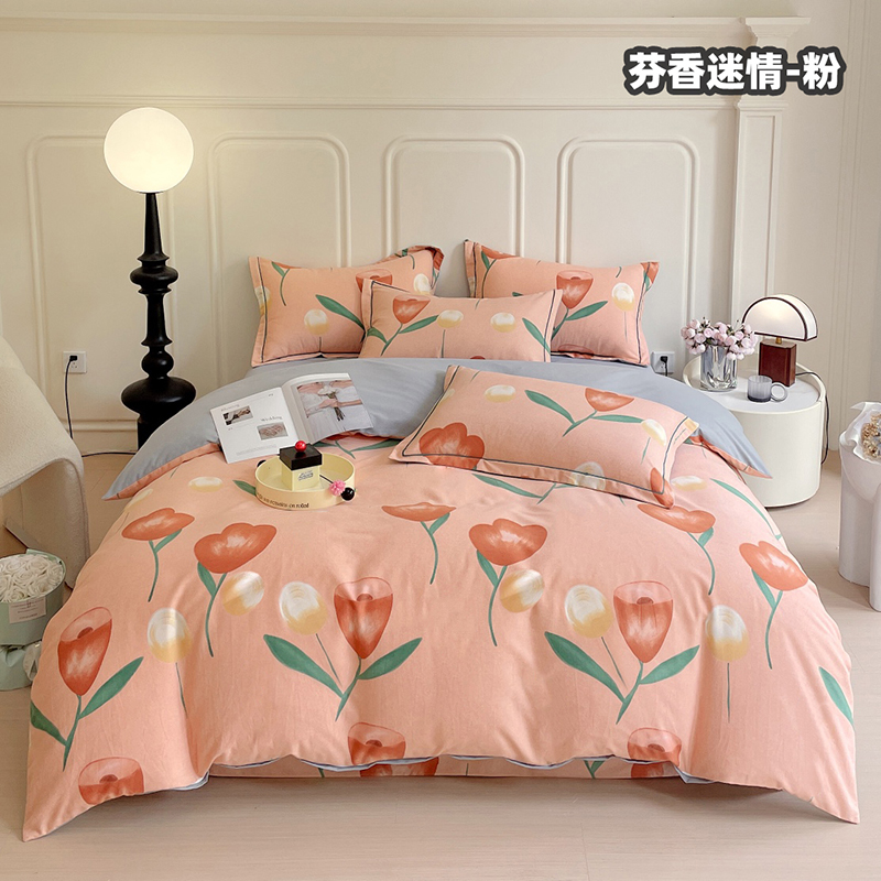 (买家秀 爆款花色不断货)A类母婴级纯棉磨毛四件套简约纯棉全棉磨毛四件套纯棉四件套全棉四件套花卉磨毛 芬香迷情-粉