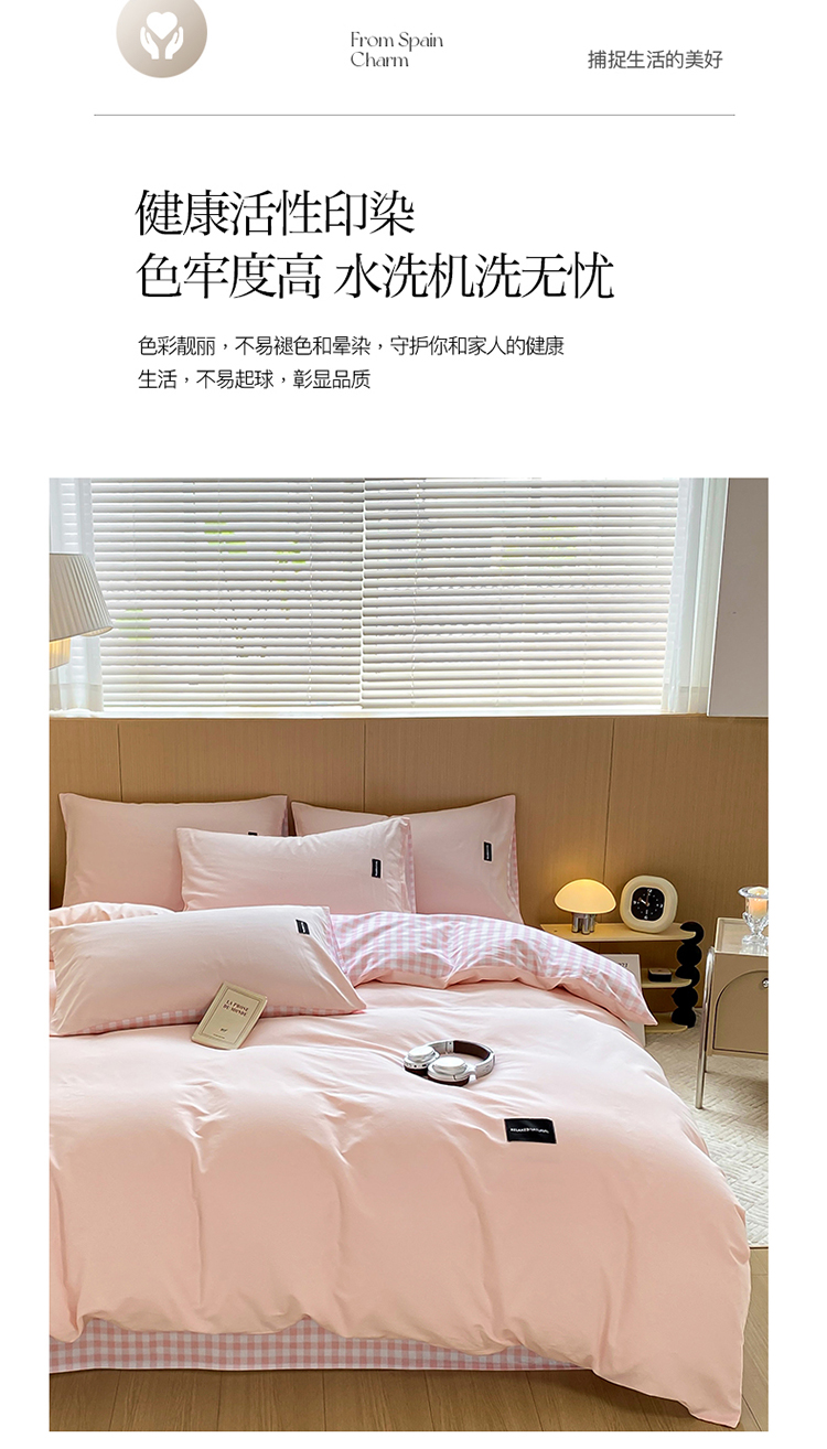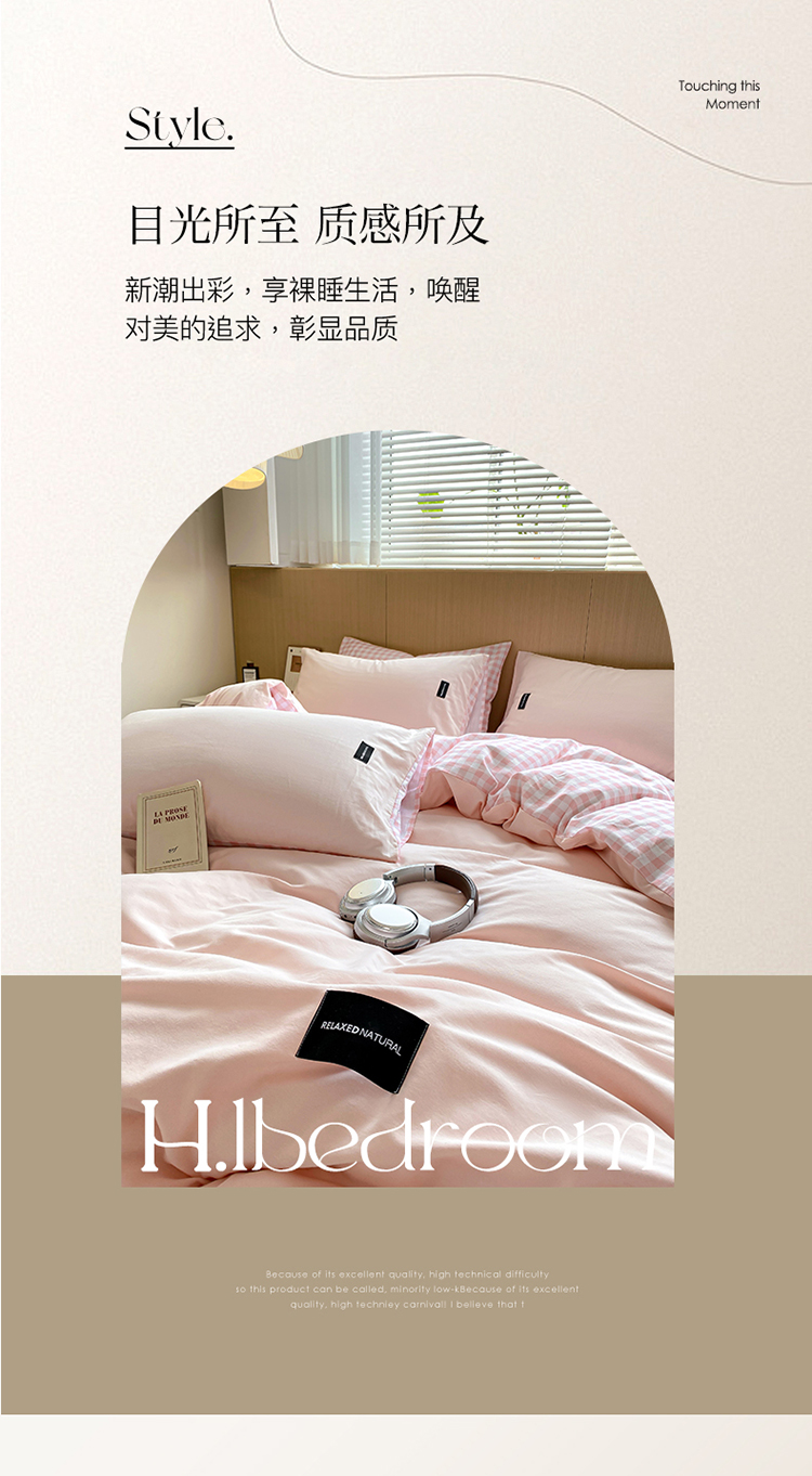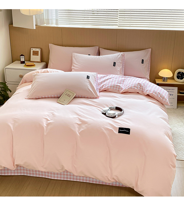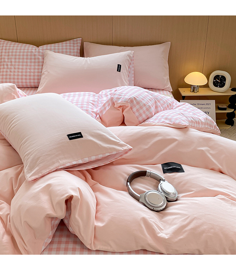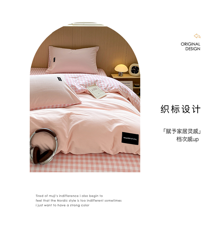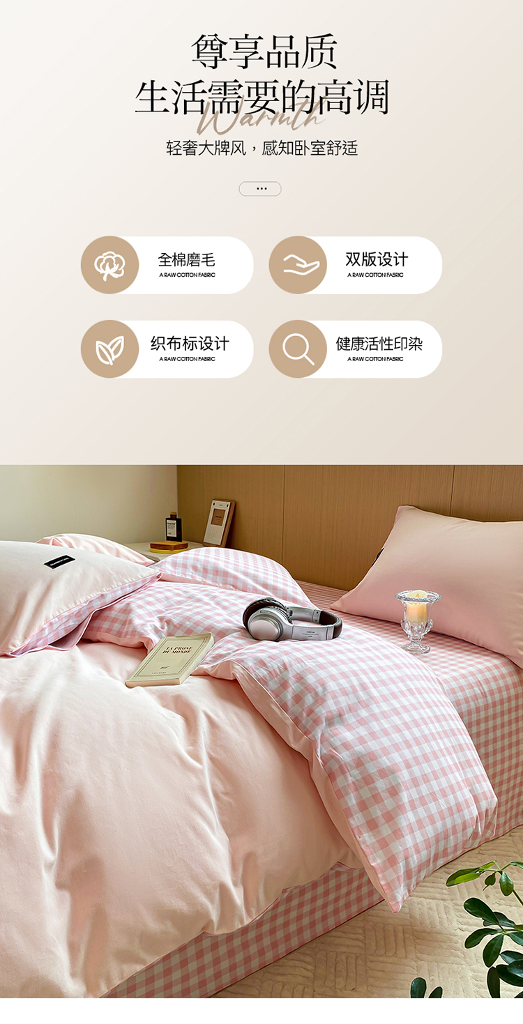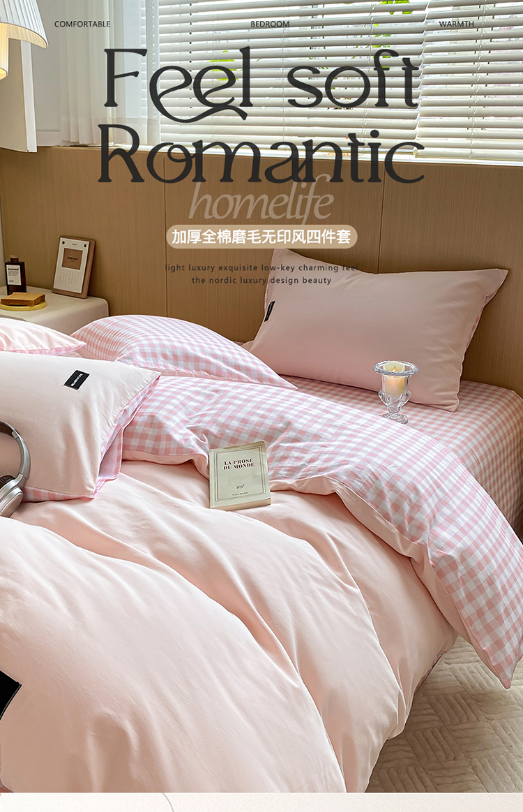 当前位置: 91家纺网 > 商品网购 > 床品套件 > 四件套 > 全棉普通四件套 > (买家秀 爆款花色不断货)A类母婴级纯棉磨毛四件套简约纯棉全棉磨毛四件套纯棉全棉四件套无印风-场景2 简兮-粉
