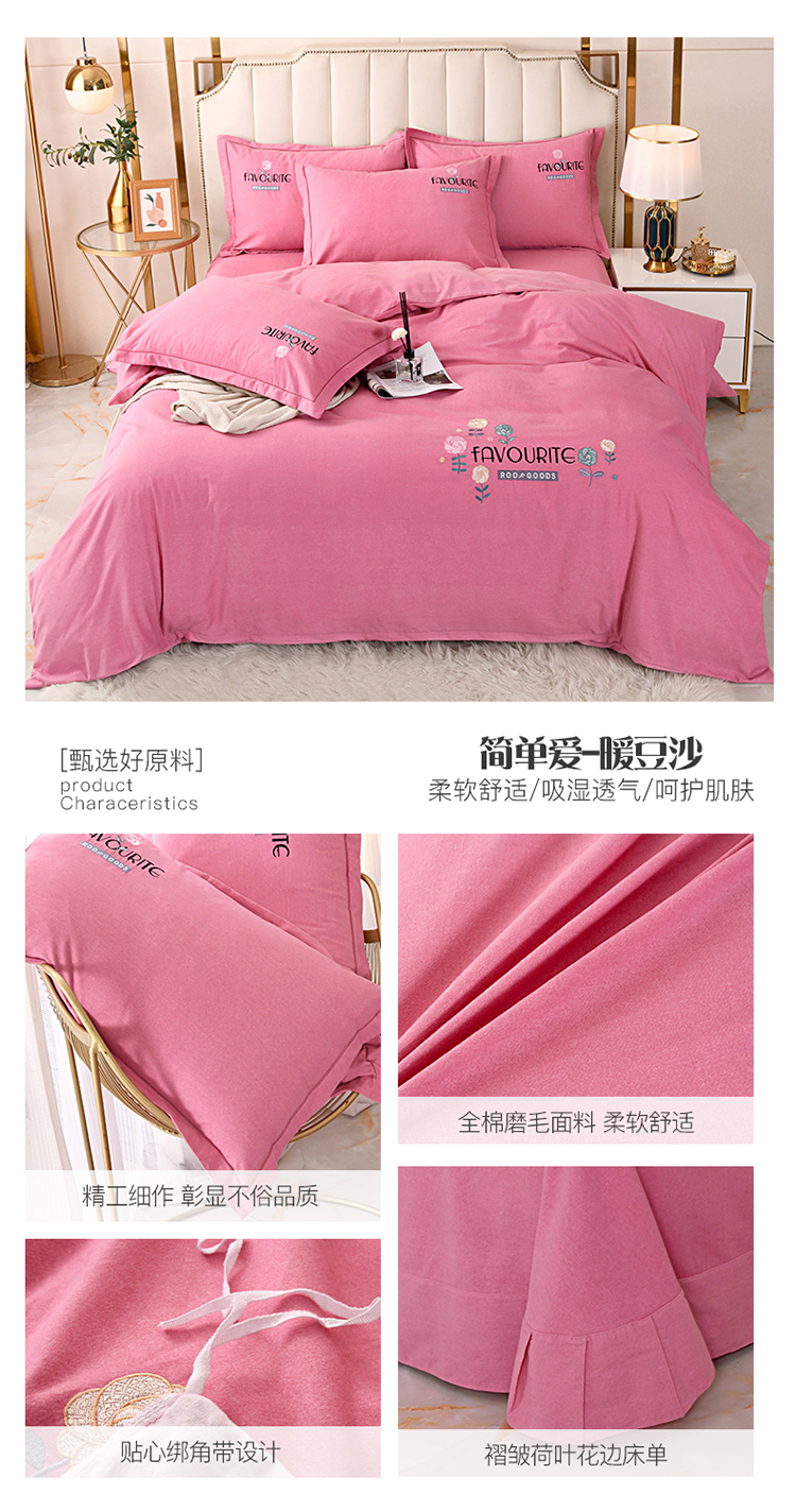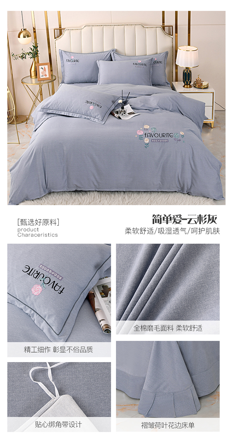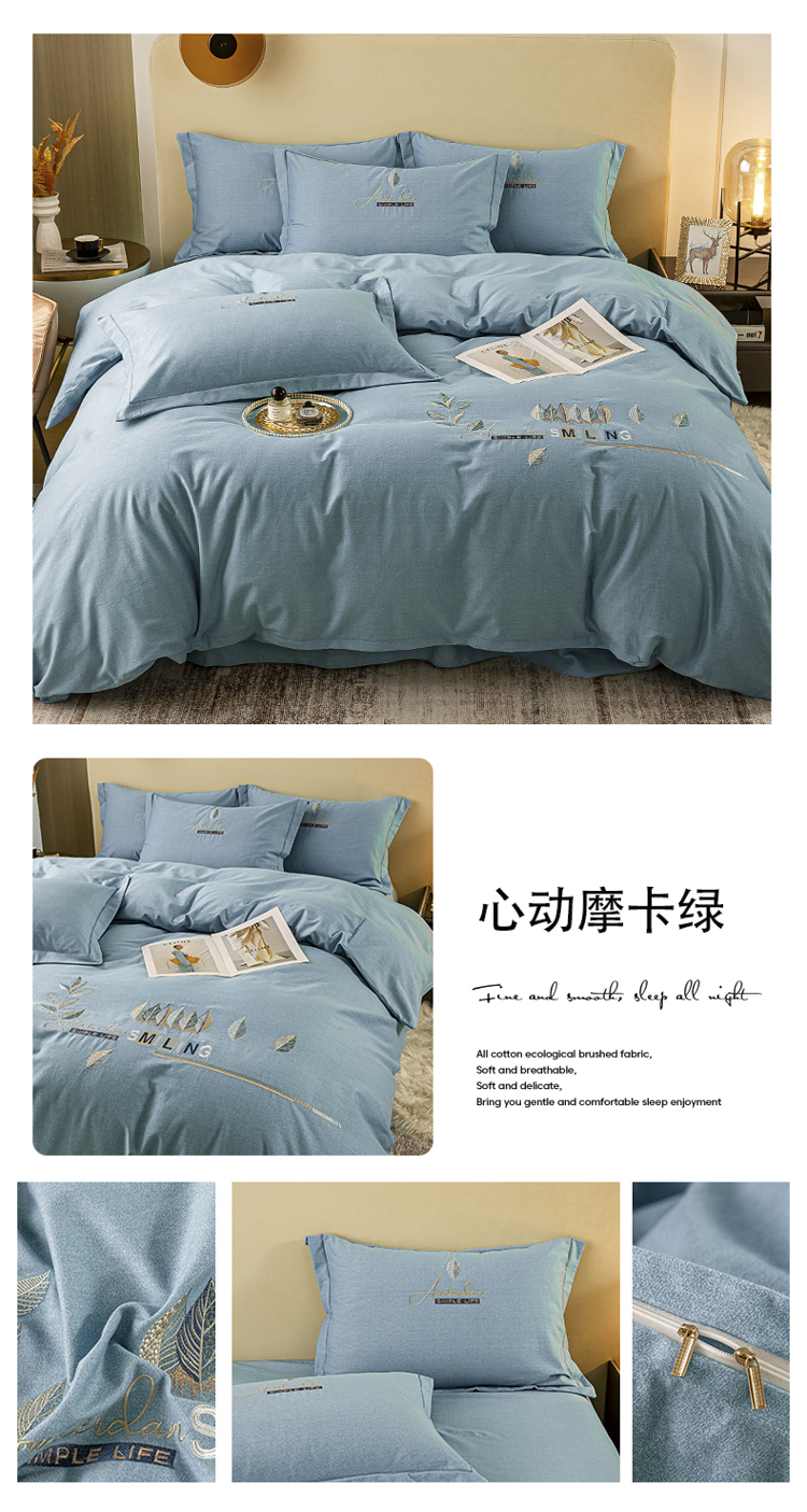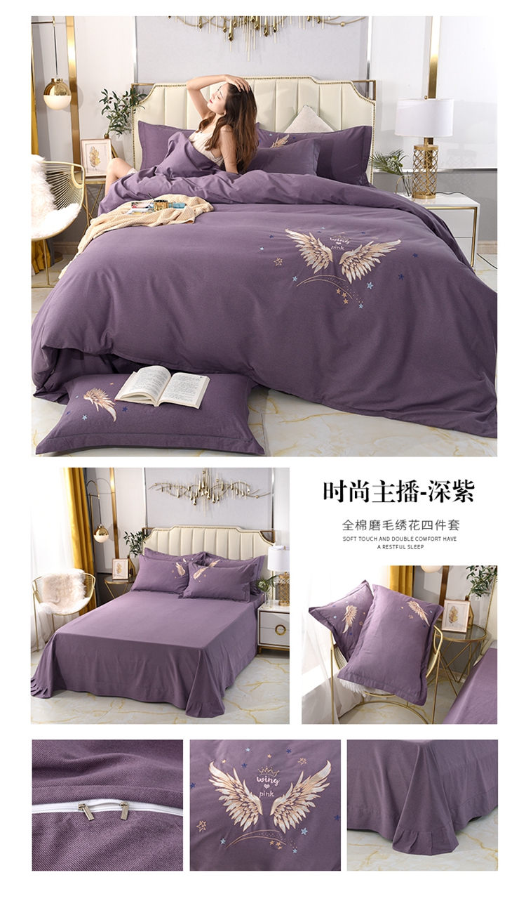 (总)(买家秀 爆款花色 不断货)A类母婴级纯棉磨毛四件套全棉磨毛三件套纯棉四件套全棉四件套磨毛刺绣四件套