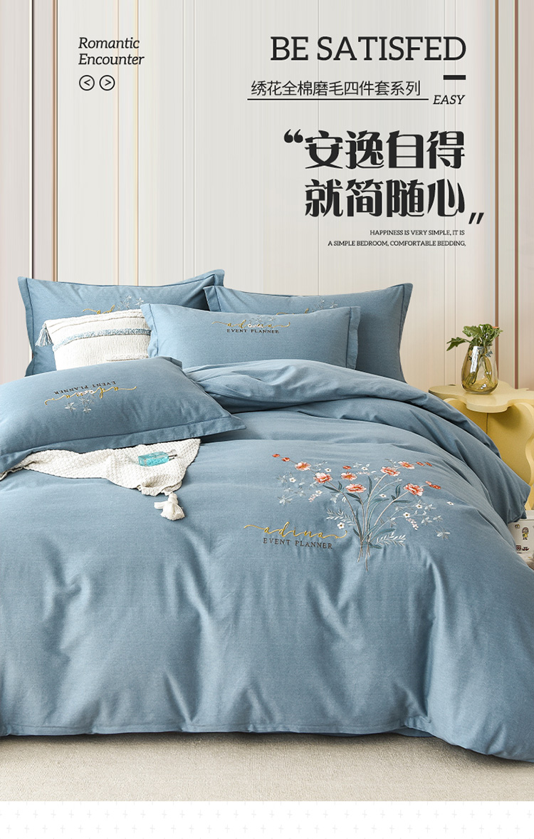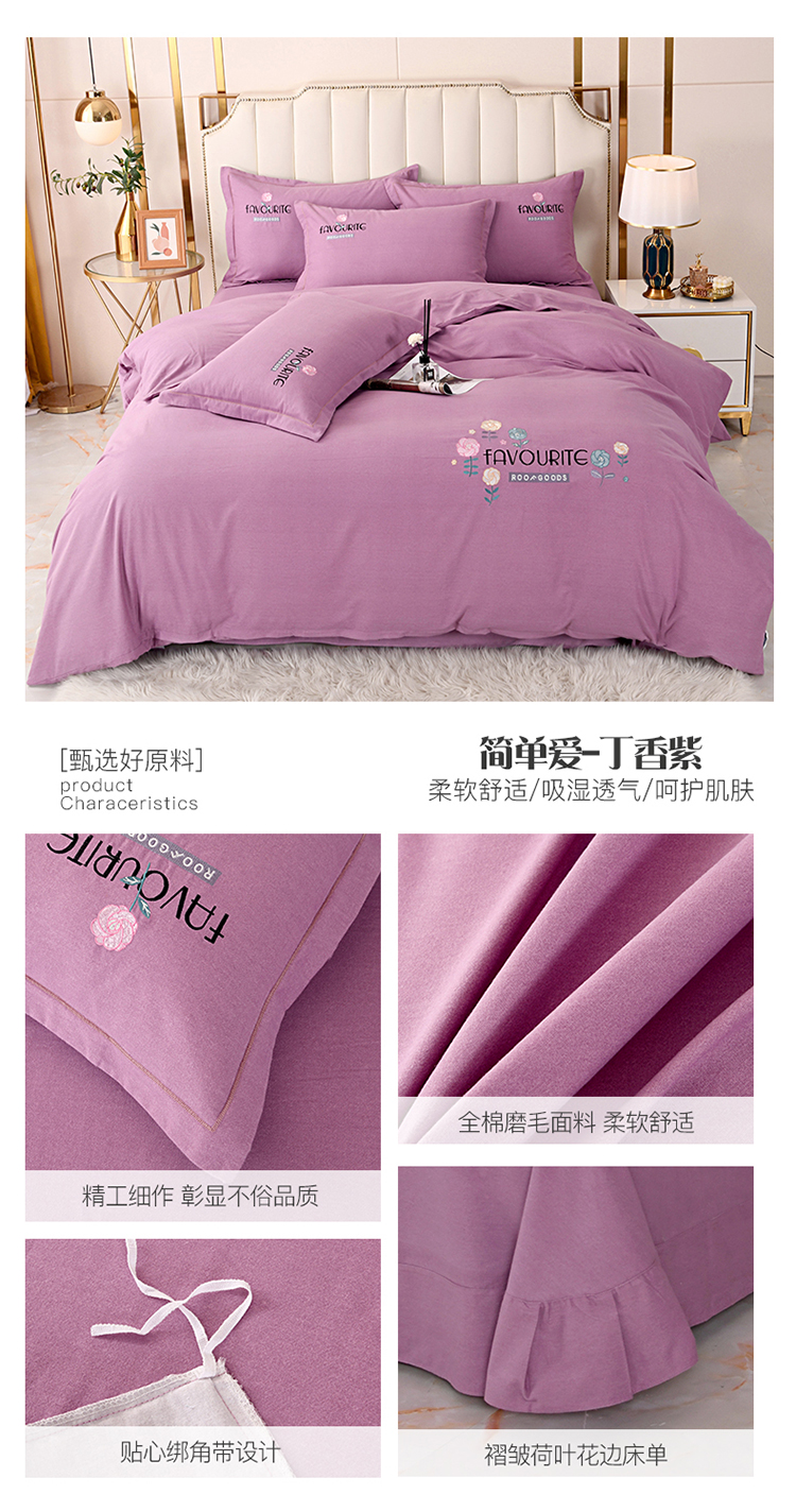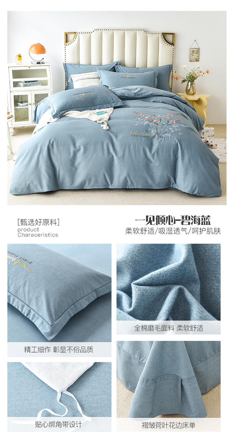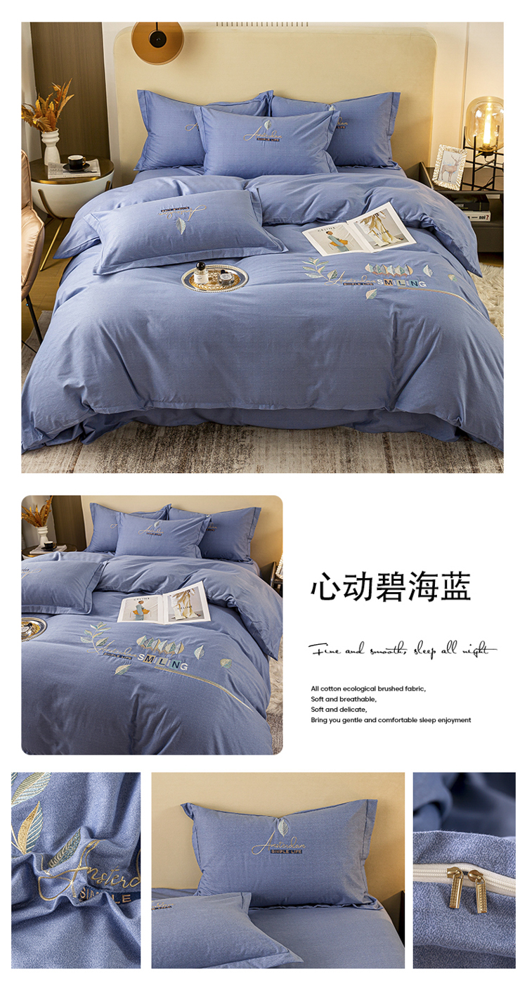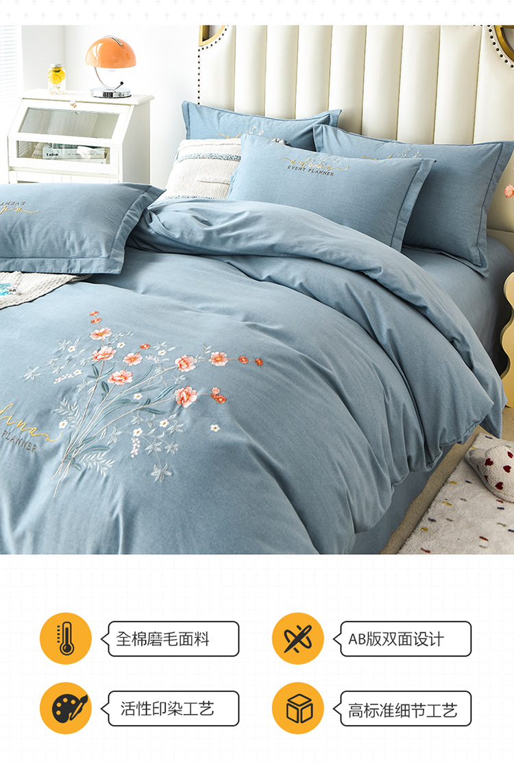 (总)(买家秀 爆款花色 不断货)A类母婴级纯棉磨毛四件套全棉磨毛三件套纯棉四件套全棉四件套磨毛刺绣四件套