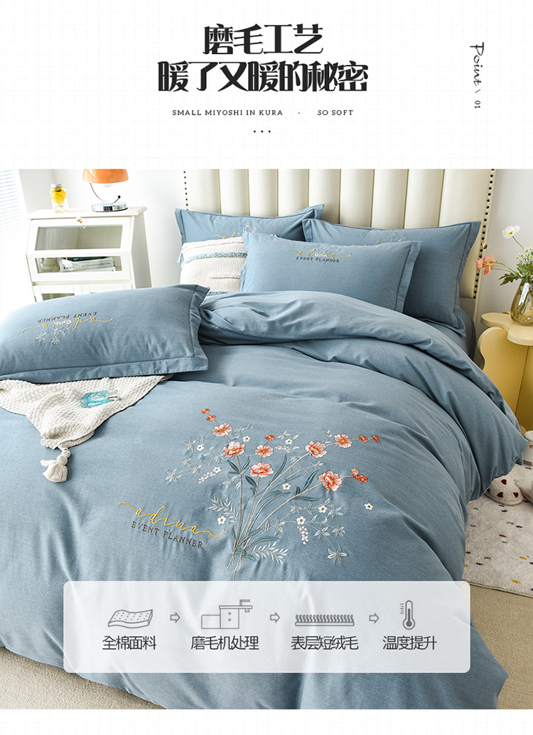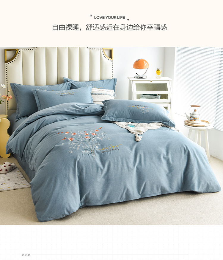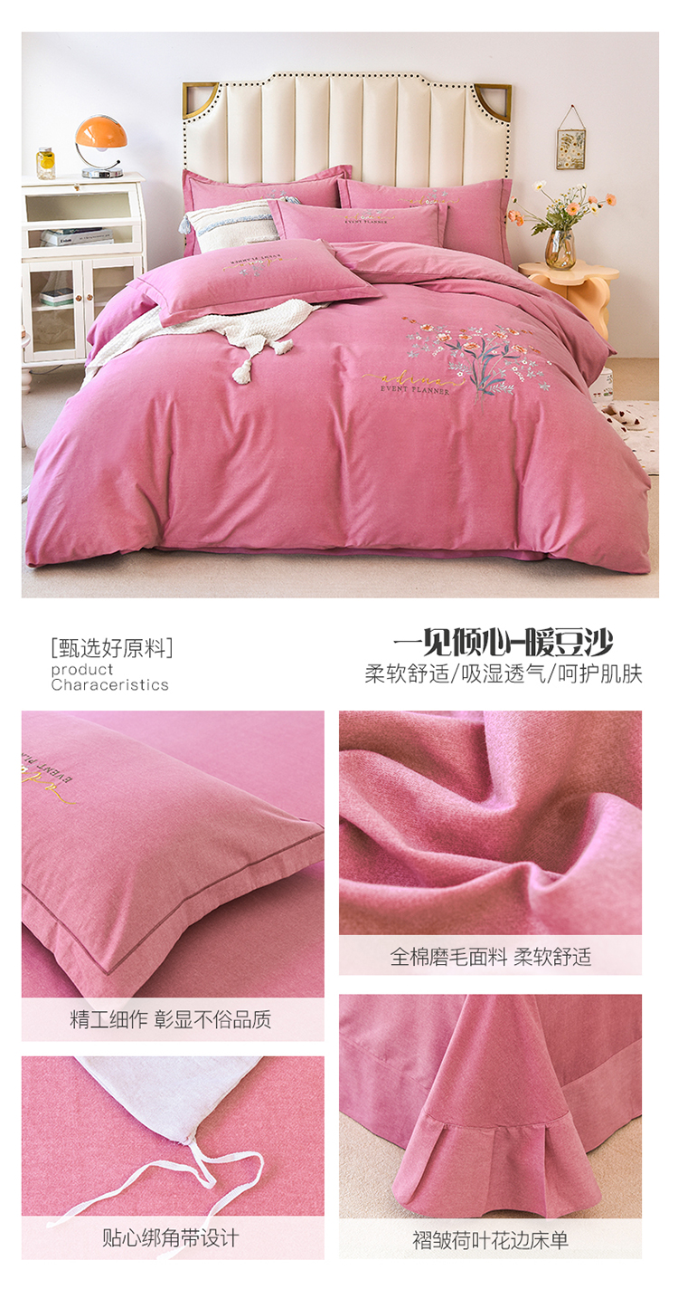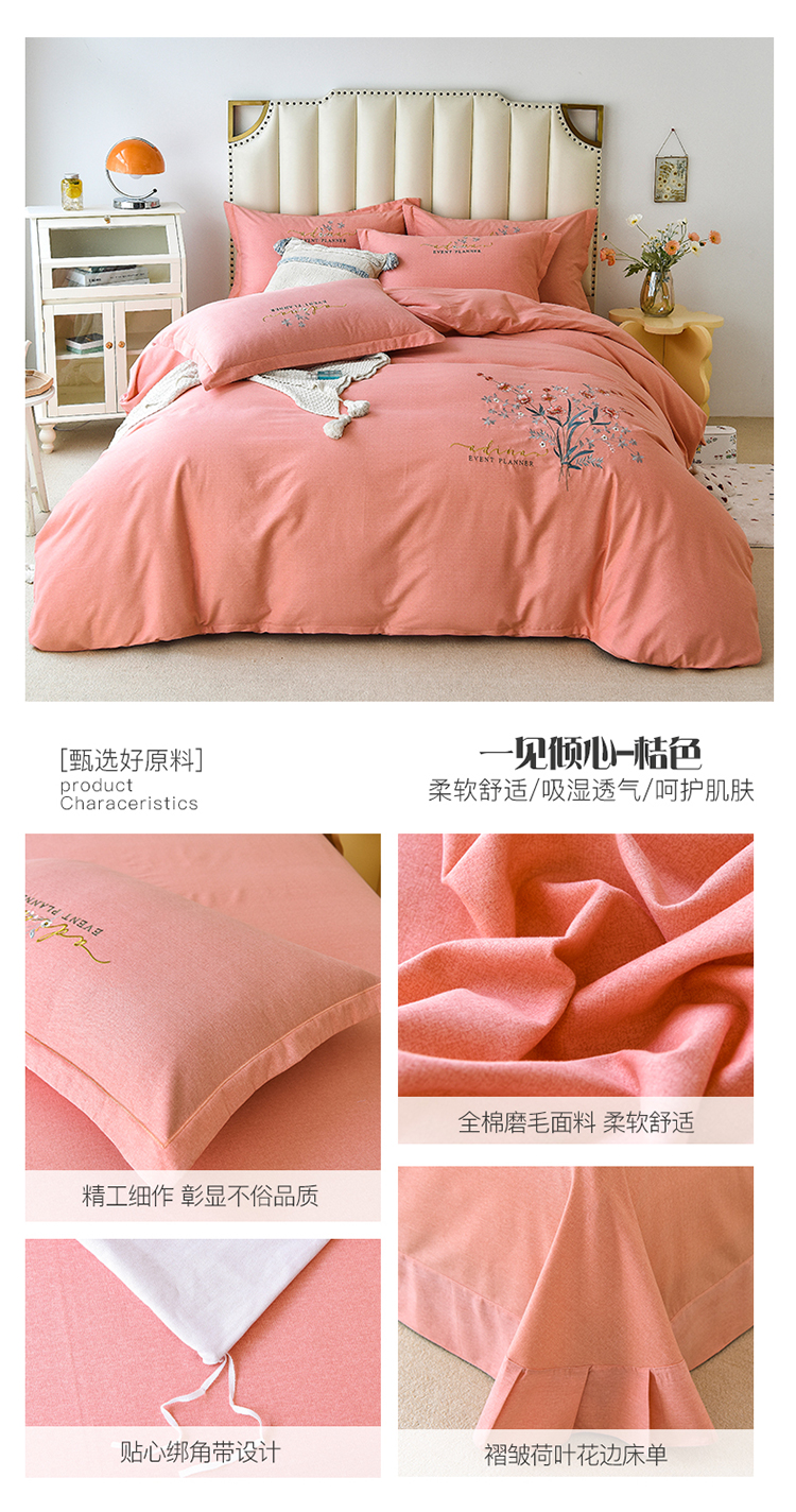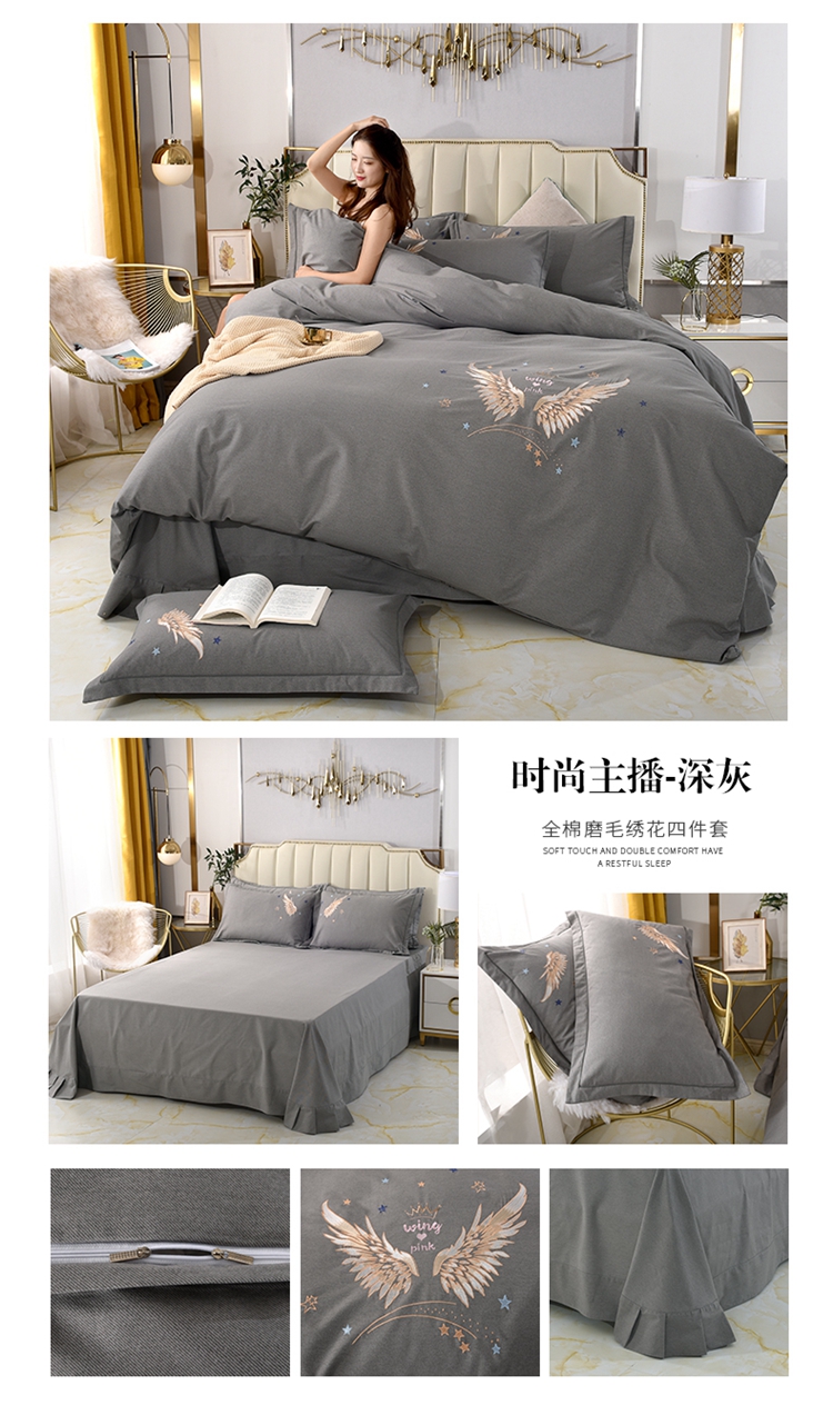 (总)(买家秀 爆款花色 不断货)A类母婴级纯棉磨毛四件套全棉磨毛三件套纯棉四件套全棉四件套磨毛刺绣四件套