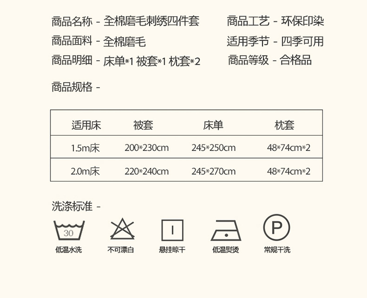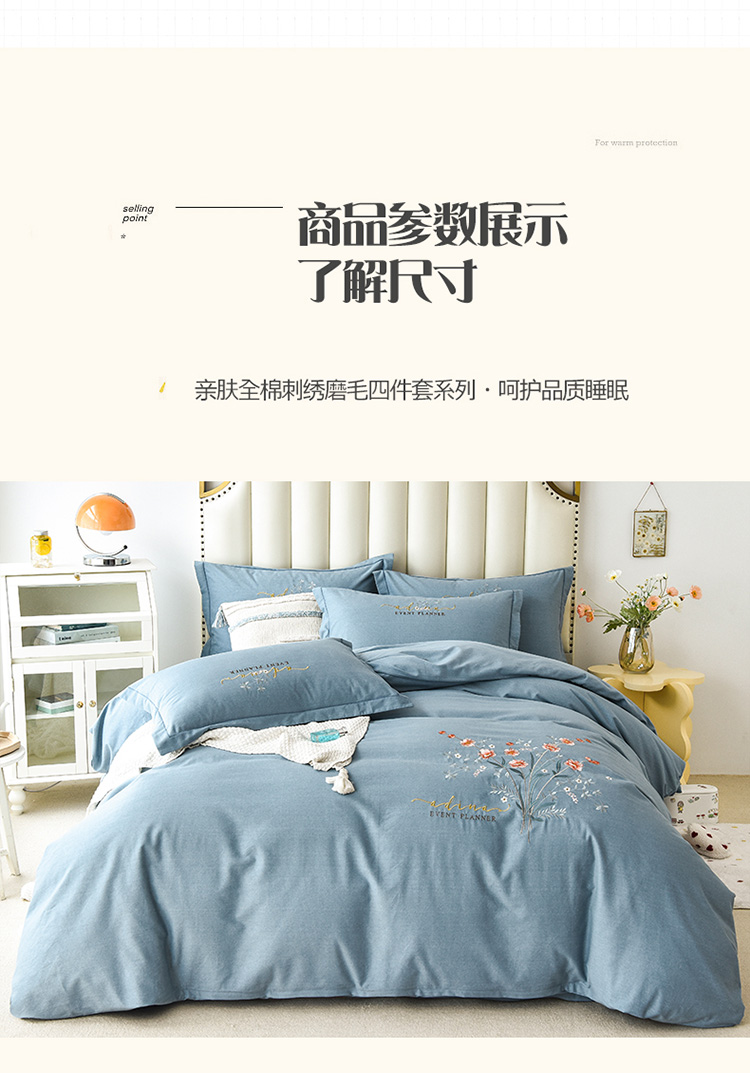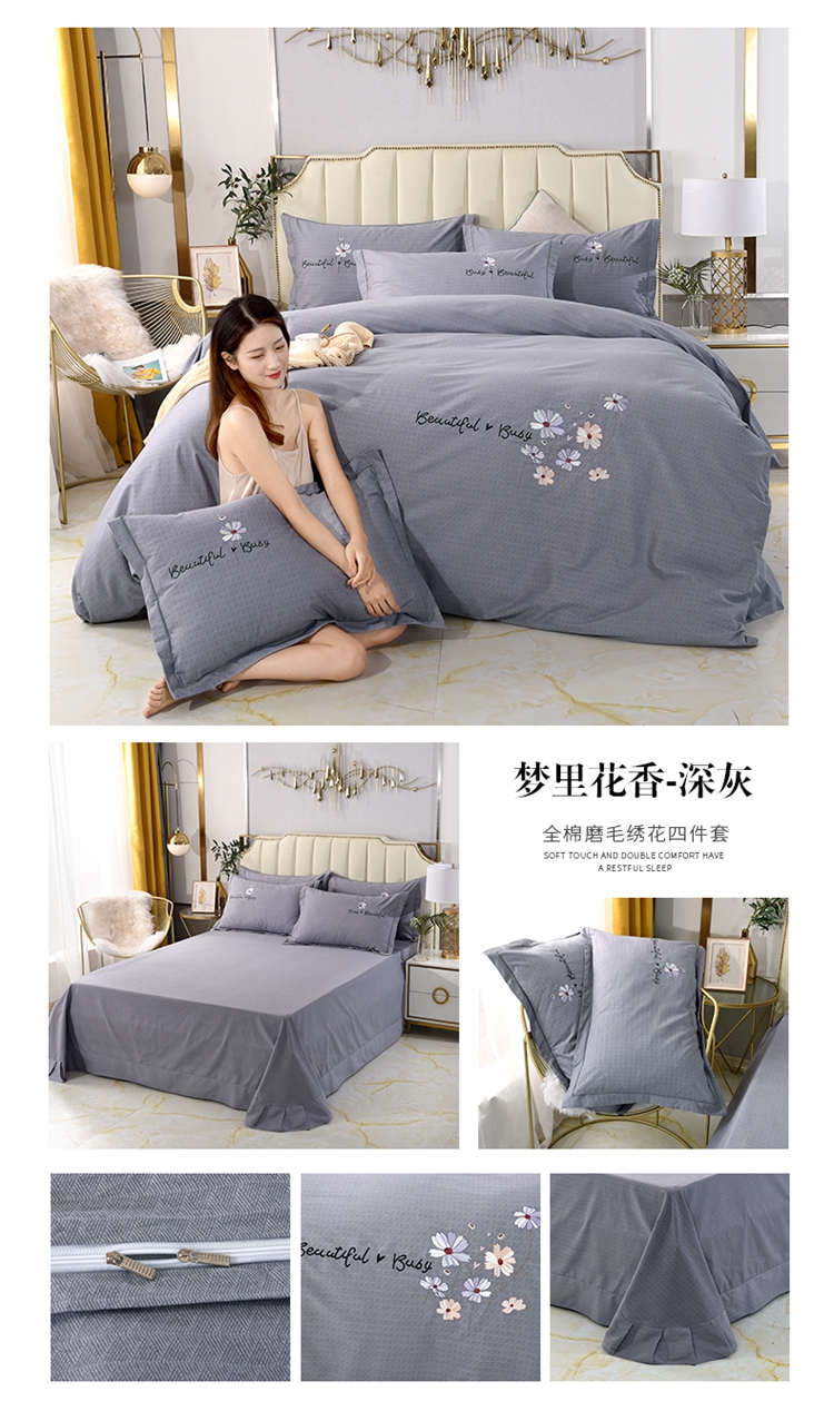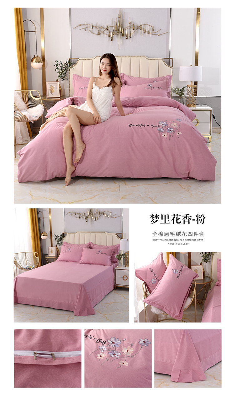 商品名称:(总)(买家秀 爆款花色 不断货)A类母婴级纯棉磨毛四件套全棉磨毛三件套纯棉四件套全棉四件套磨毛刺绣四件套