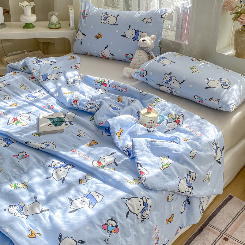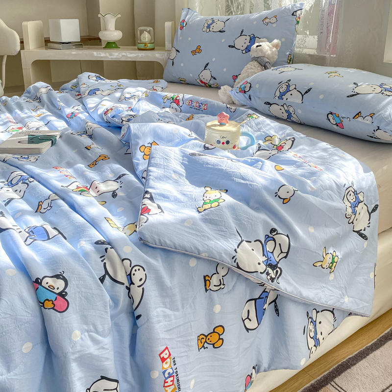 • 91家纺网 家纺一手货源 找家纺 尊妙被业 2025新款三丽鸥水洗棉夏被 淘气帕恰狗-蓝