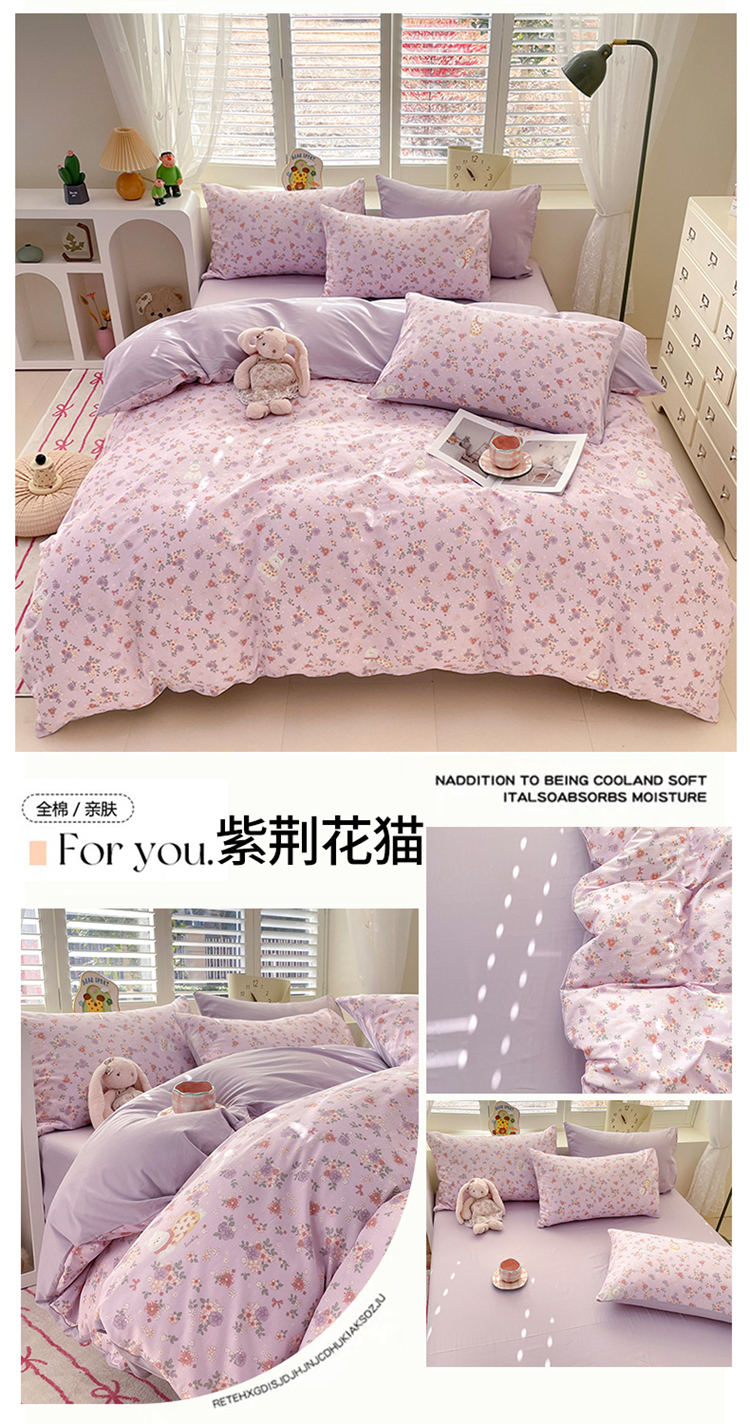 • 91家纺网 家纺一手货源 找家纺 丫丫家纺   2025全棉13070单被套印花小清新卡通碎花纯棉单品被套枕套(有预缩售后无忧 免费提供买家秀) 紫荆花