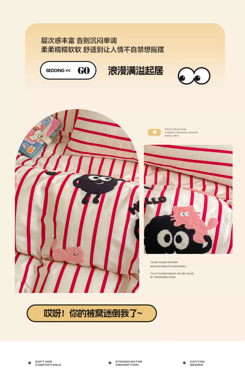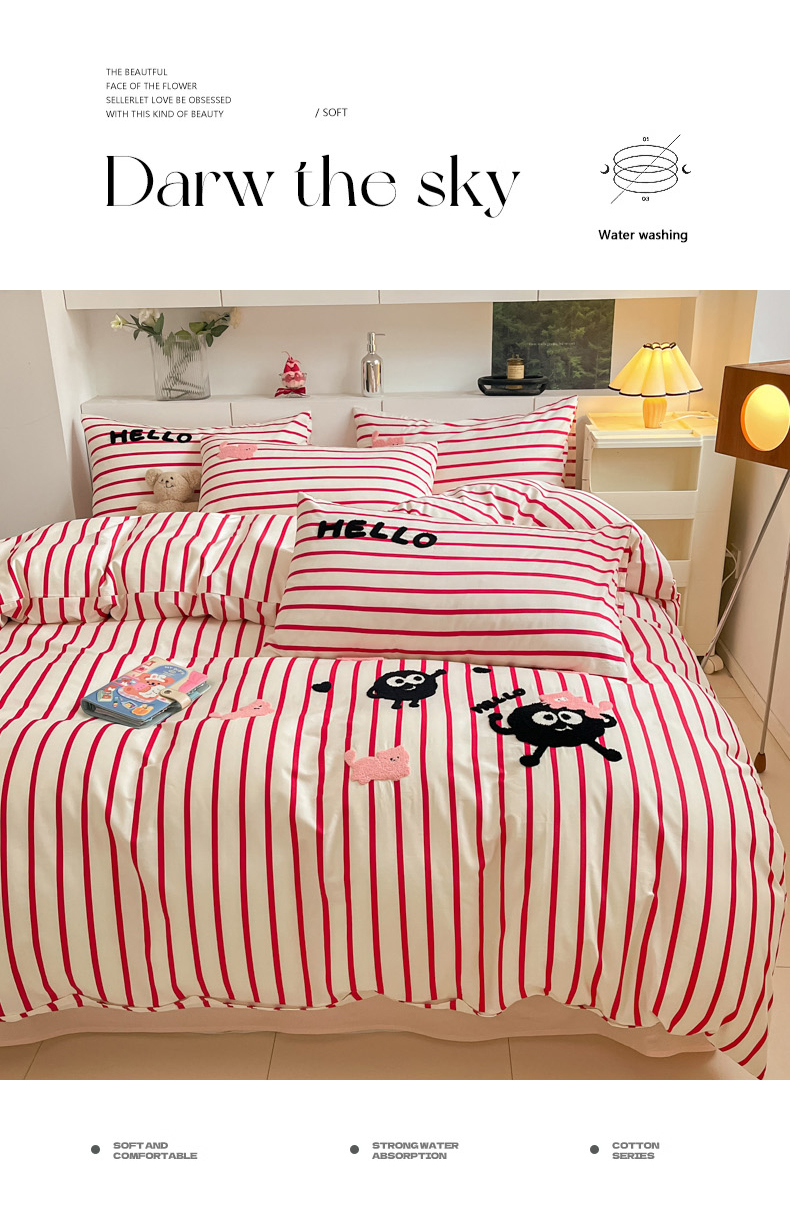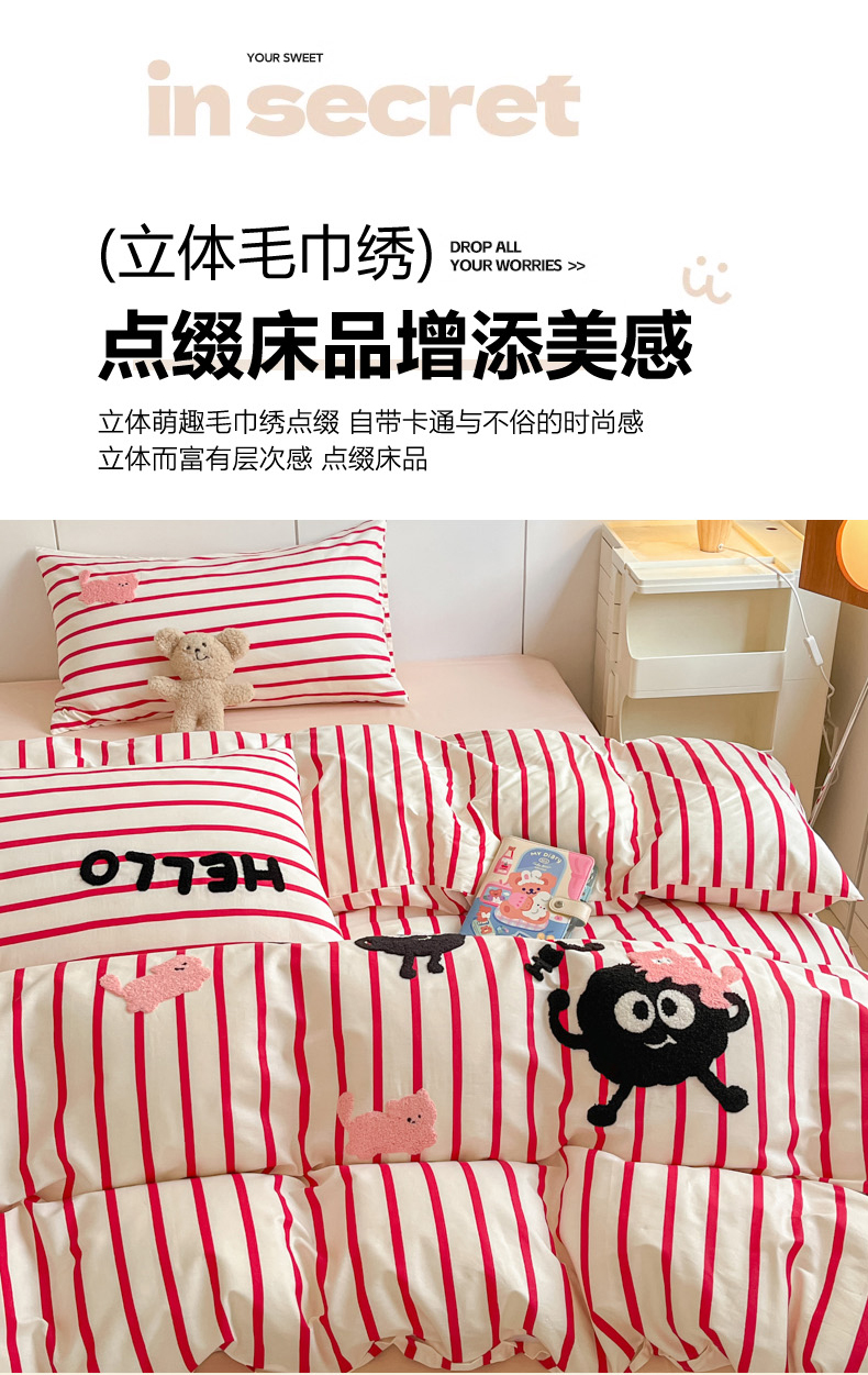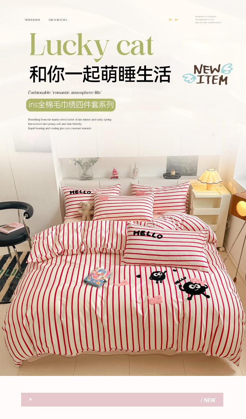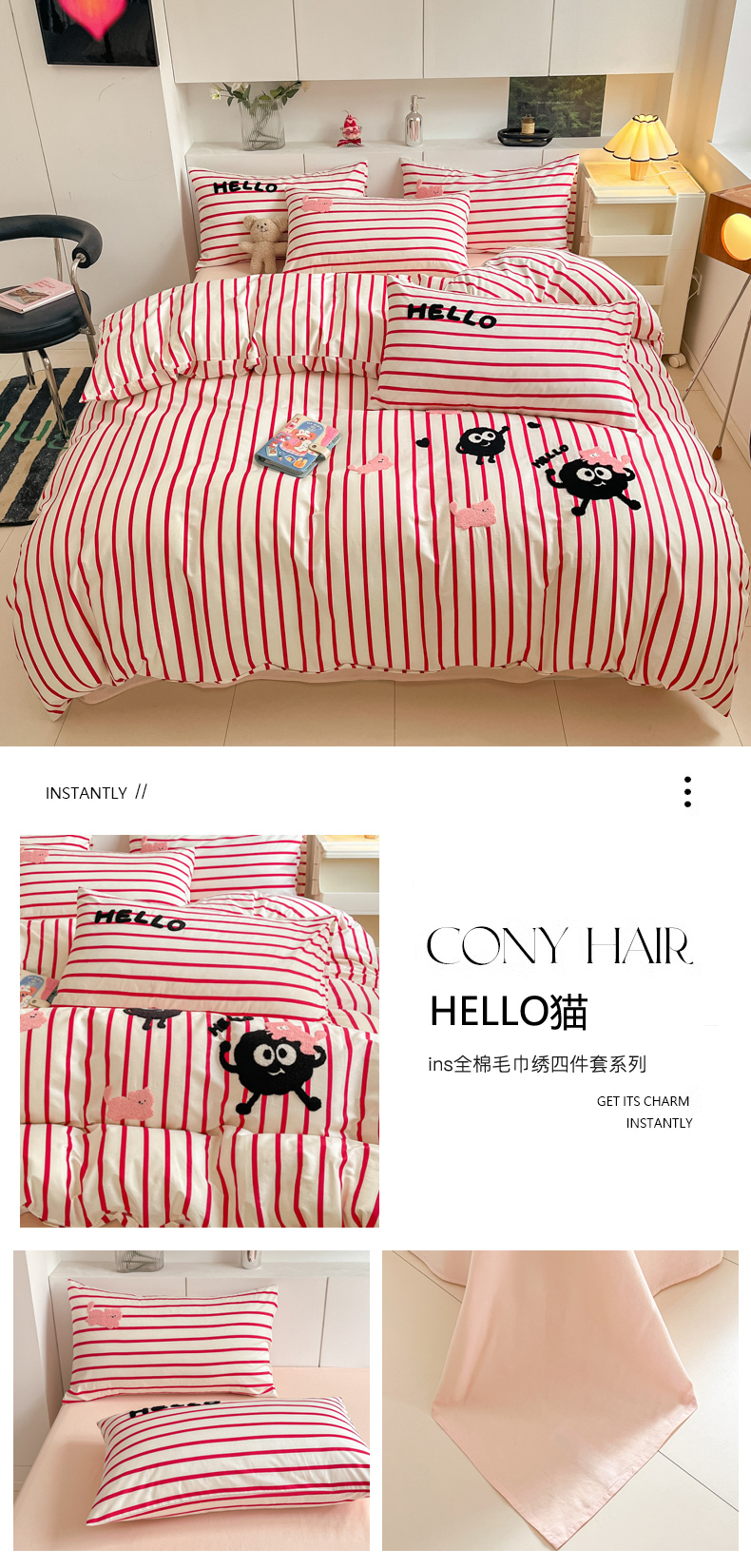 商品名称:寐居家纺 2025新款全棉13070毛巾绣四件套 HELLO猫