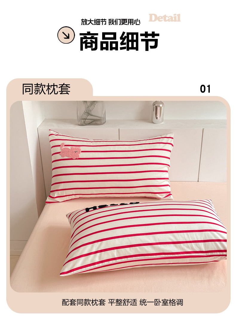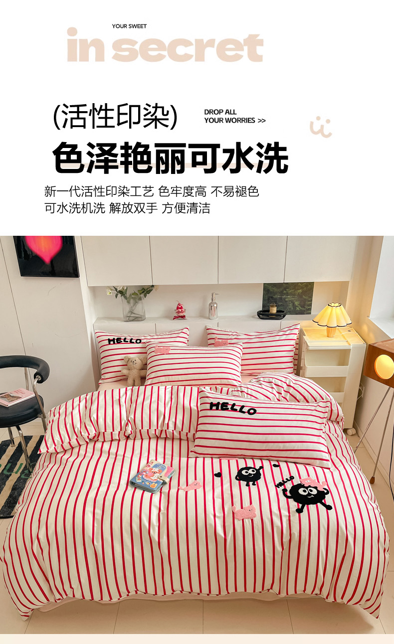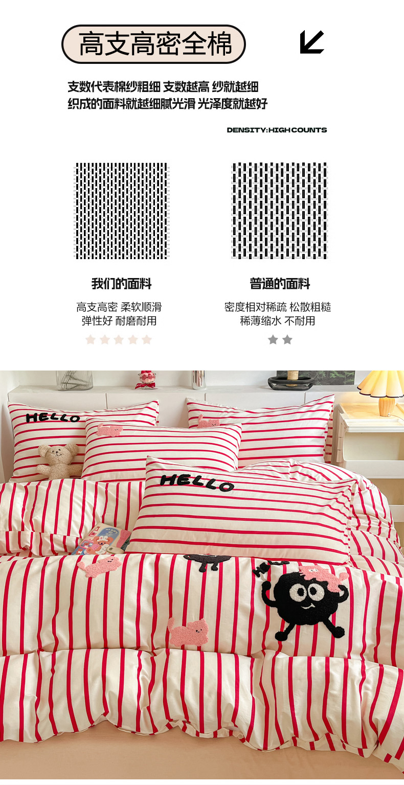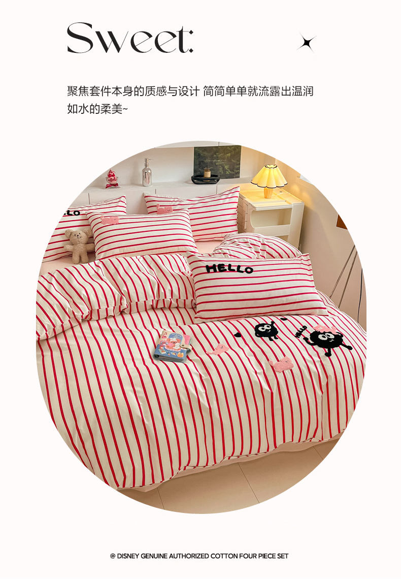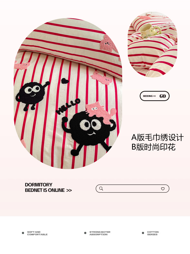 商品名称:寐居家纺 2025新款全棉13070毛巾绣四件套 HELLO猫