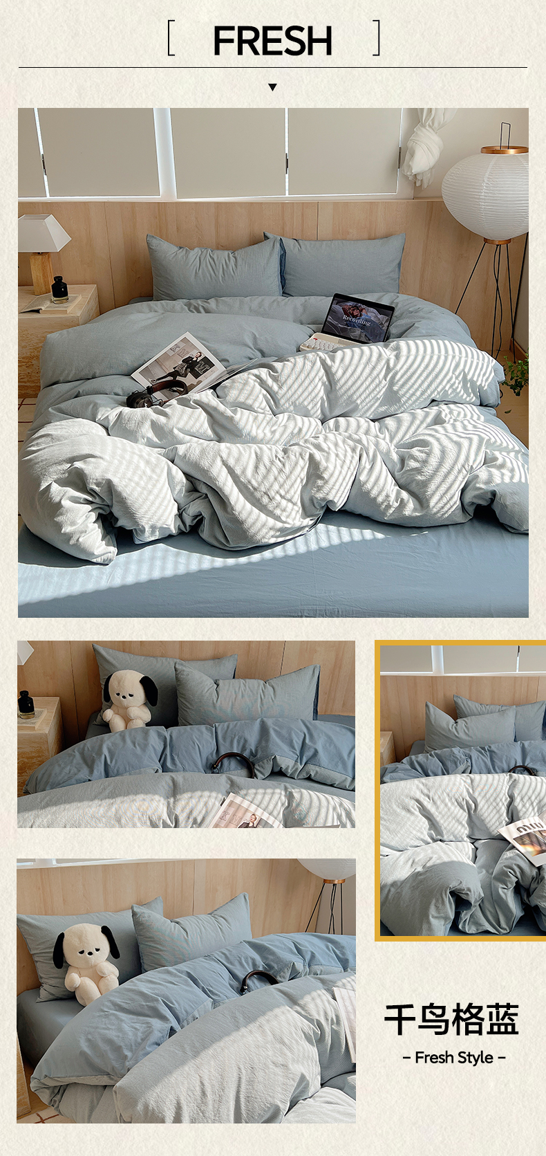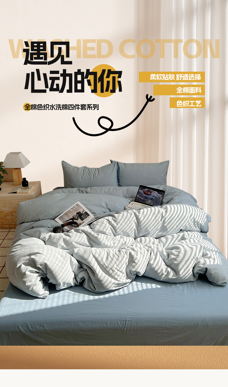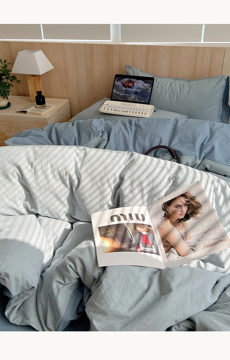 当前位置: 91家纺网 > 商品网购 > 床品套件 > 四件套 > 全棉普通四件套 > 雅居纺家纺 2025全棉色织水洗棉四件套 千鸟格蓝