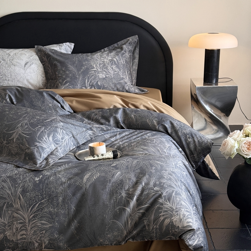 鹿班家居 2025年春夏款100S长绒棉数码印花系列四件套—挪威森林 挪威森林-深棕