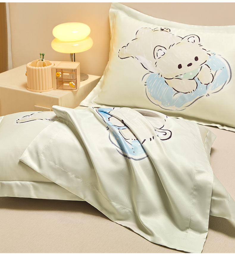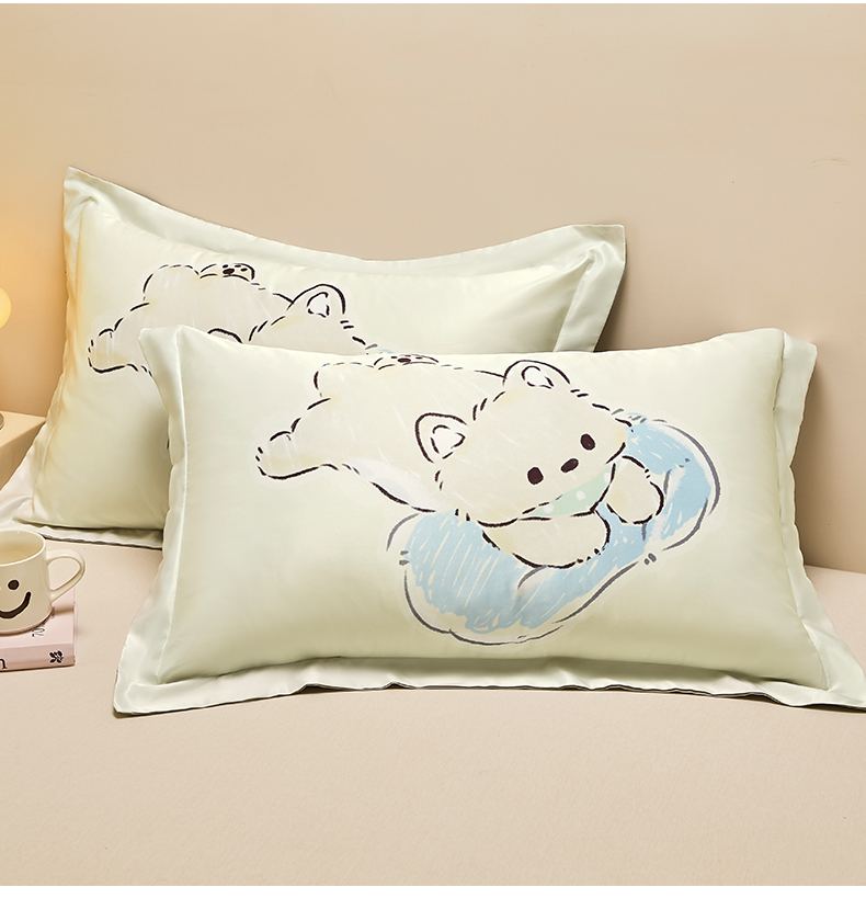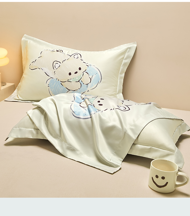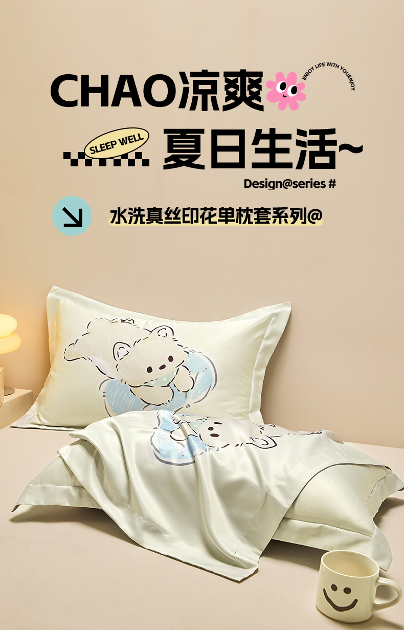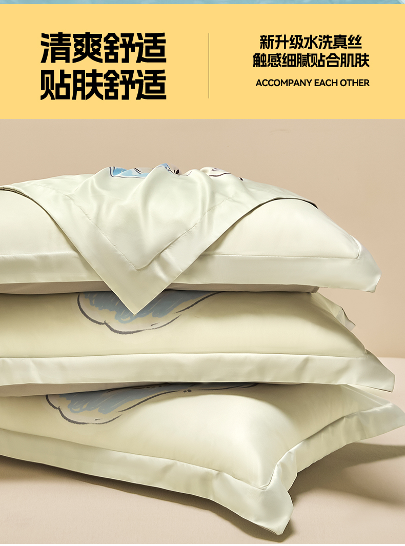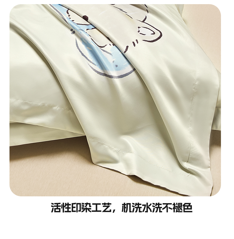笙意家纺 2025新款水洗真丝数码印花卡通枕套 萌猫