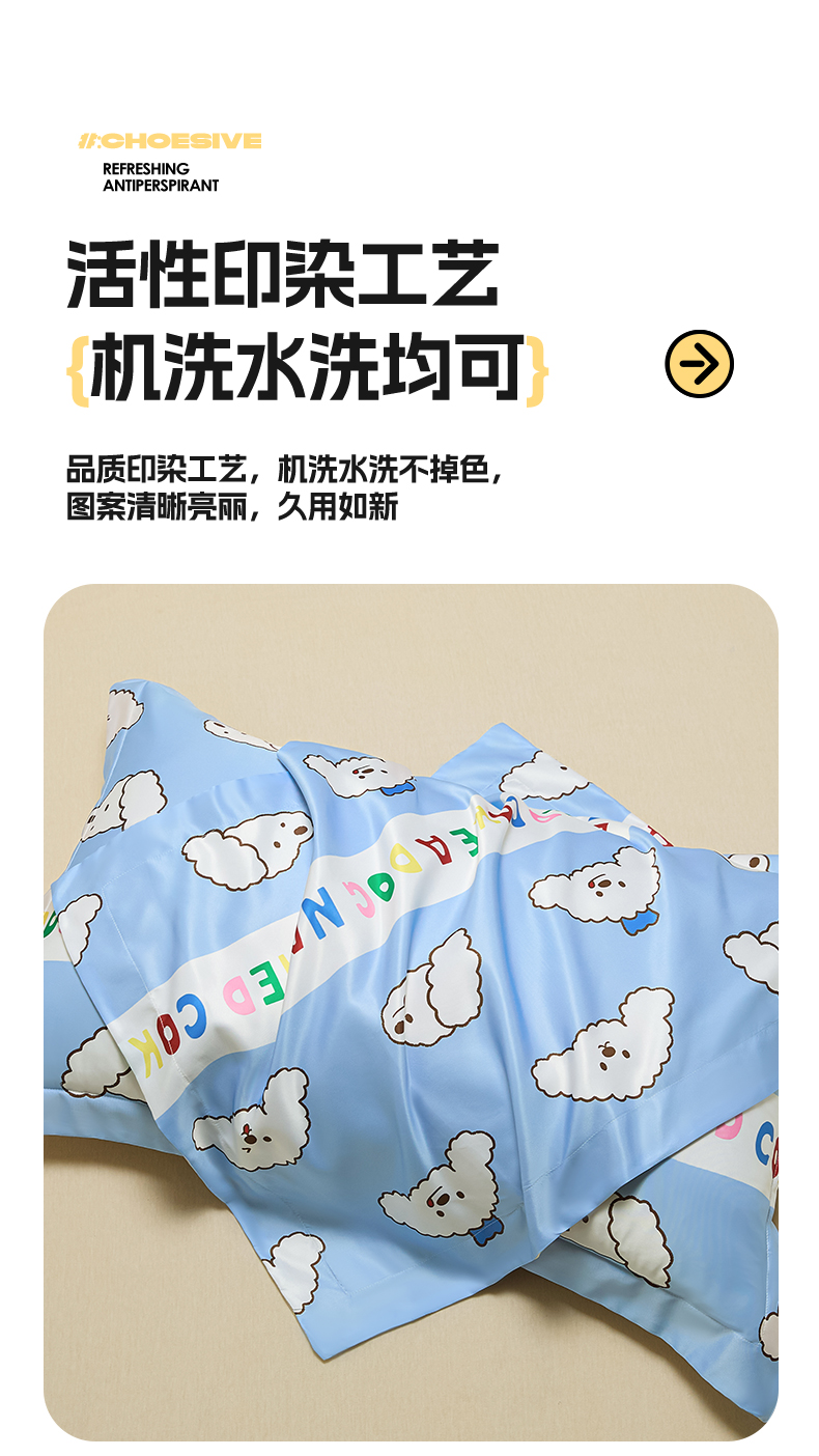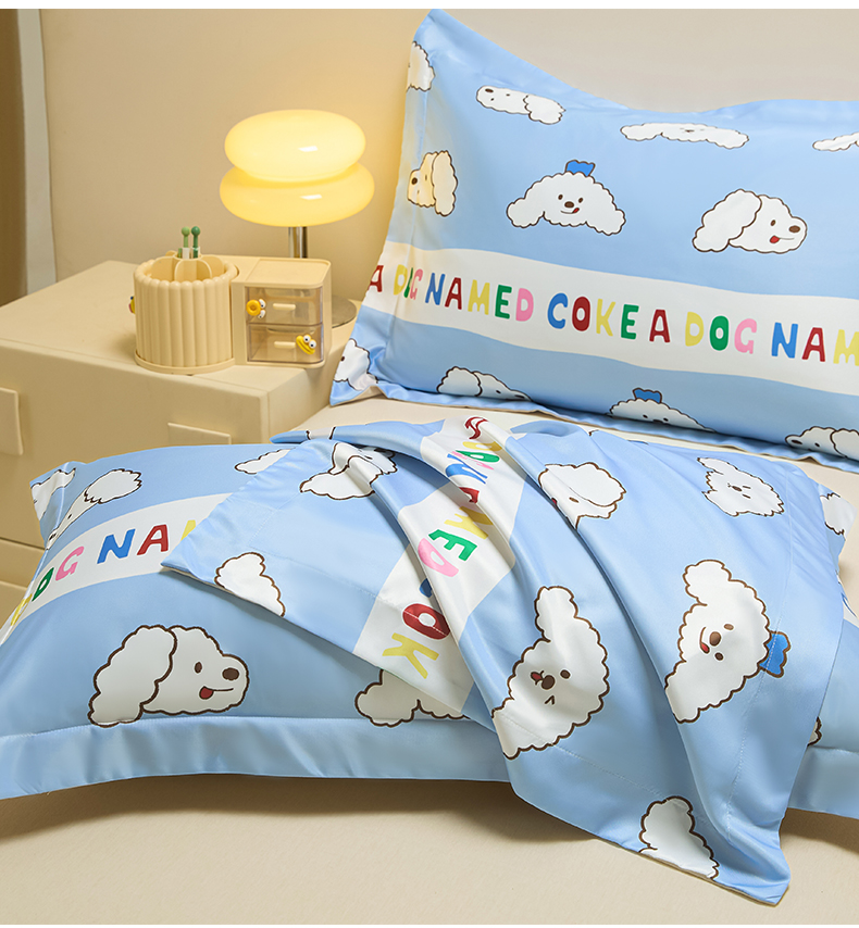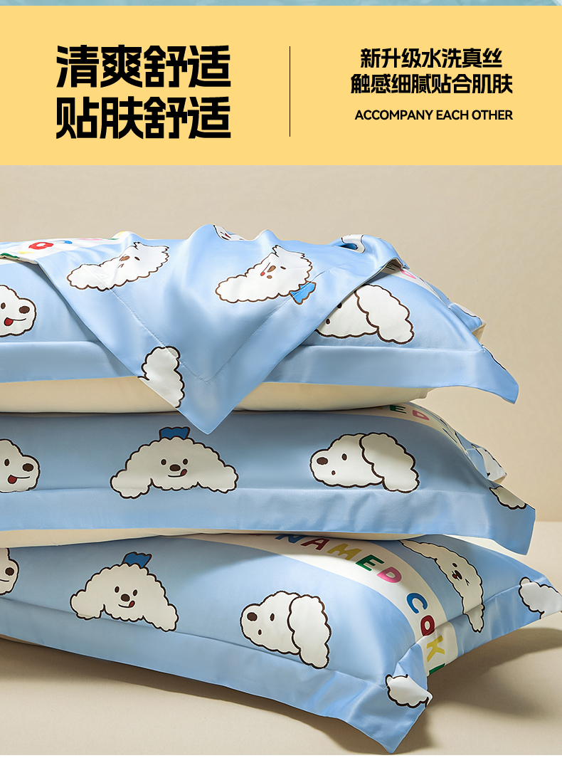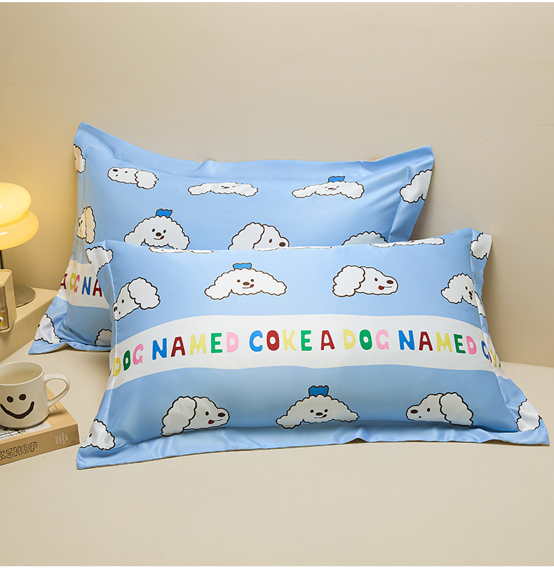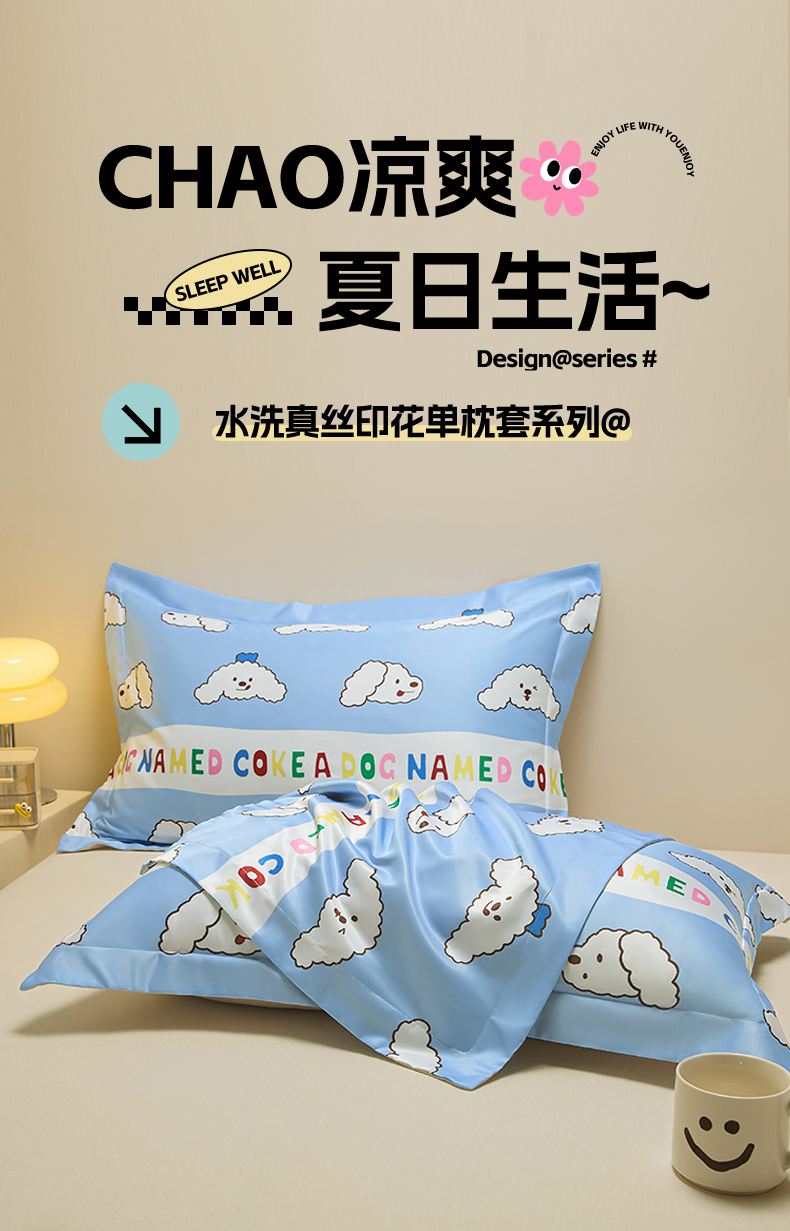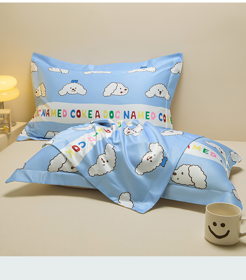 笙意家纺 2025新款水洗真丝数码印花卡通枕套 coke狗