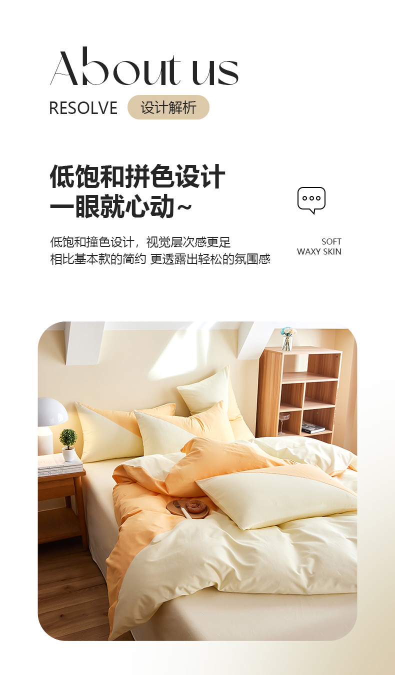 慕希2025新款40S全棉喷气13372简约三角拼四件套 简约-奶油橘