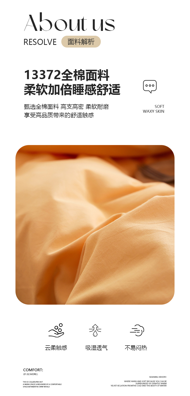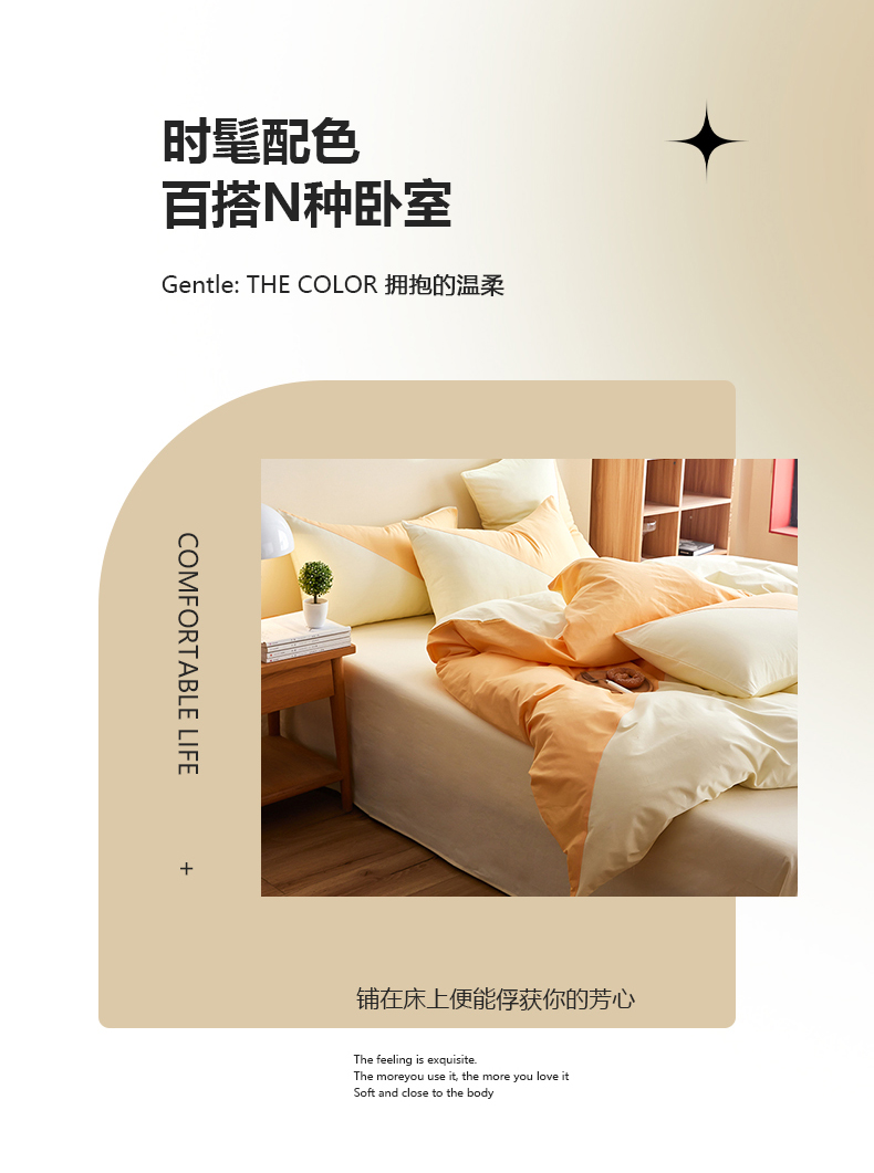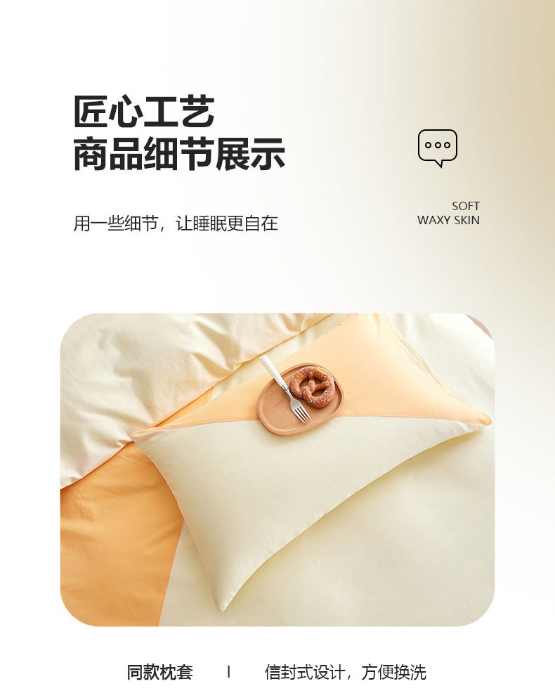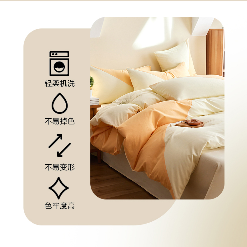 商品名称:慕希2025新款40S全棉喷气13372简约三角拼四件套 简约-奶油橘