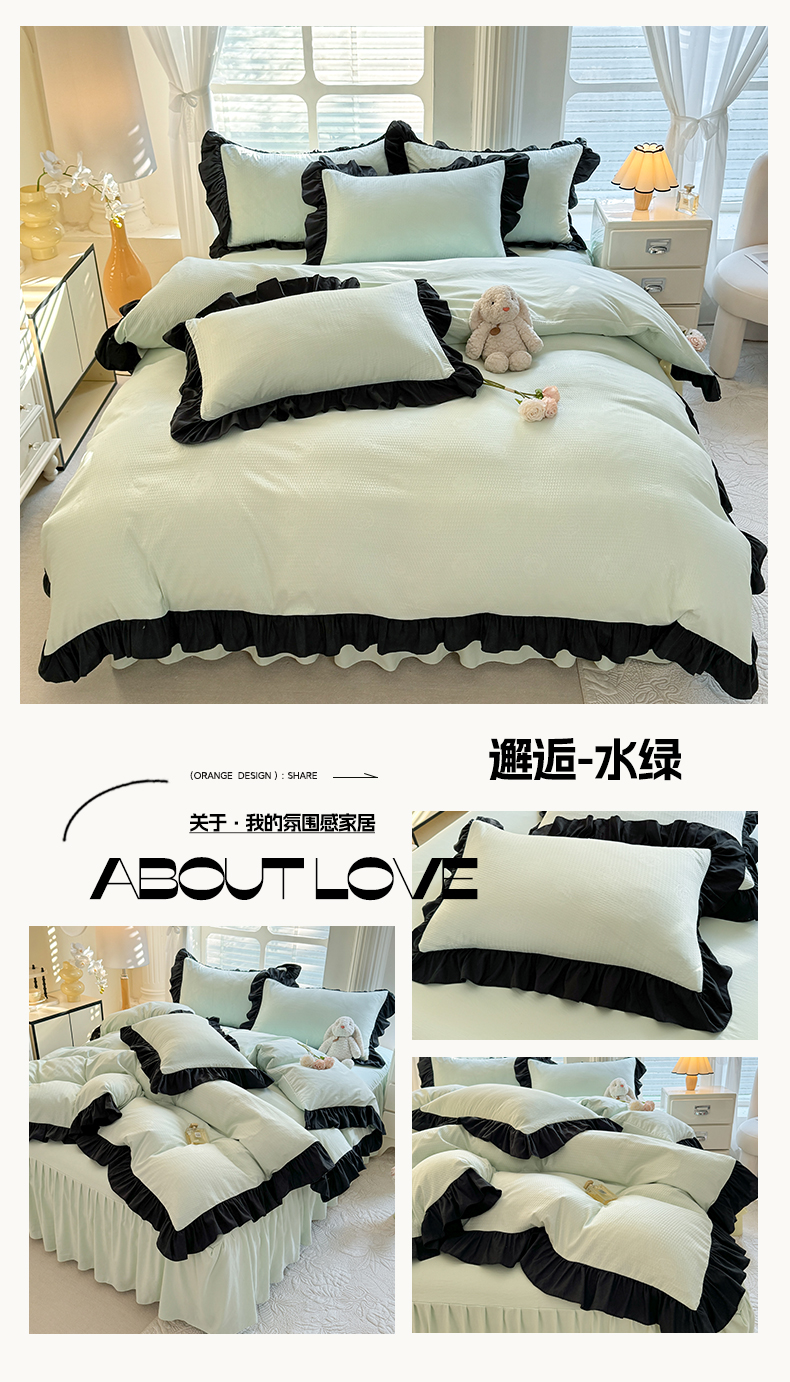 当前位置: 91家纺网 > 商品网购 > 床品套件 > 四件套 > 普通磨毛四件套 > 逸尚阁 2025新款水洗磨毛提花花边四件套--邂逅系列(提供买家秀) 邂逅-水绿