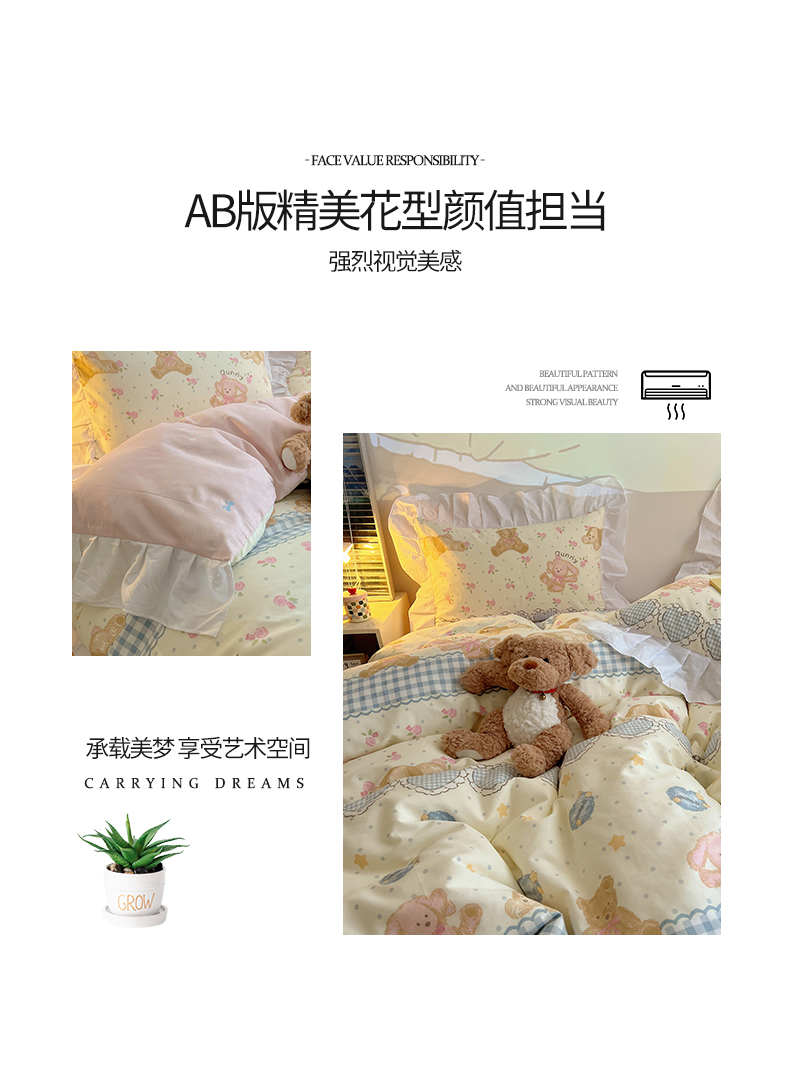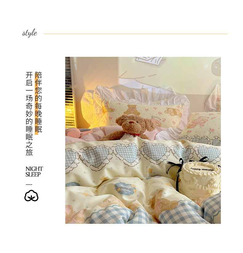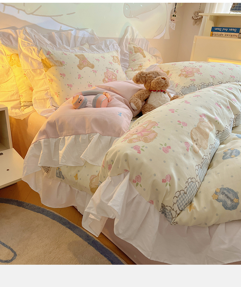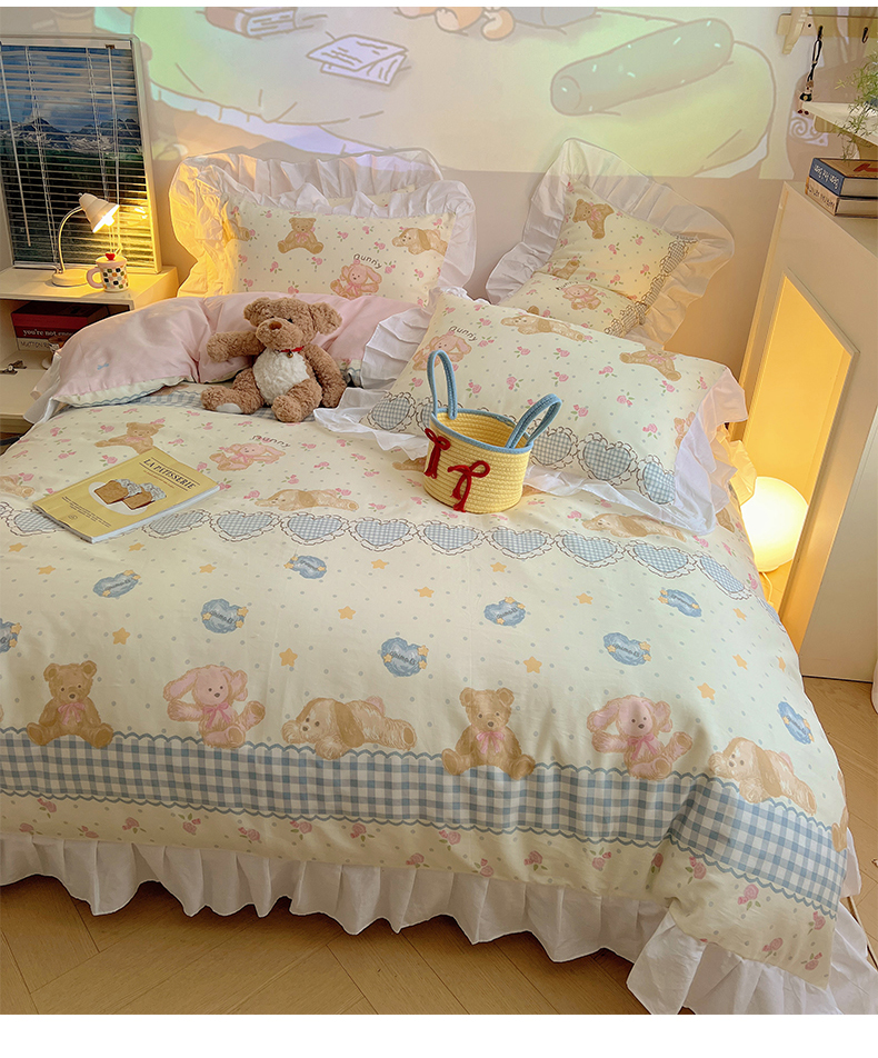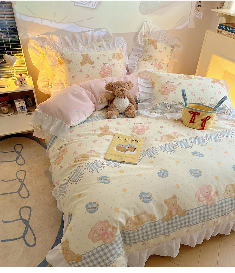 2025纯棉韩版花边奶油可爱卡通少女萝莉洛丽塔系列全棉卡通四件套 棉花边-奶油童话