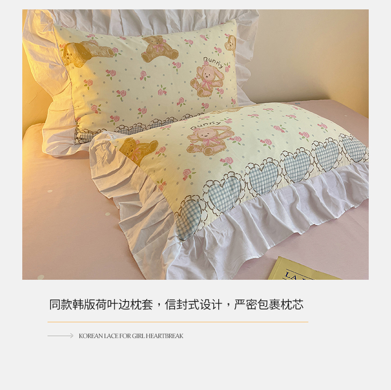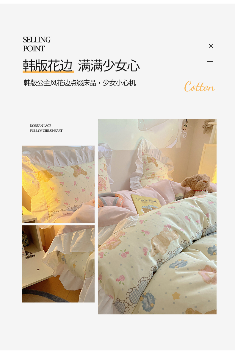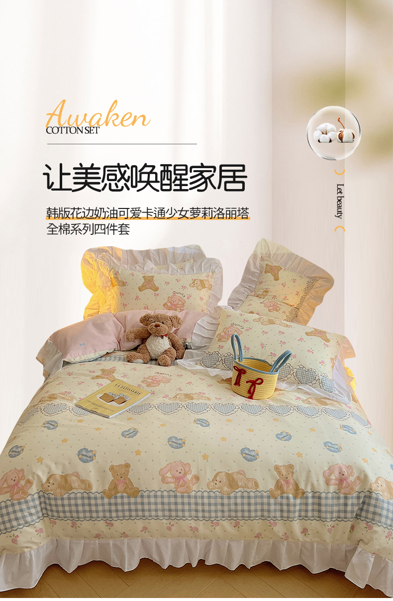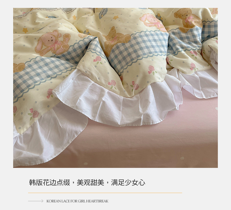 商品名称:2025纯棉韩版花边奶油可爱卡通少女萝莉洛丽塔系列全棉卡通四件套 棉花边-奶油童话