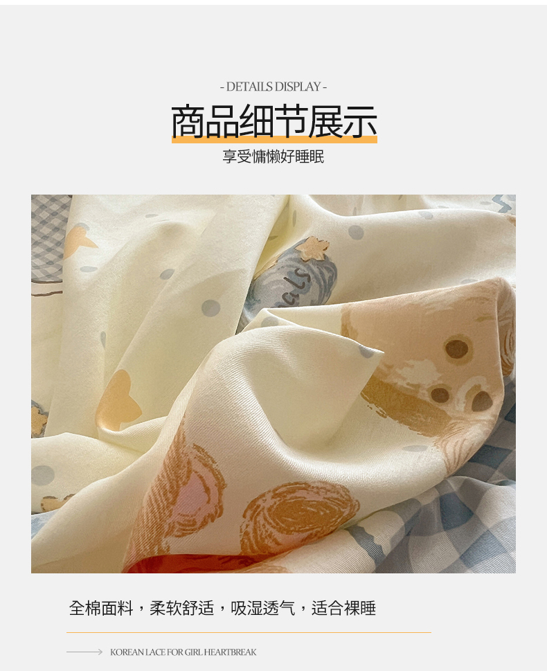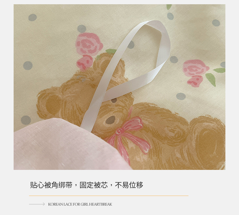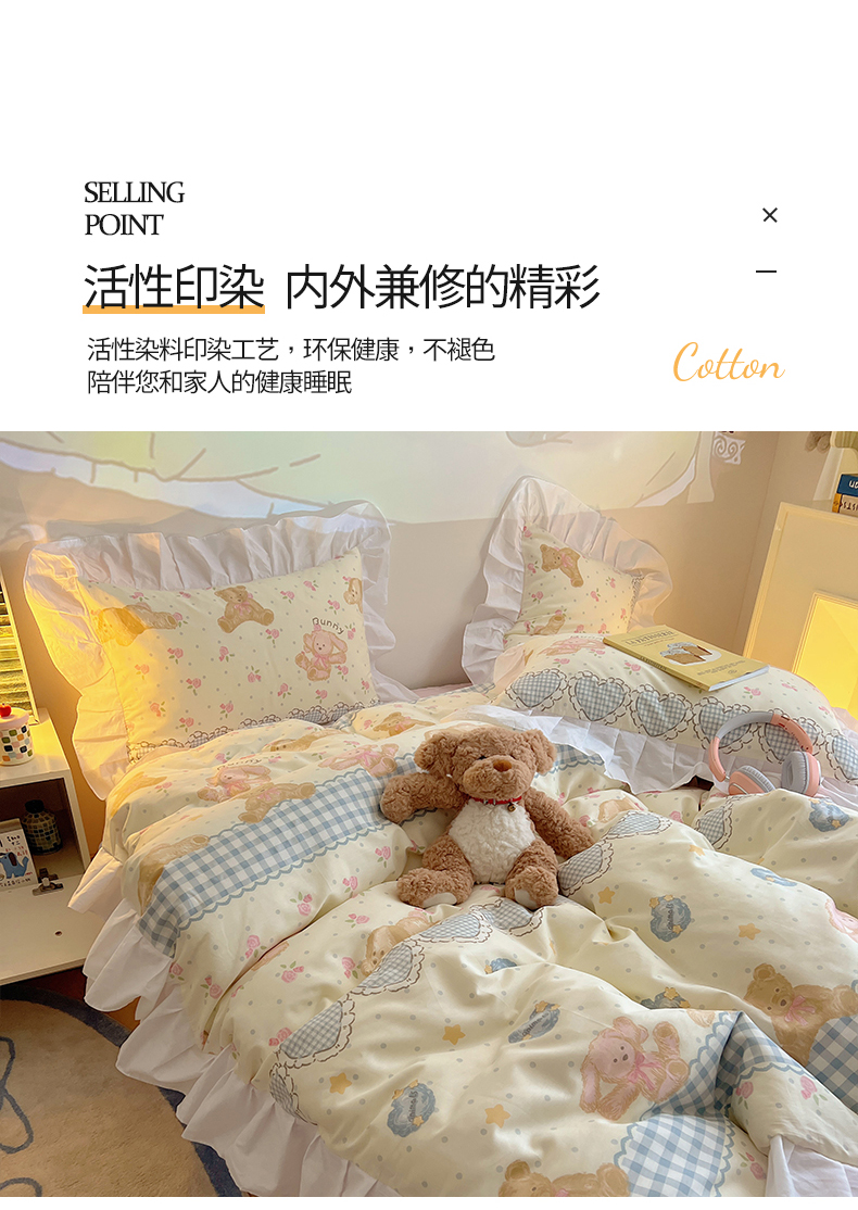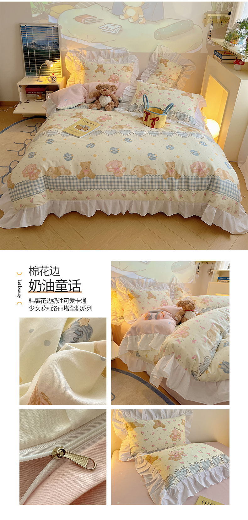 商品名称:2025纯棉韩版花边奶油可爱卡通少女萝莉洛丽塔系列全棉卡通四件套 棉花边-奶油童话