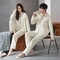 (总)洛兰沙家居馆 2024新款秋冬季清新款睡衣女三层夹棉珊瑚绒加厚保暖两件套女士可外穿加绒家居服,白色