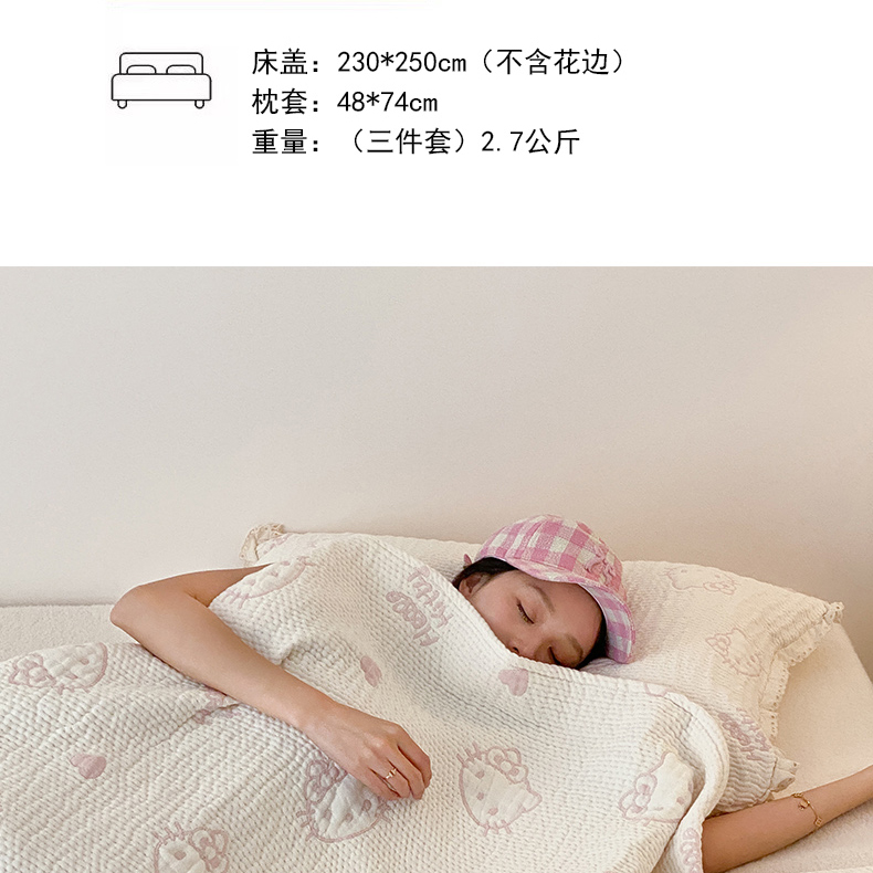 (总)麻依 2025新款安心棉床盖三件全棉四层纱布床单,粉色KT猫,花园小兔,凯蒂的快乐,可爱鸭鸭,可可猫咪-奶茶,可可猫咪-深咖,蓝色熊猫,团团KT,小熊格格,心心领结,欣欣樱桃,雪漫,樱桃兔猫,组合